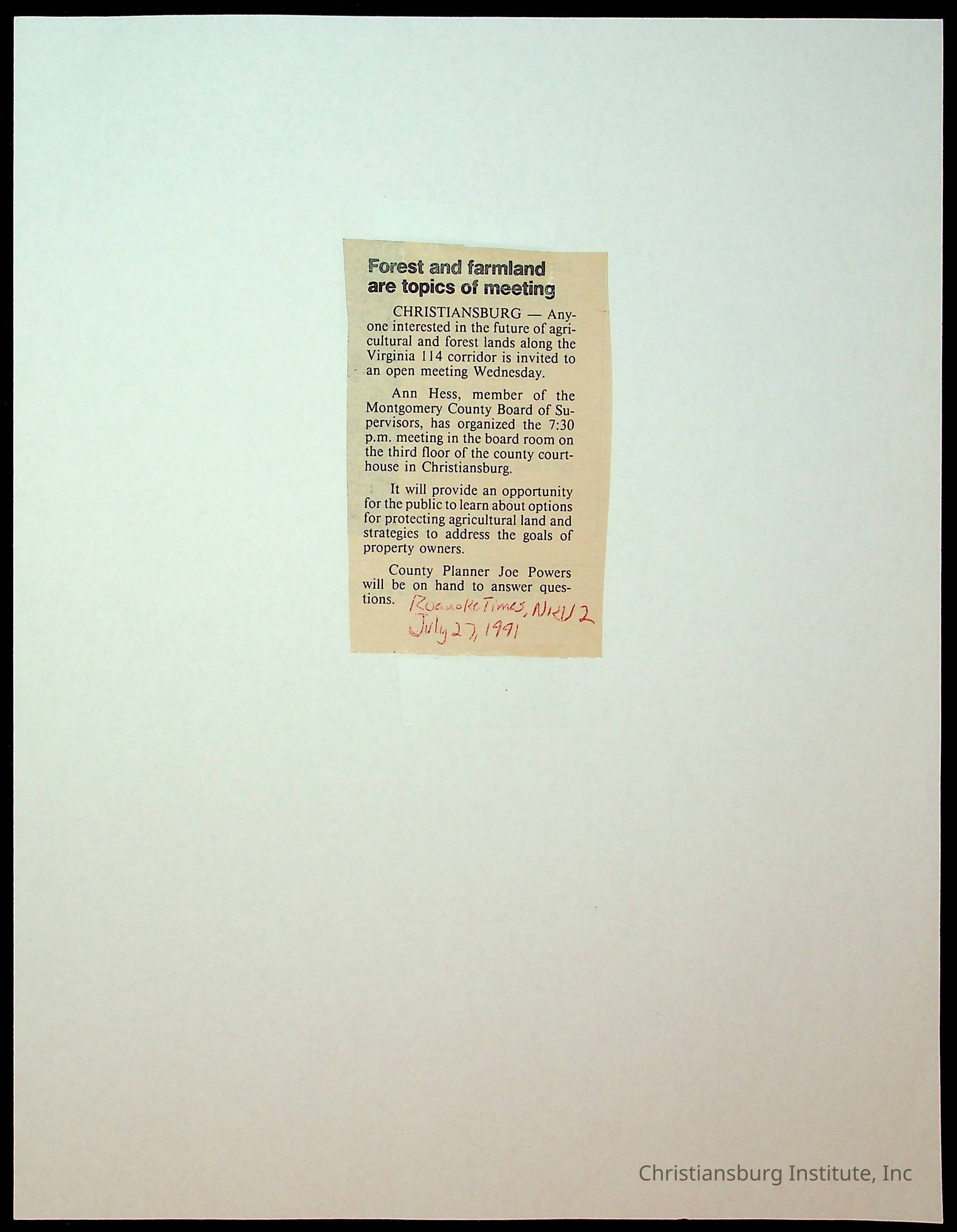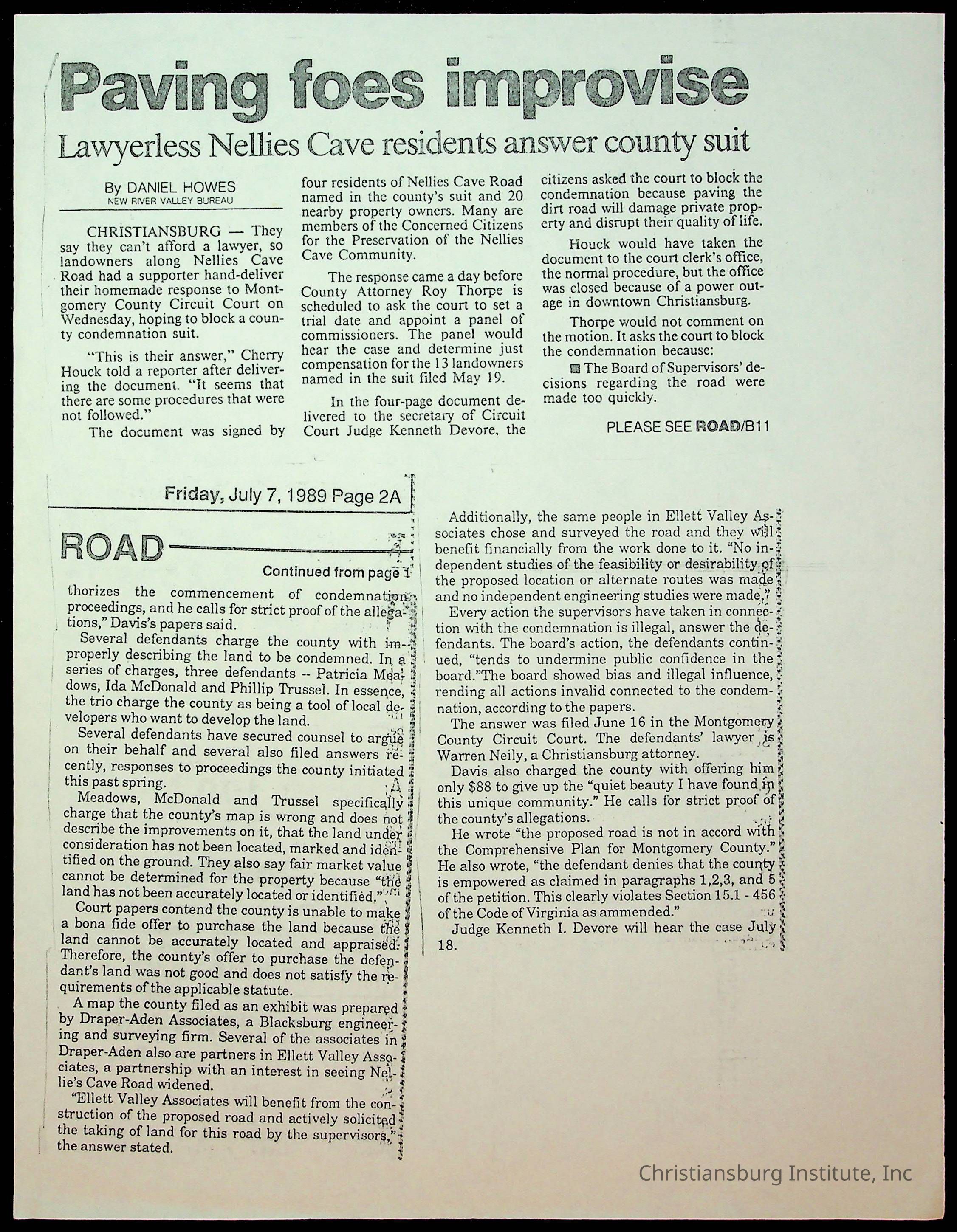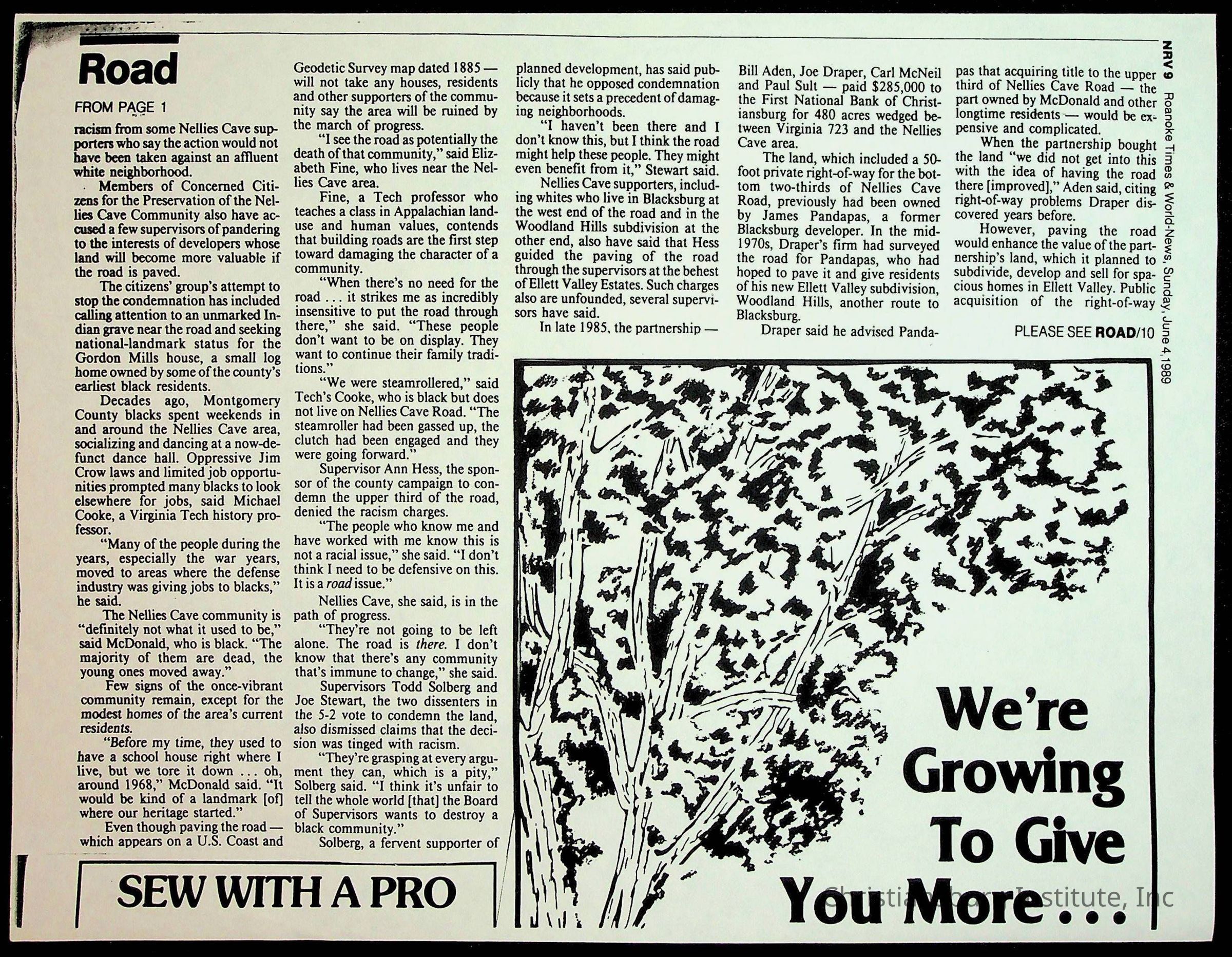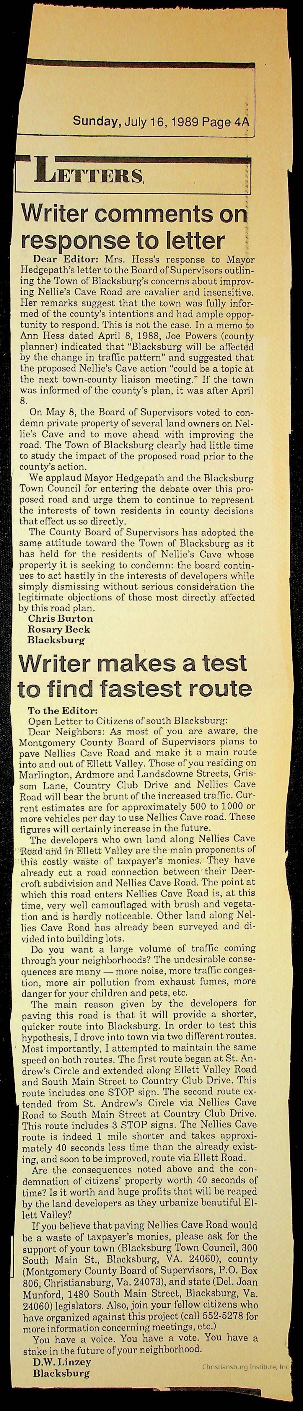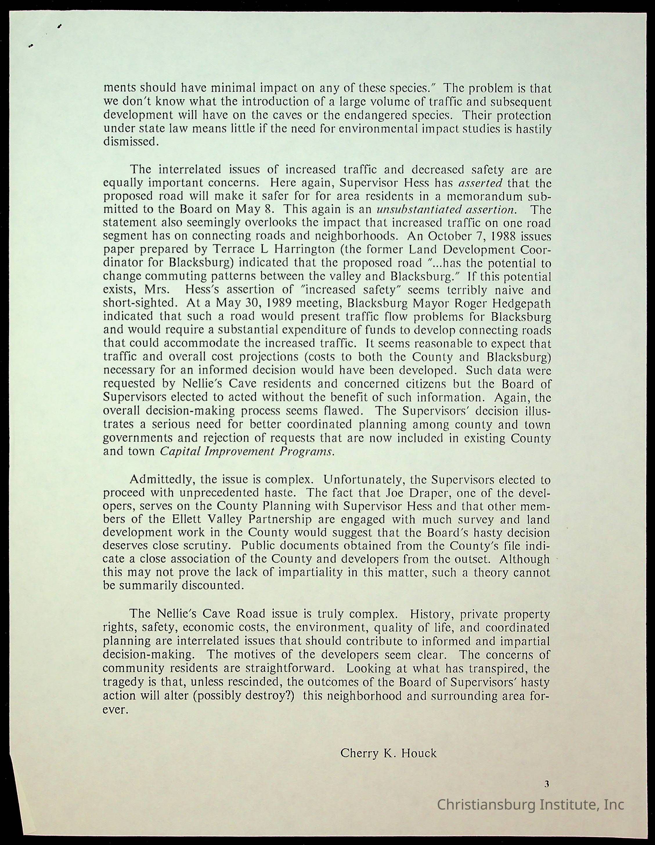 Fine, Elizabeth C., Concerned Citizens For Nellies Cave Community, Montgomery County, The Roanoke Times, The News Messenger, NRV Current