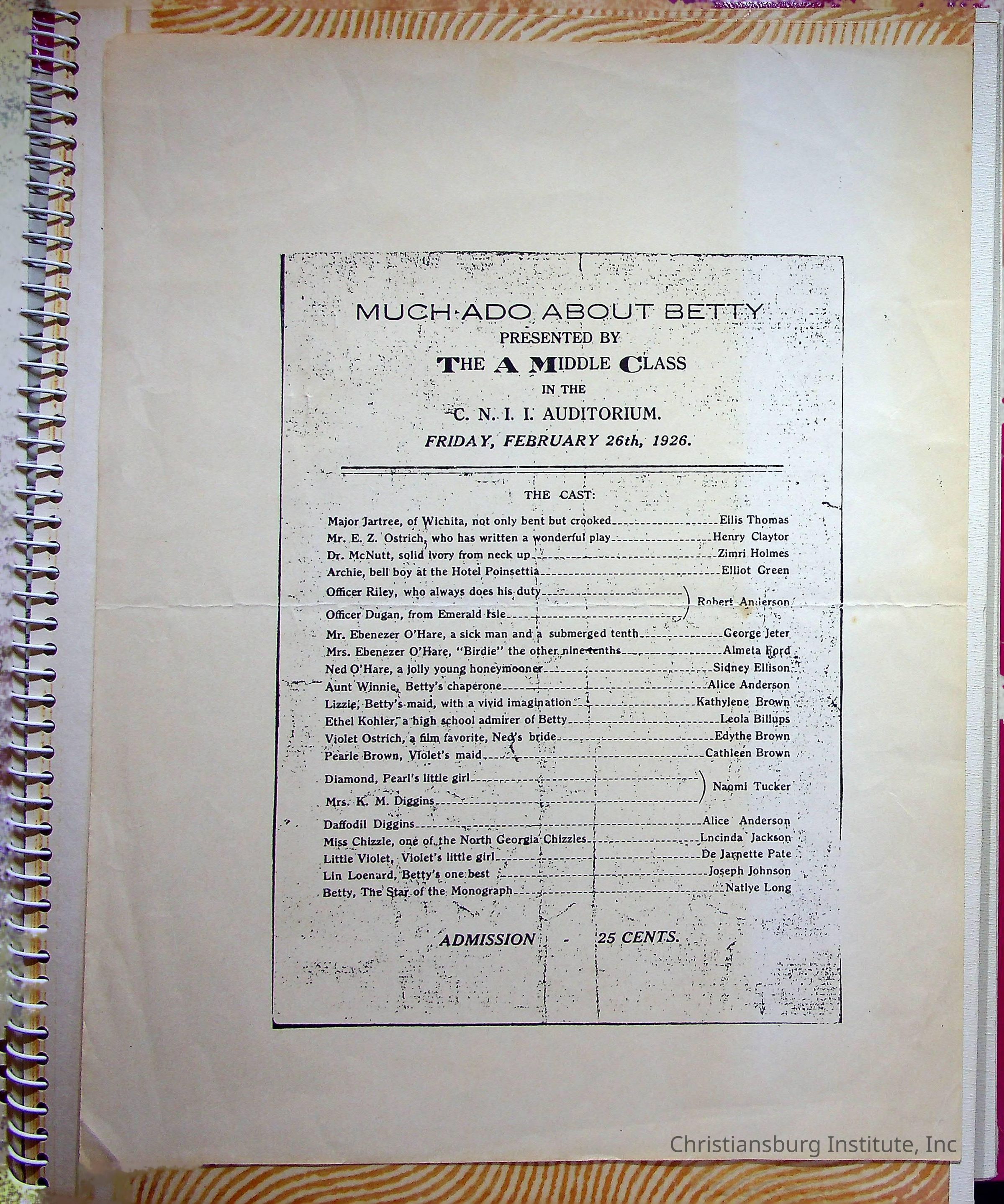 Copyright has been assigned to Christiansburg Institute Museum & Archives by Gladys Sokolow. For permission to publish materials created by the donor, contact CIMA@christiansburginstitute.com. Materials not created by Gladys Sokolow may still be under copyright.