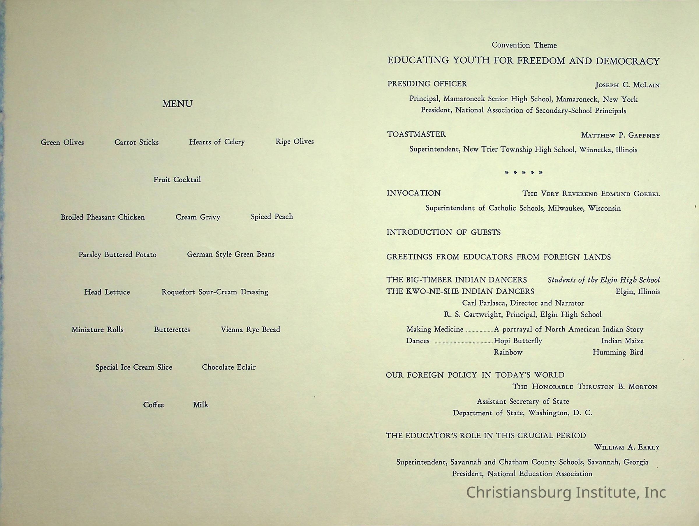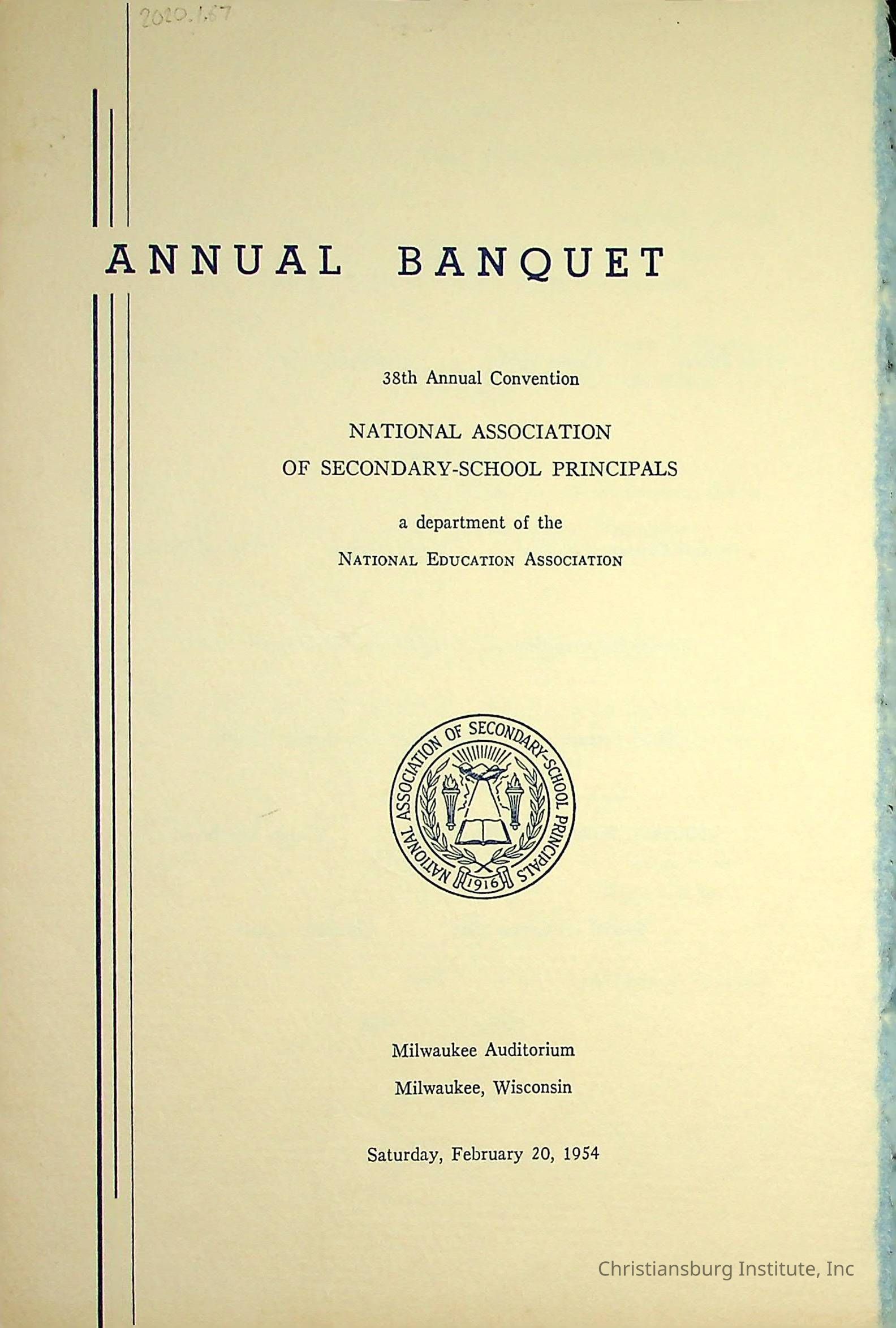Annual Banquet 38th Annual Convention for the National Association of Secondary School Principals 1954Description