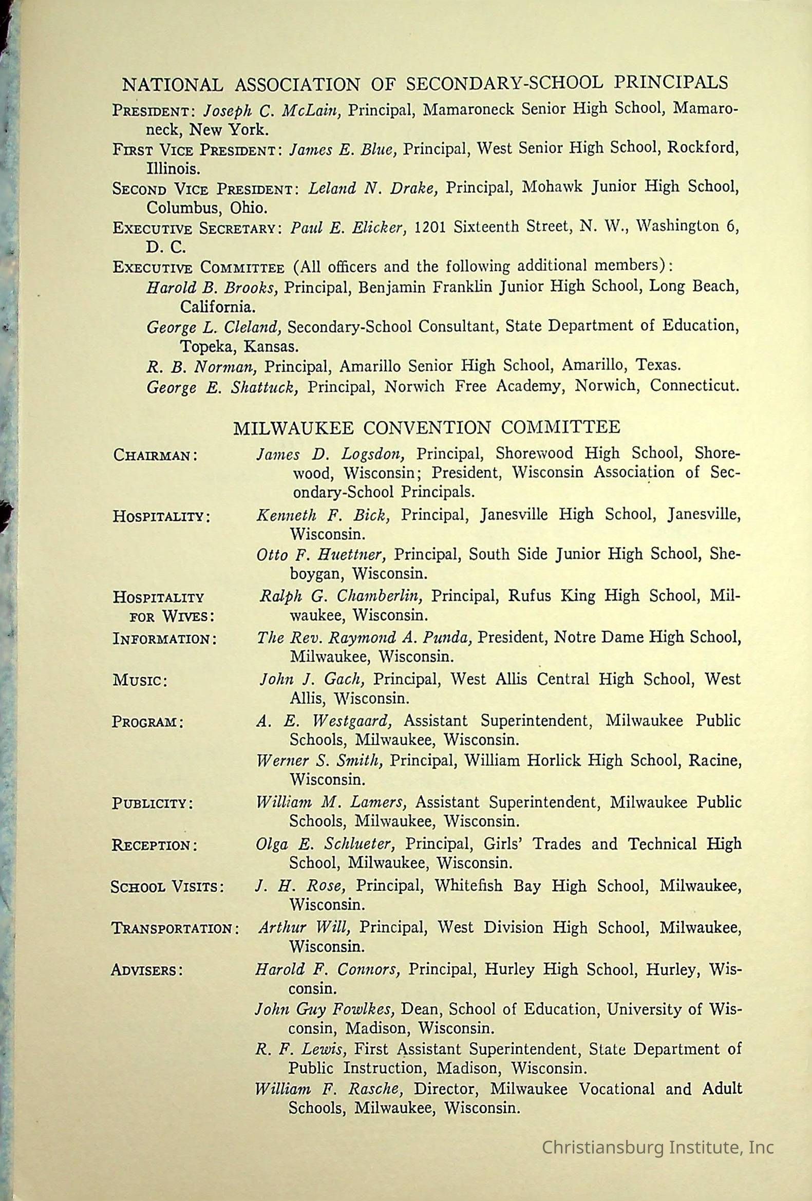 An event program for the 38th Annual Convention for the National Association of Secondary School Principals held in Milwaukee, Wisconsin on February 20th, 1954.Creator
