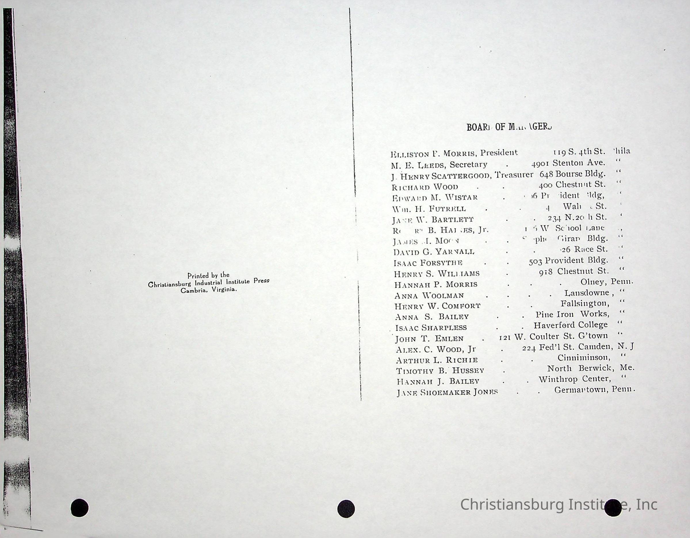 Christiansburg Industrial InstitutePlace Printed