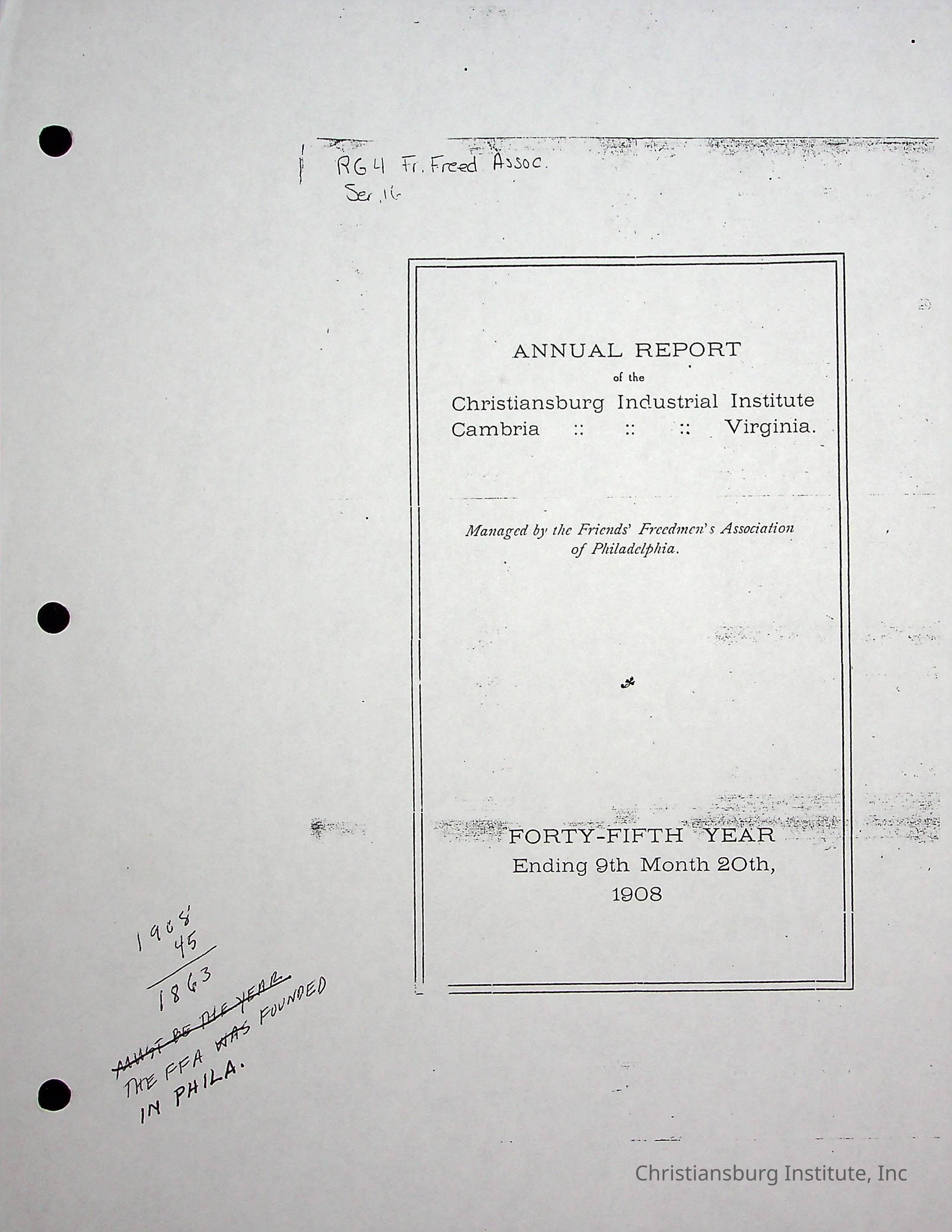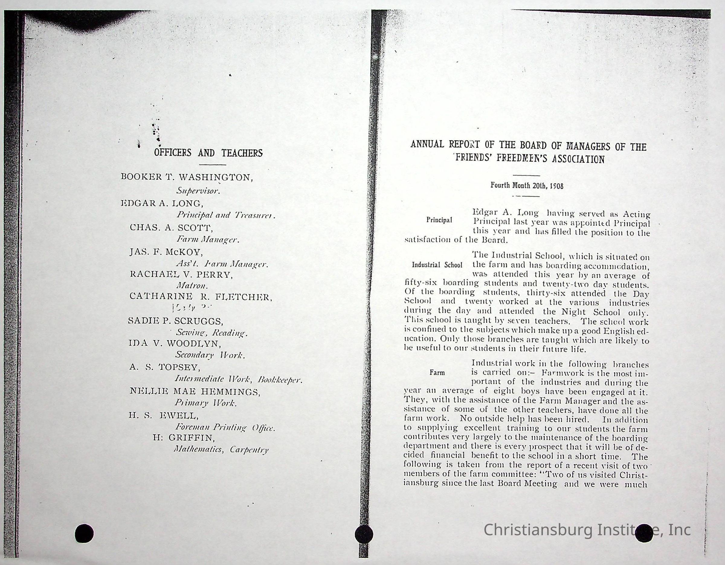 Annual Report of the Christiansburg Industrial InstituteAuthor