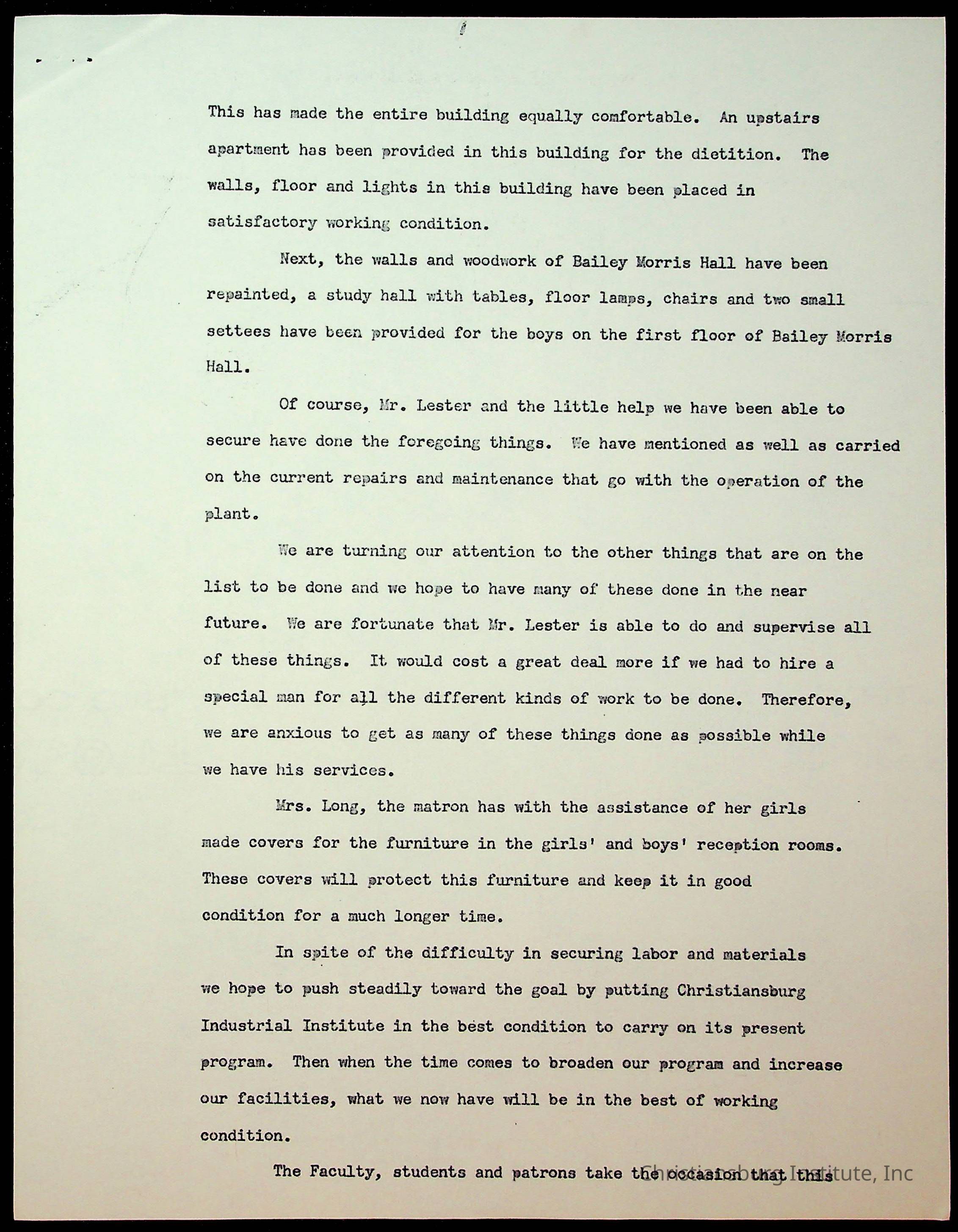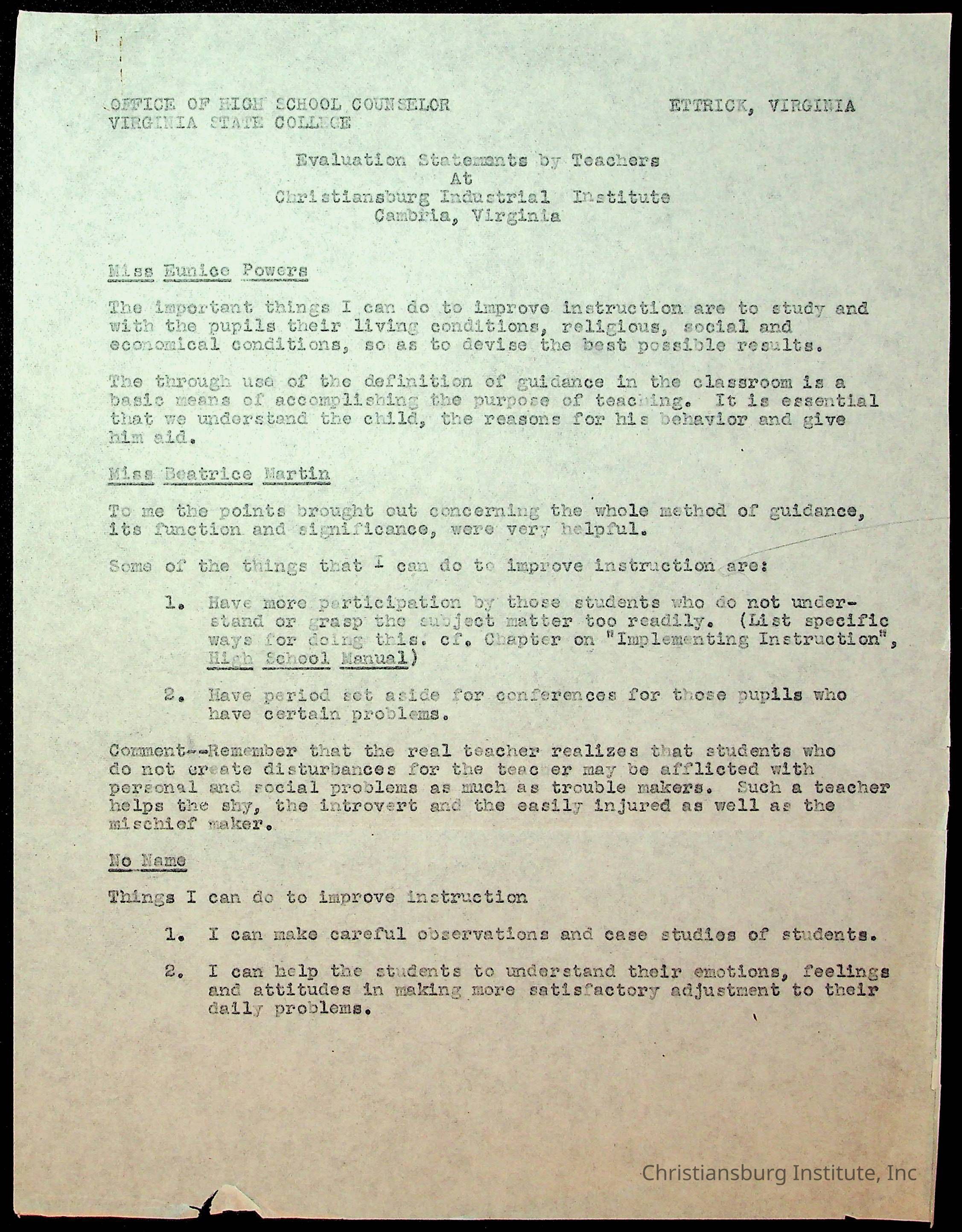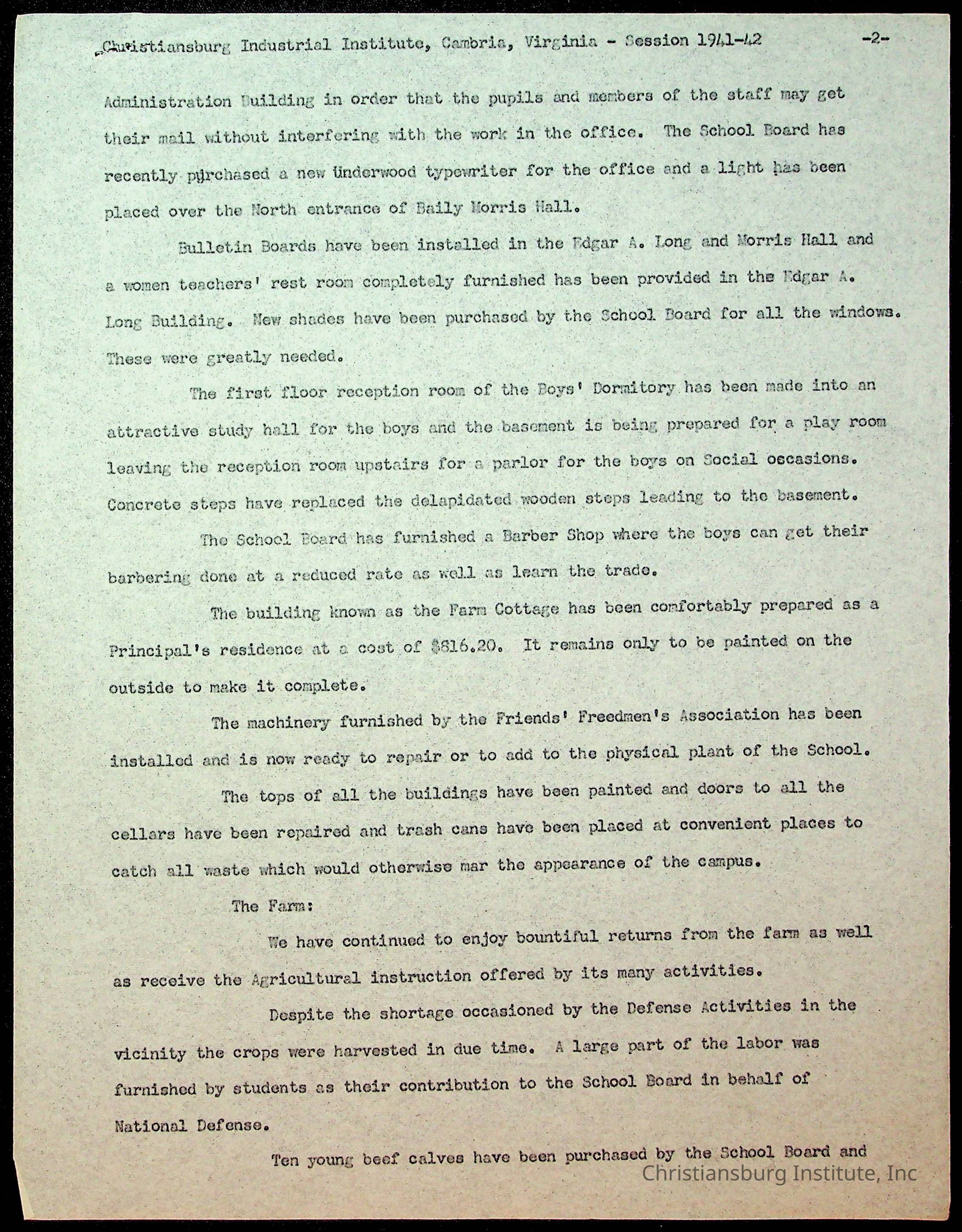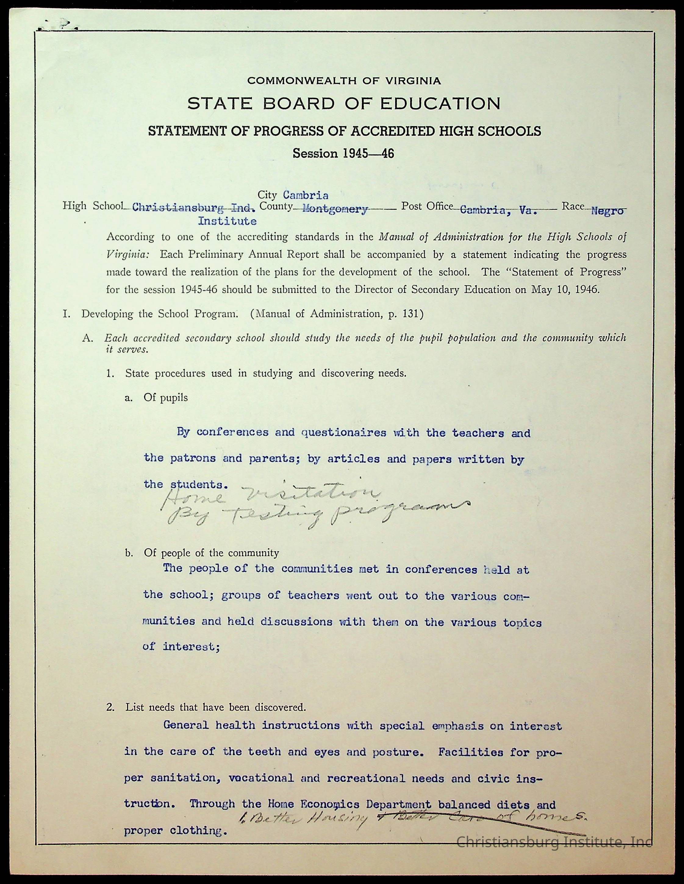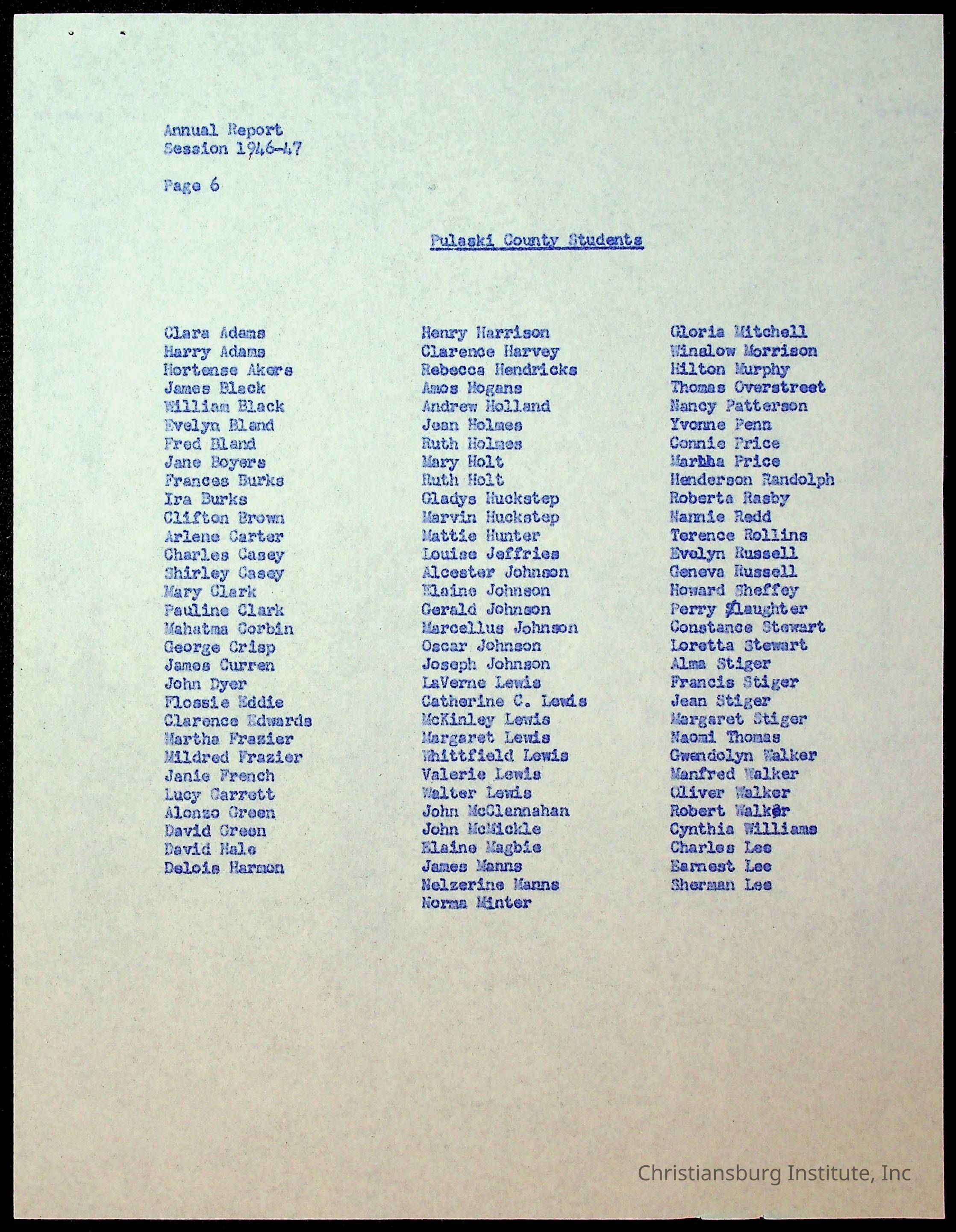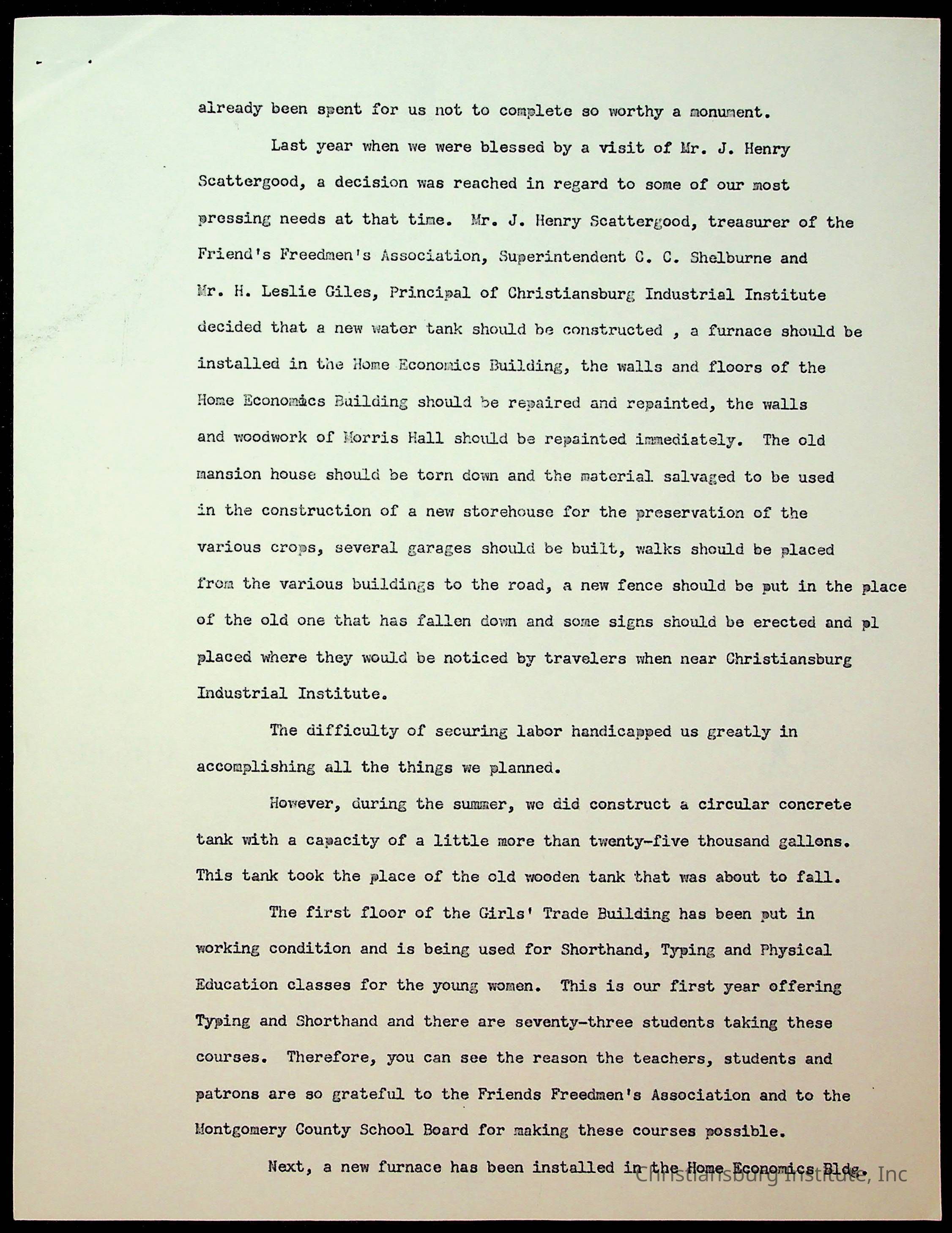 Copyright has been assigned to Christiansburg Institute Museum & Archives by Montgomery County Public Schools. For permission to publish materials created by the donor, contact CIMA@christiansburginstitute.com. Materials not created by Christiansburg Industrial Institute may still be under copyright.