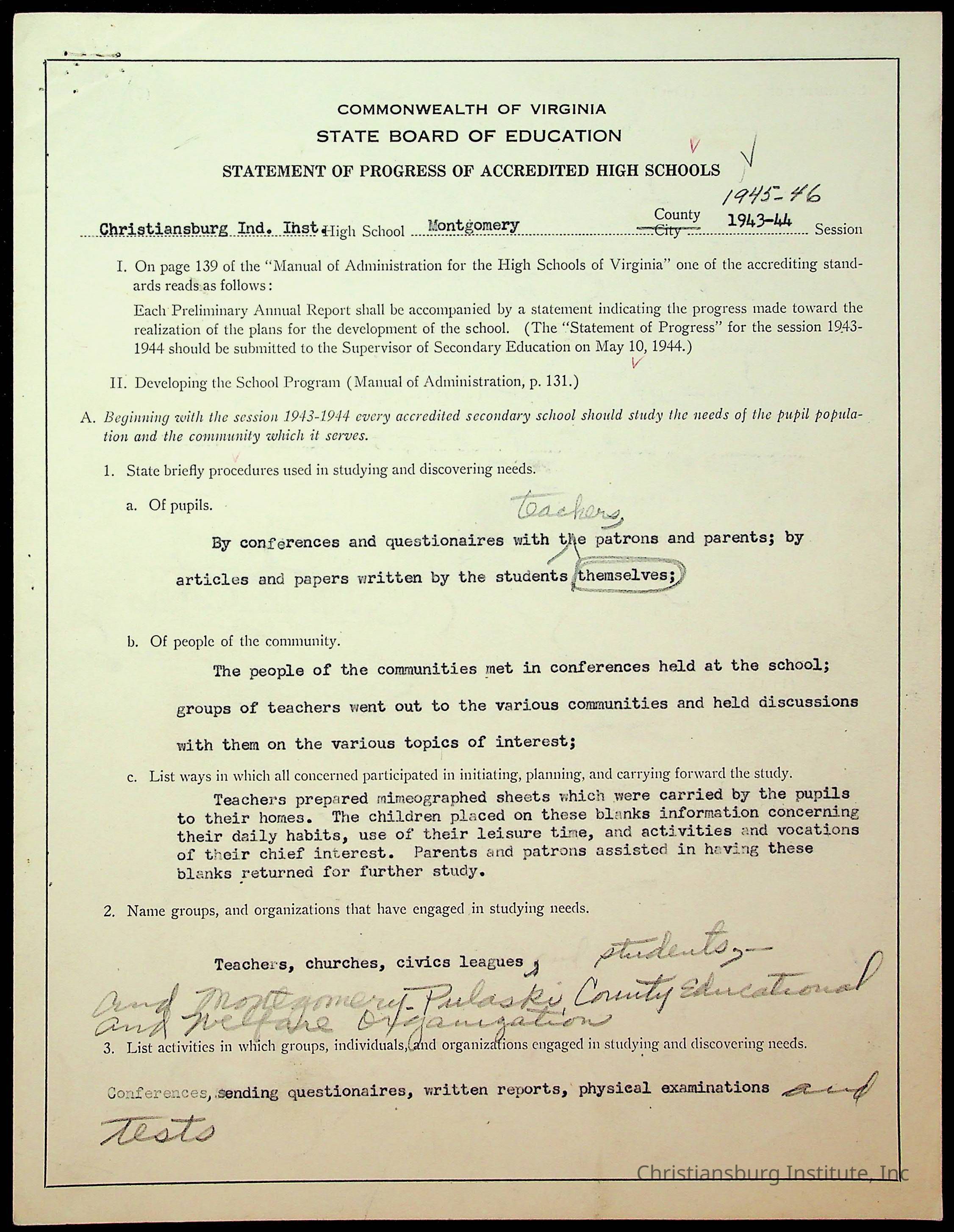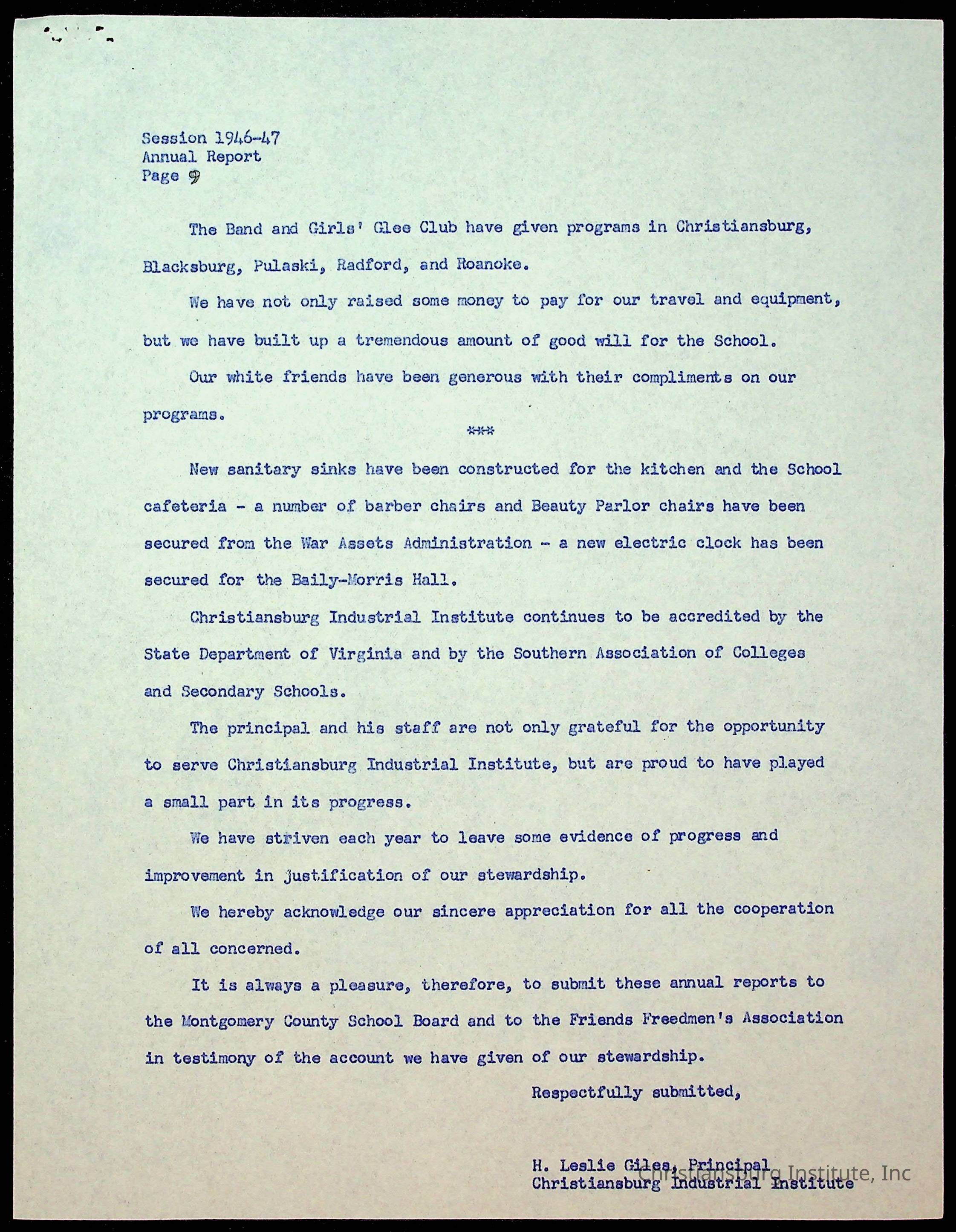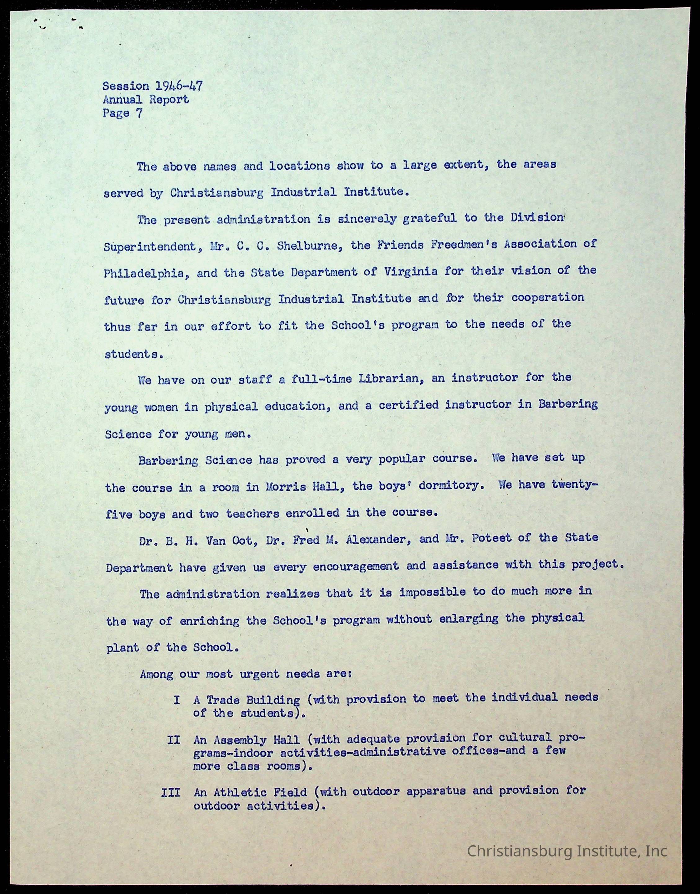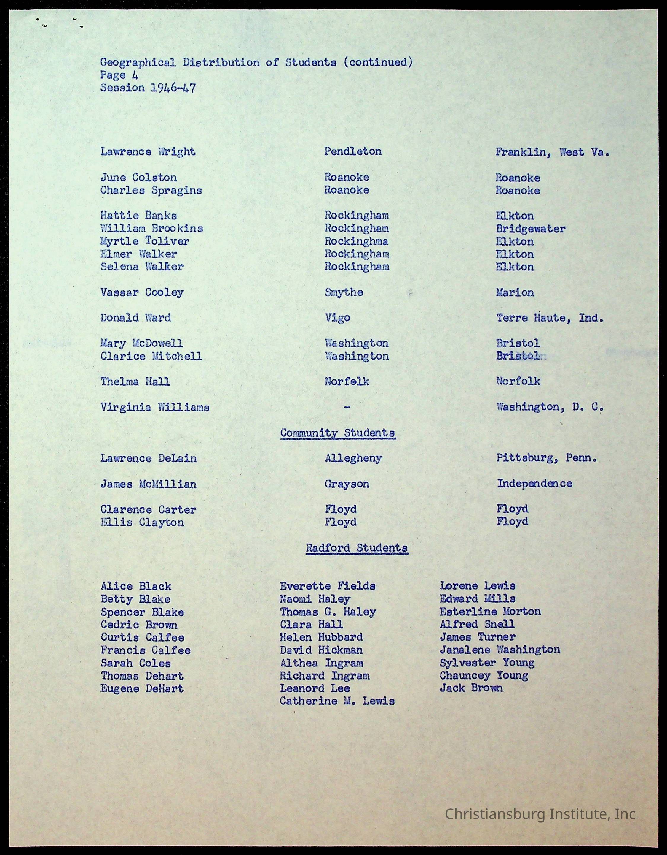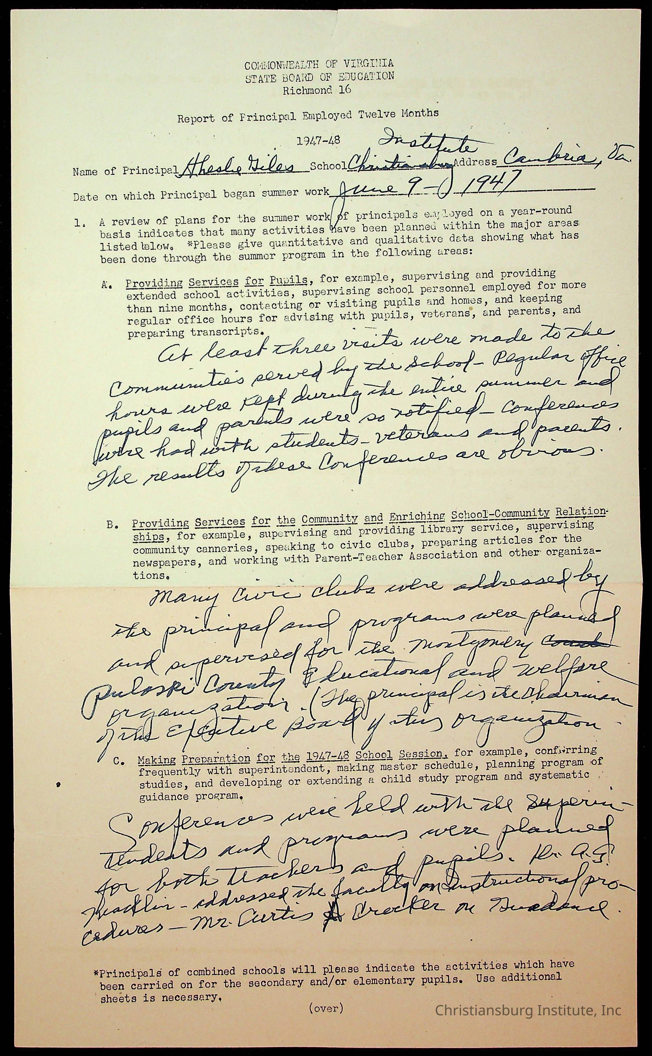 Copyright has been assigned to Christiansburg Institute Museum & Archives by Montgomery County Public Schools. For permission to publish materials created by the donor, contact CIMA@christiansburginstitute.com. Materials not created by Christiansburg Industrial Institute may still be under copyright.