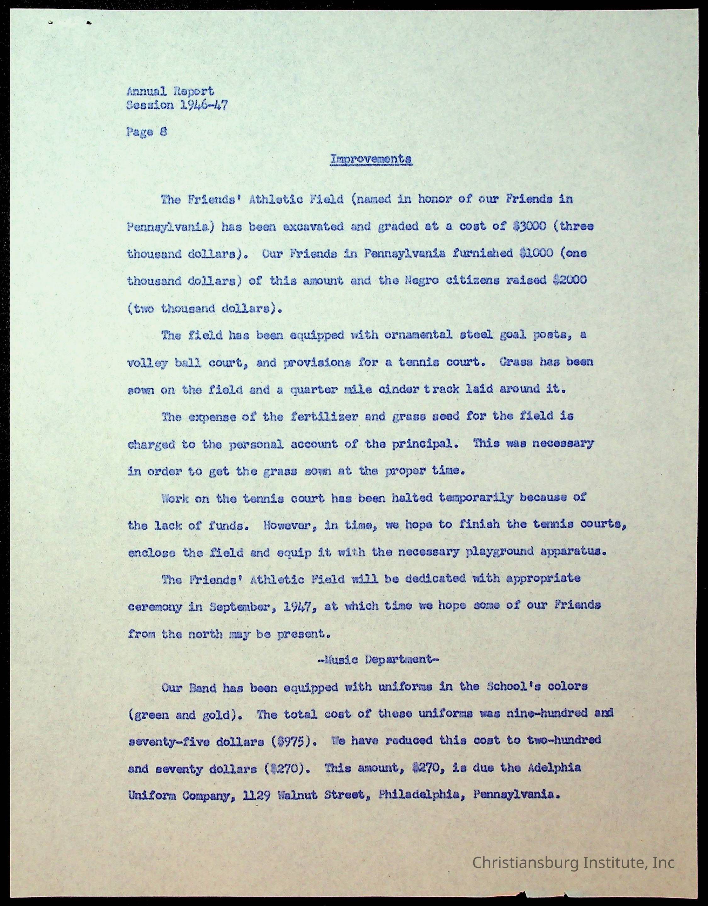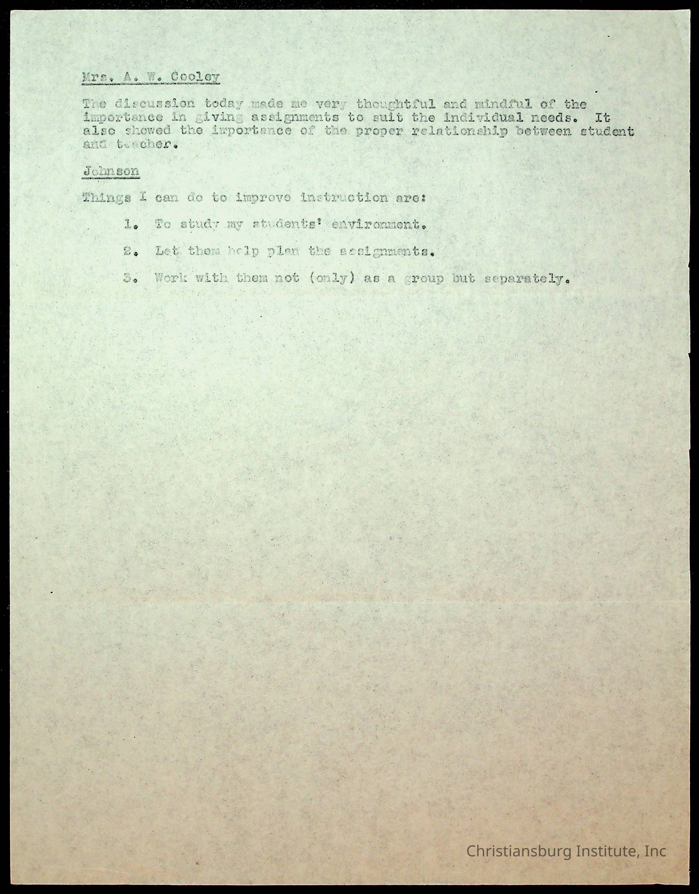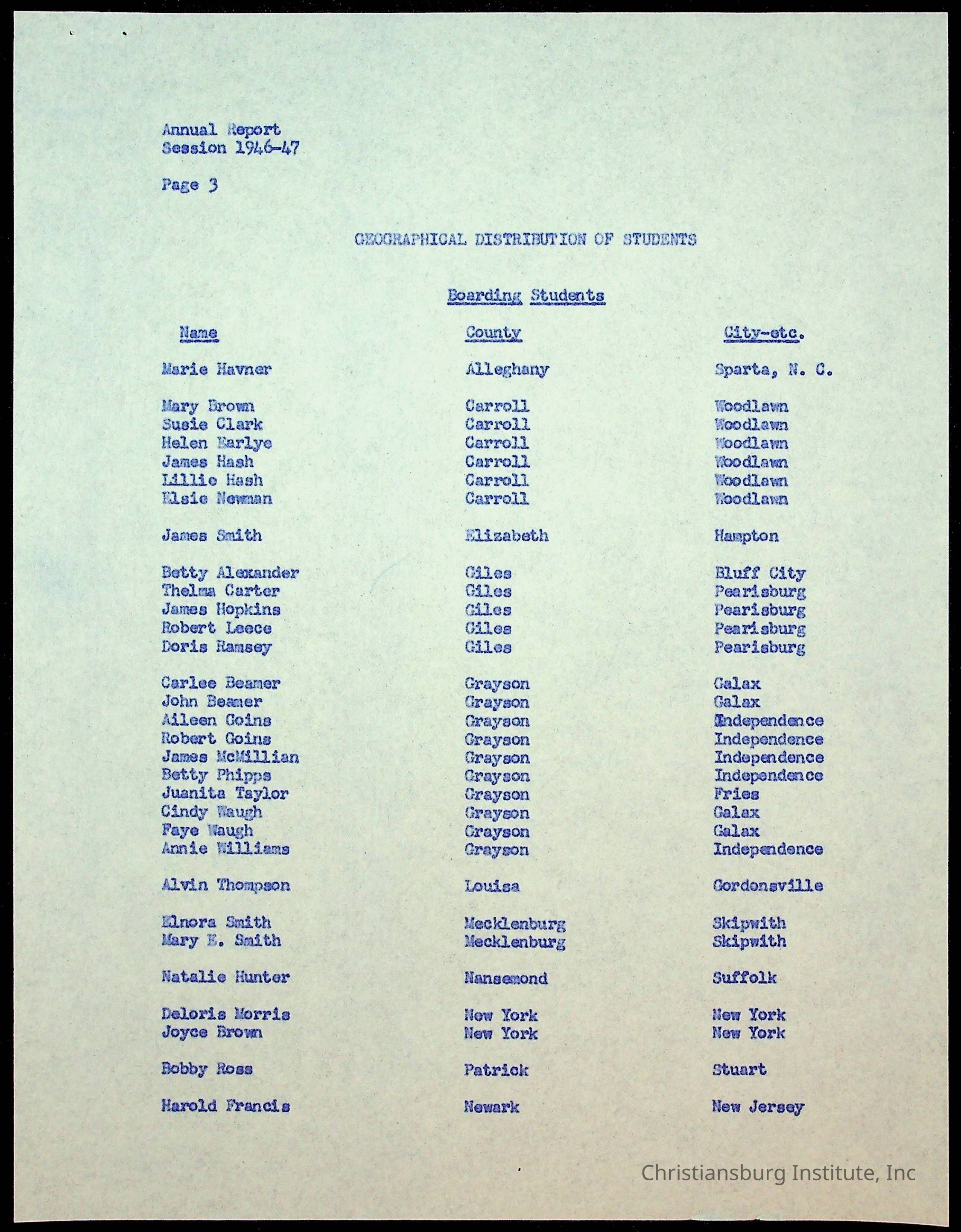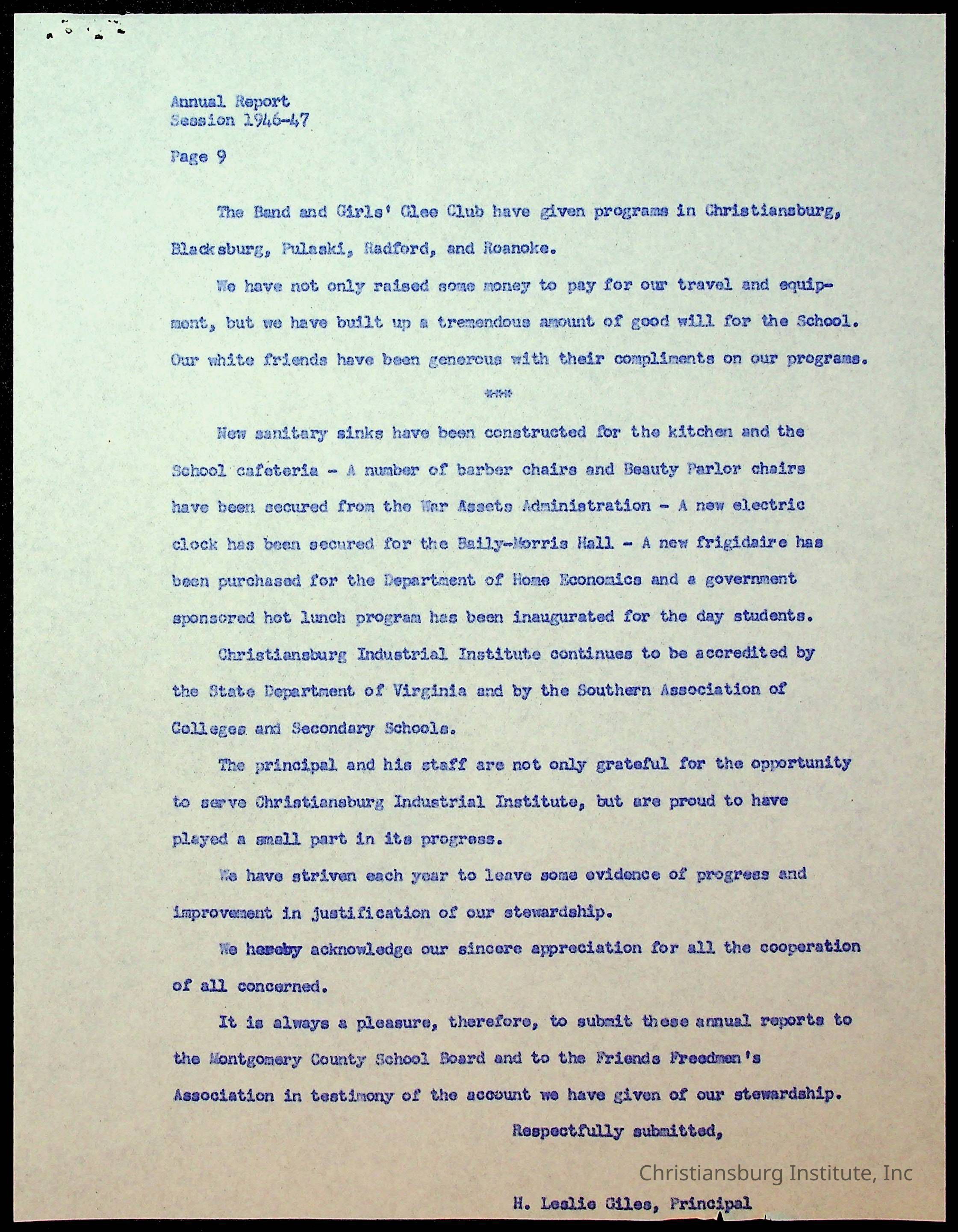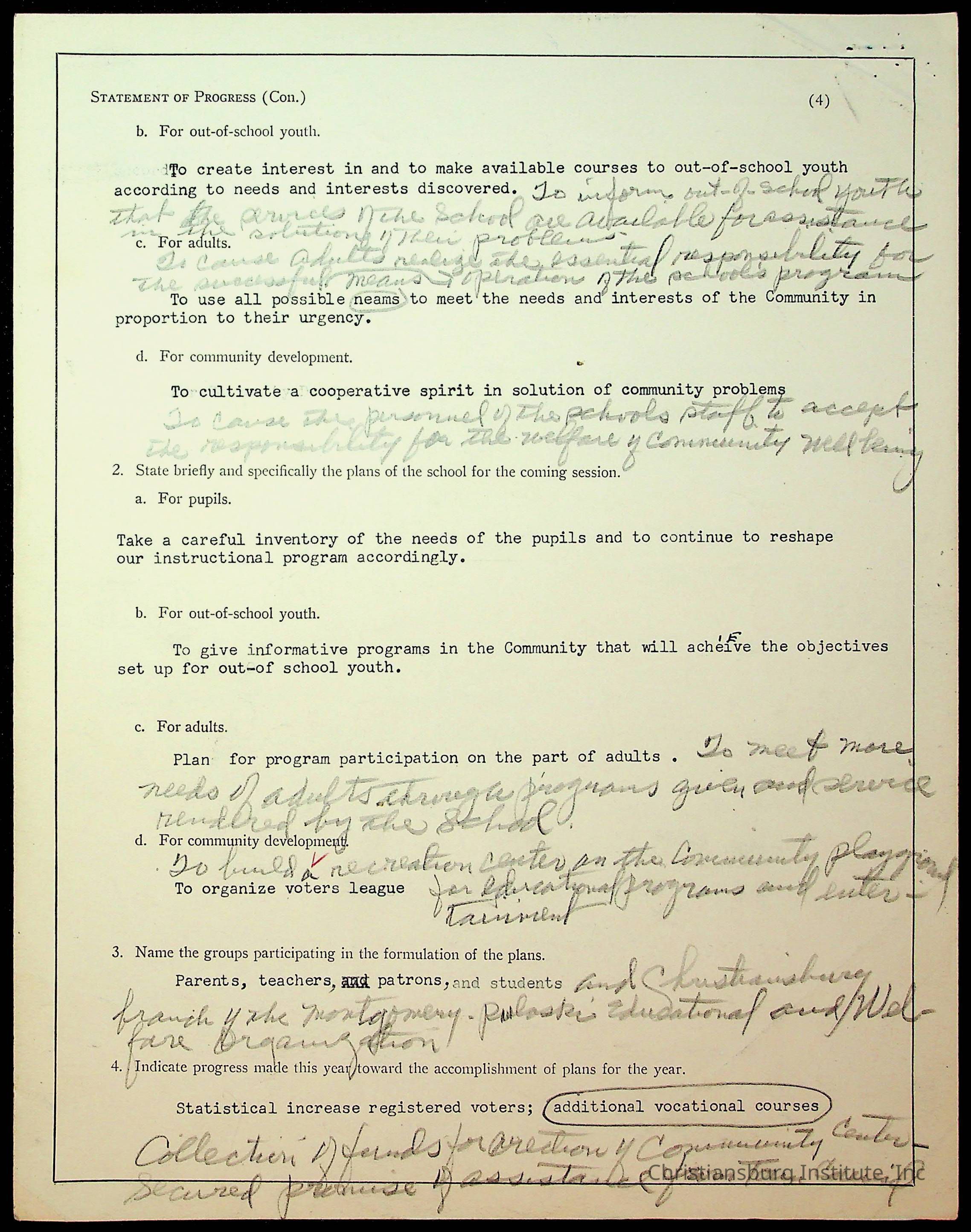Copyright has been assigned to Christiansburg Institute Museum & Archives by Montgomery County Public Schools. For permission to publish materials created by the donor, contact CIMA@christiansburginstitute.com. Materials not created by Christiansburg Industrial Institute may still be under copyright.