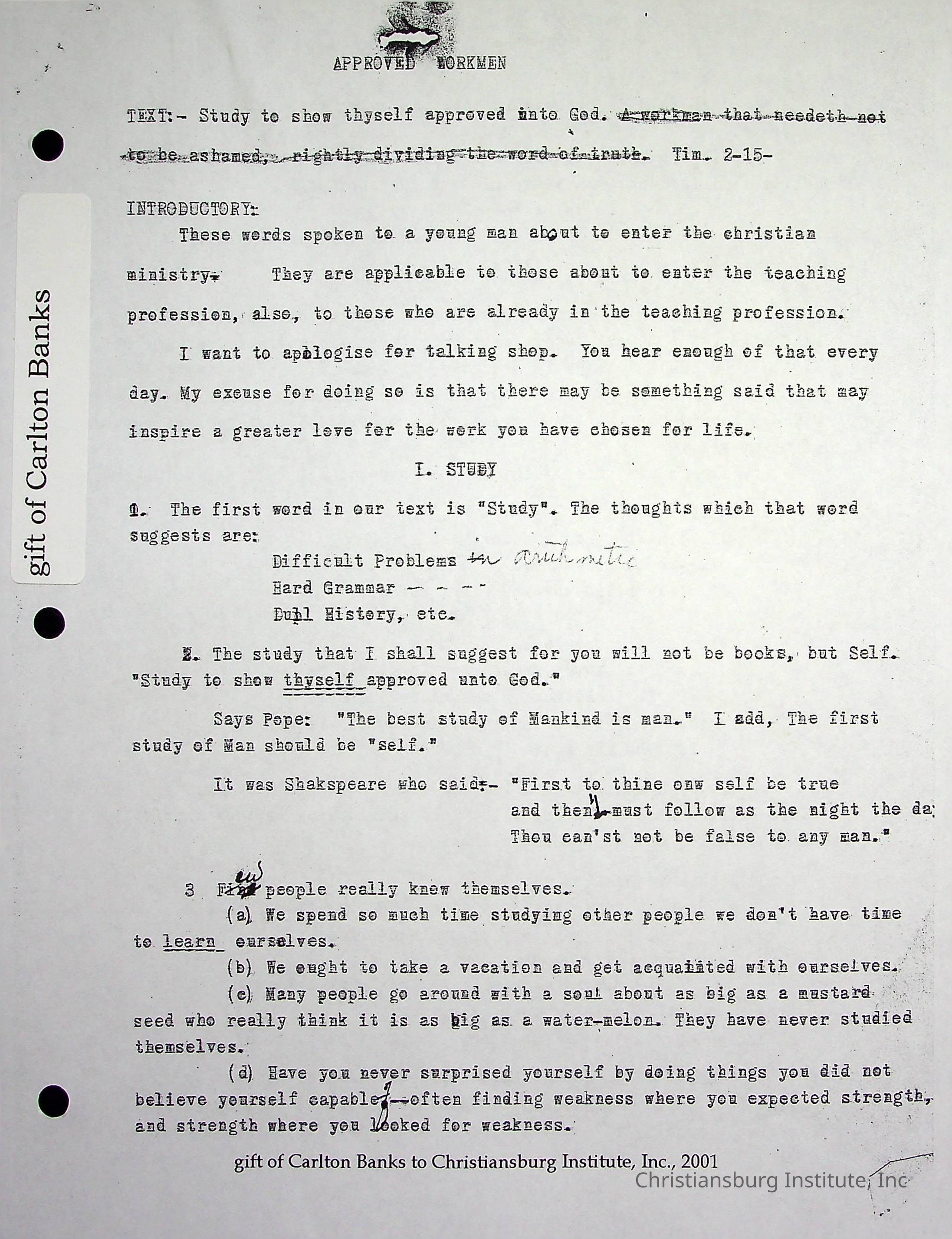 Copyright has been assigned to Christiansburg Institute Museum & Archives by Carlton Banks. For permission to publish materials created by the donor, contact CIMA@christiansburginstitute.com. Materials not created by John F. Banks may still be under copyright.