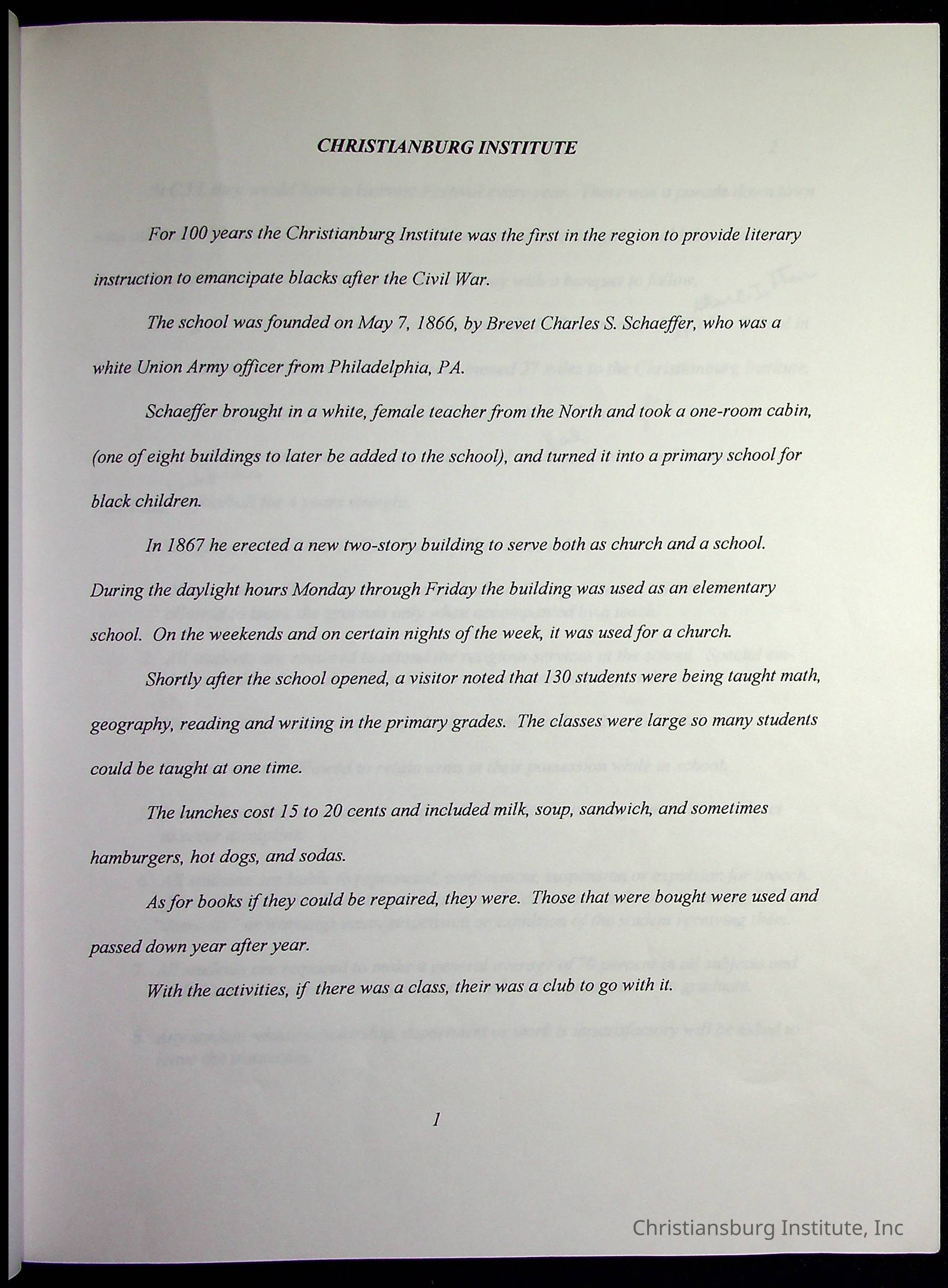 A research paper about the history of Christiansburg Institute written by April McPack of Pulaski High School in 1996.Creator