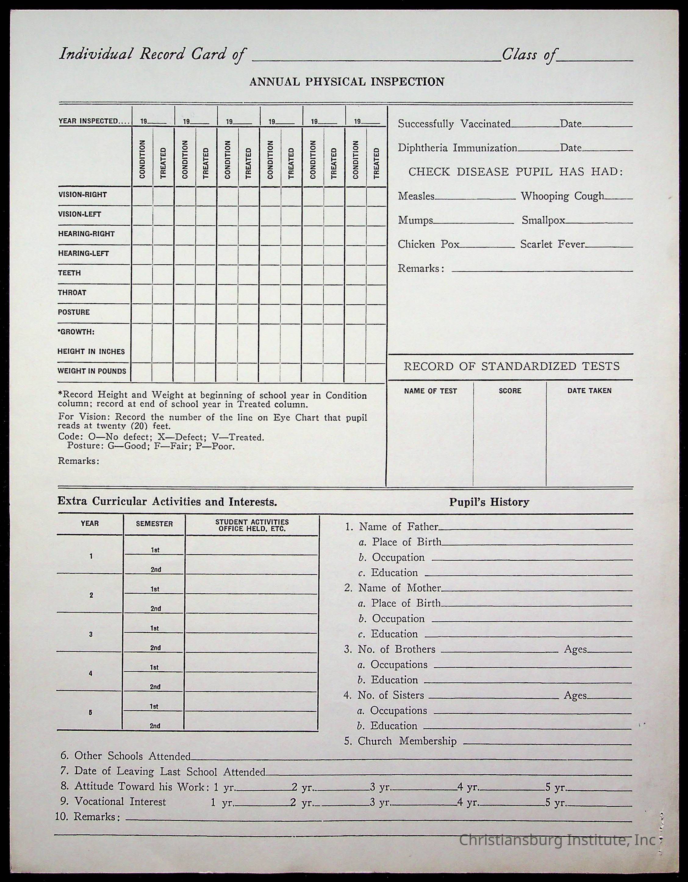 Copyright has been assigned to Christiansburg Institute Museum & Archives by Montgomery County Public Schools. For permission to publish materials created by the donor, contact CIMA@christiansburginstitute.com. Materials not created by Christiansburg Industrial Institute may still be under copyright.
