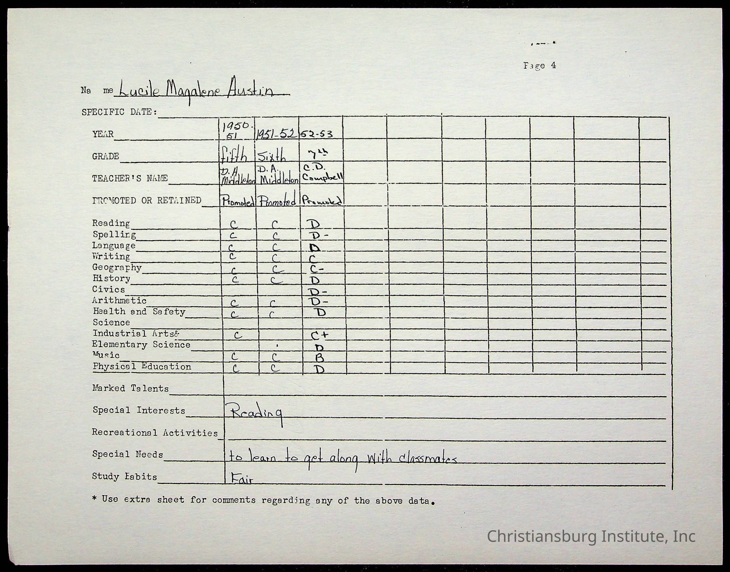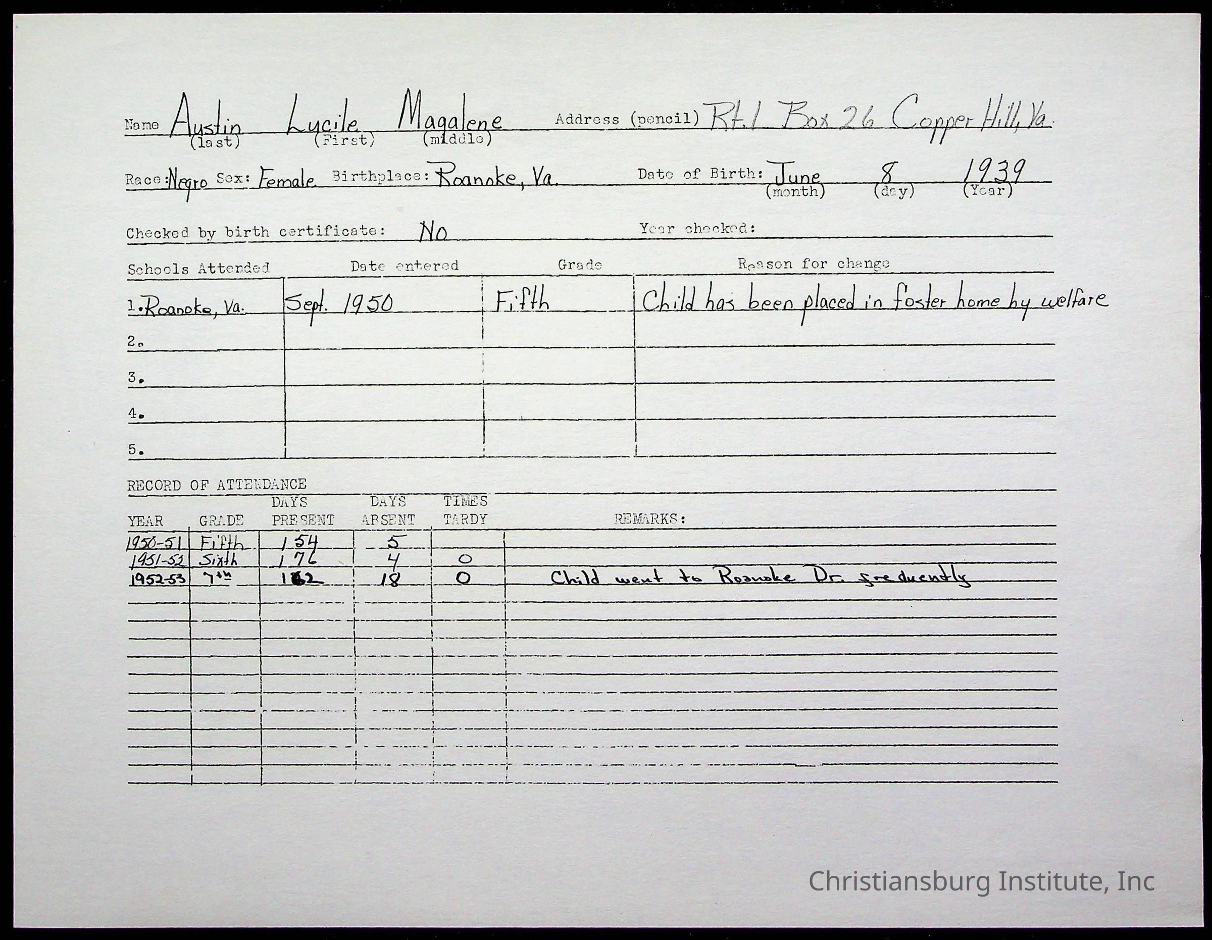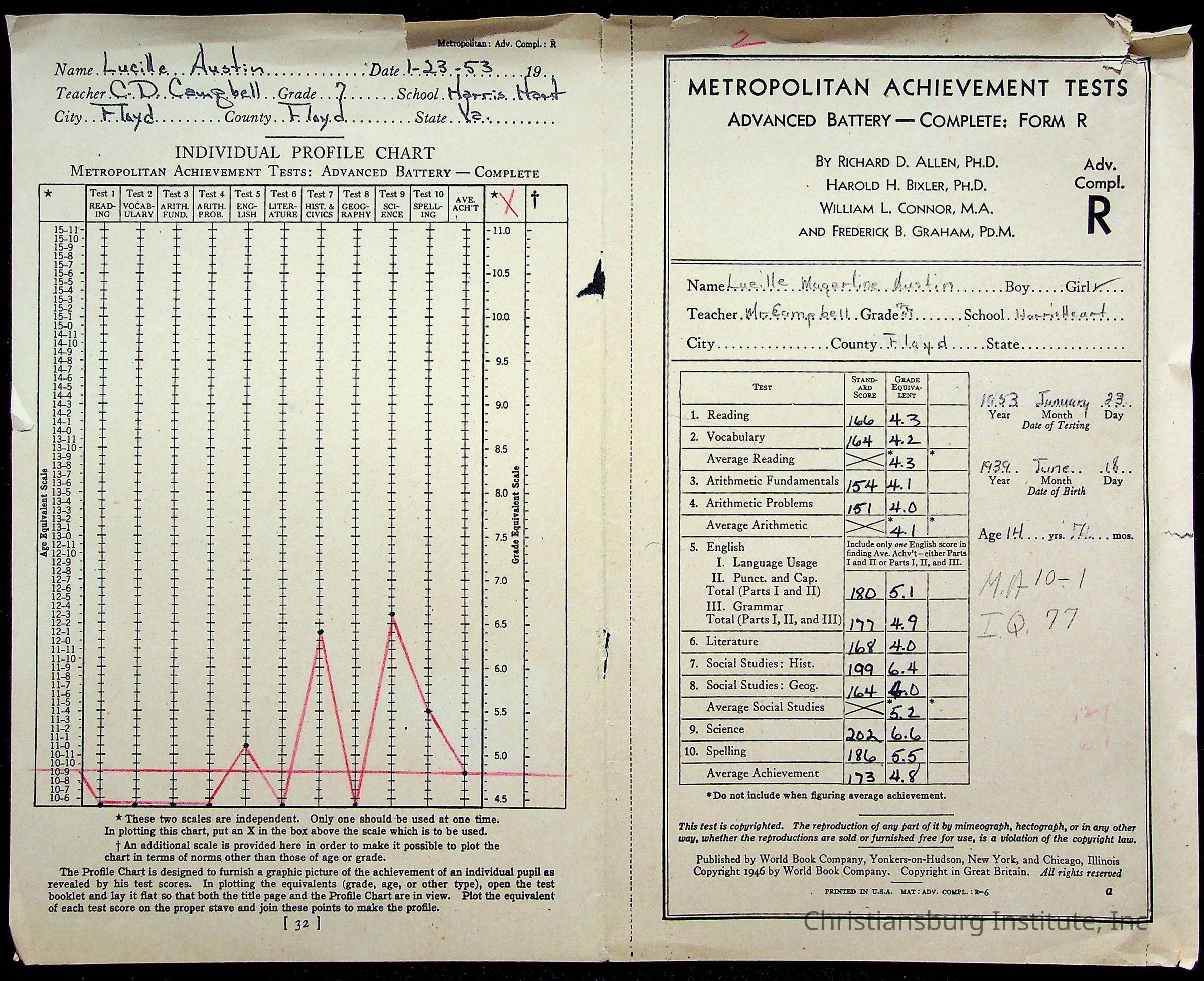 Montgomery County Public Schools, Christiansburg Institute, Austin, Lucile