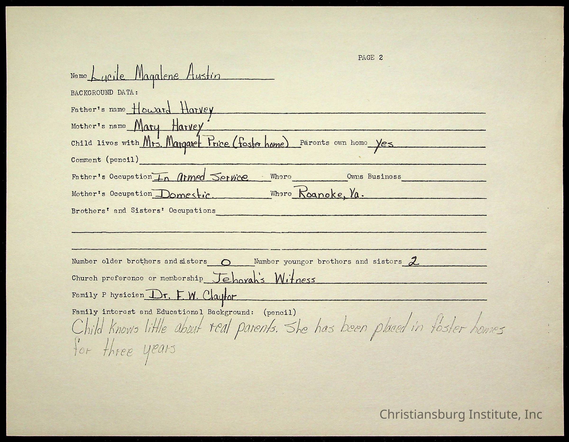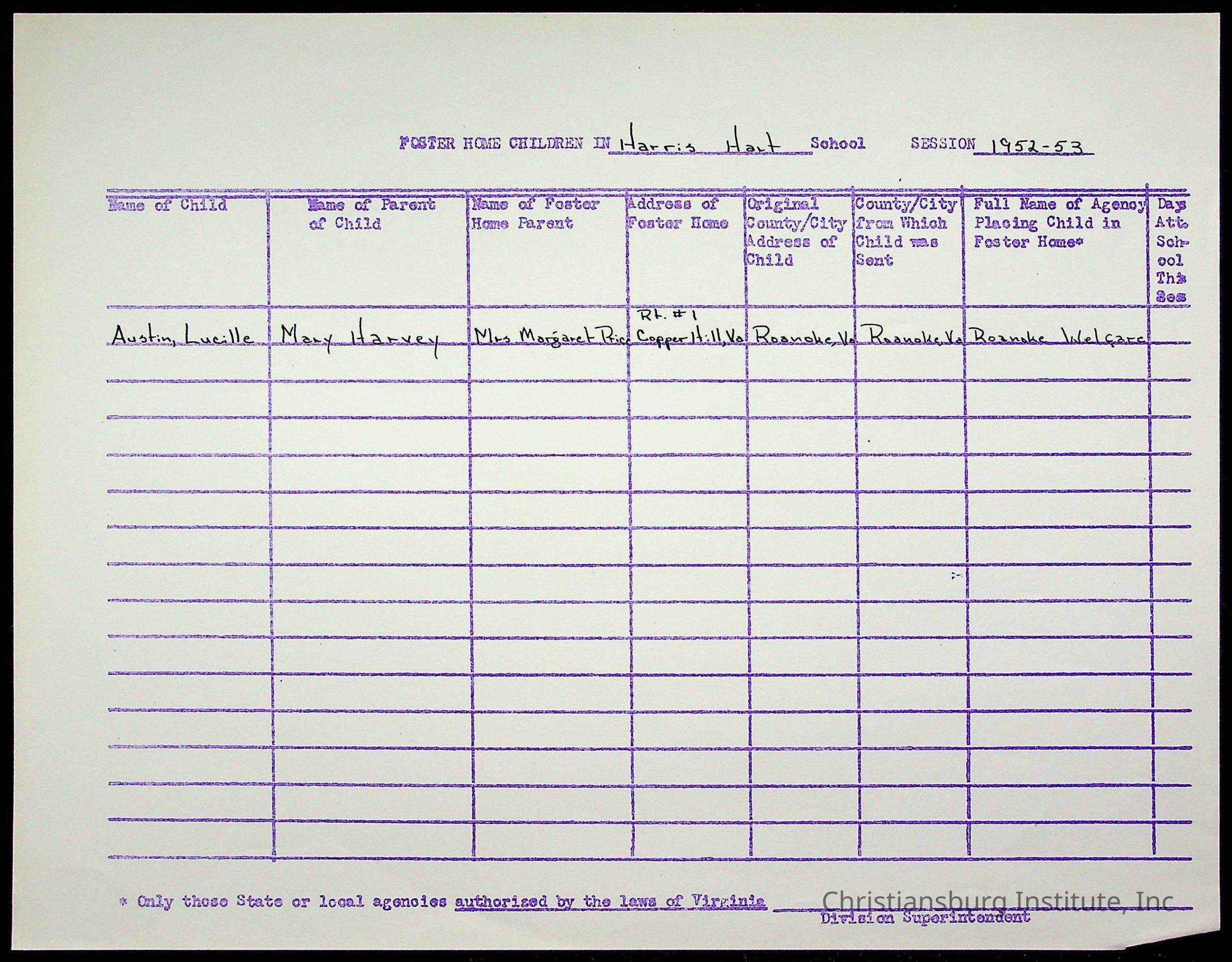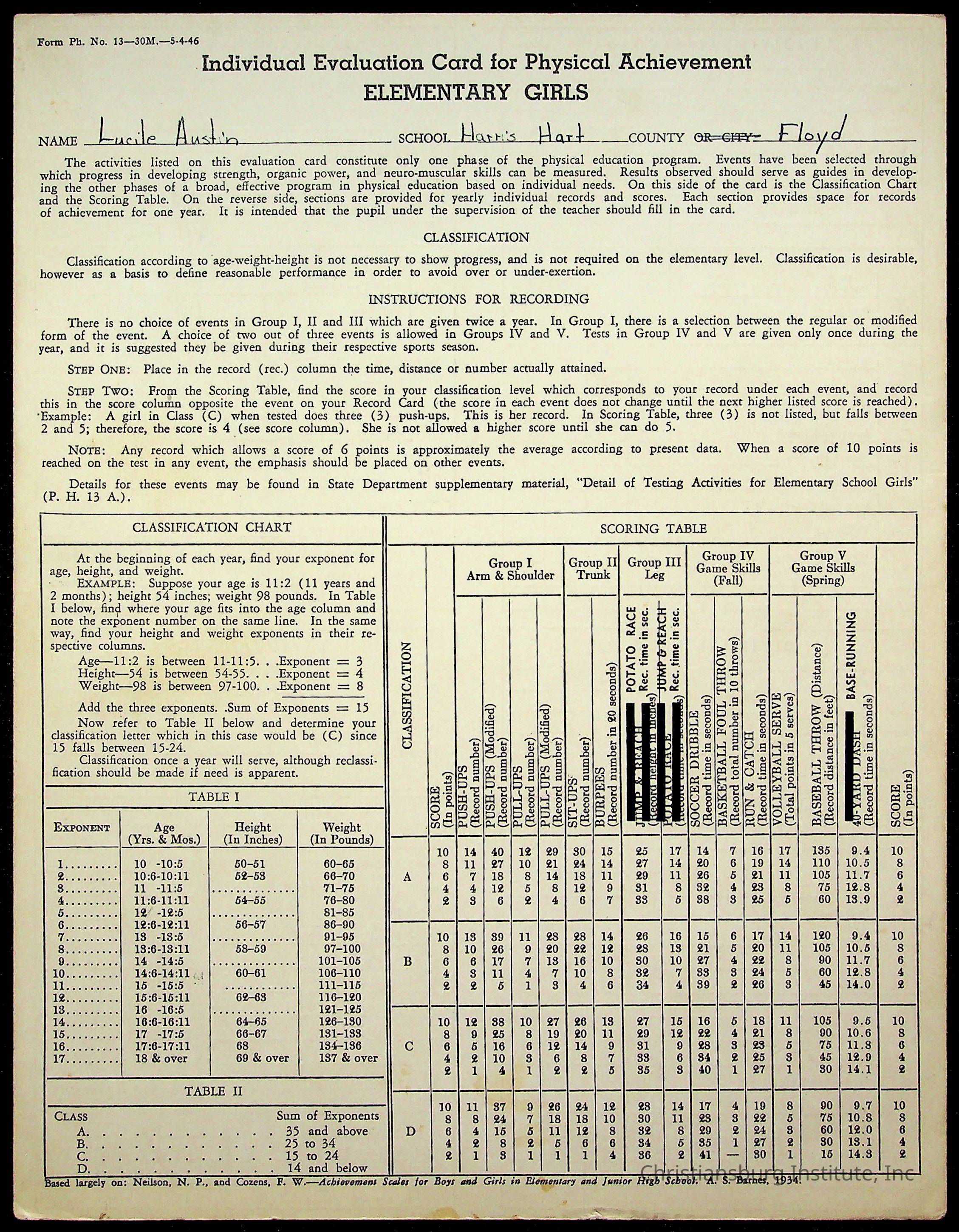Montgomery County Public Schools, Christiansburg Institute, Austin, Lucile