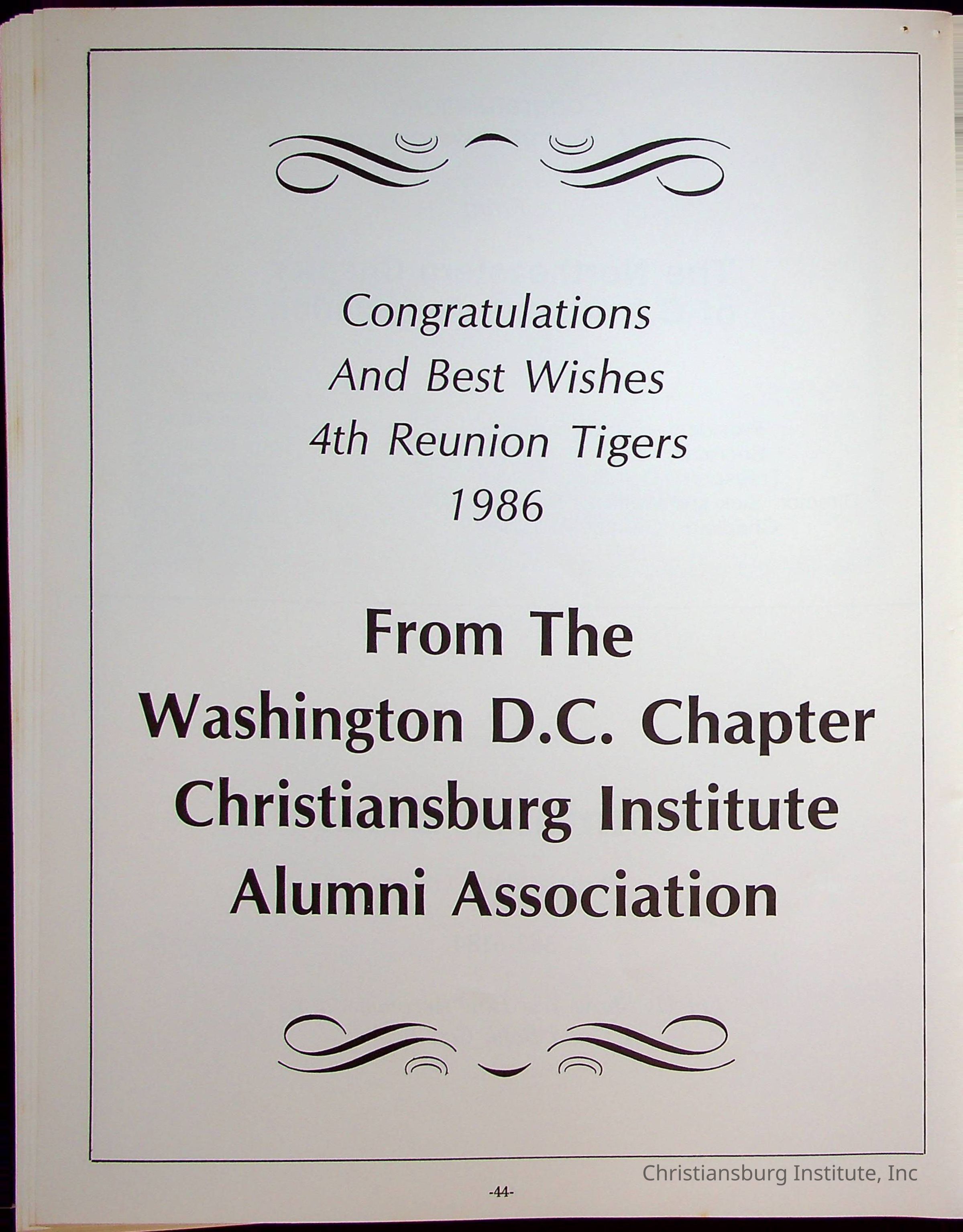 Fourth Reunion Booklet Christiansburg Institute, 1986Description
