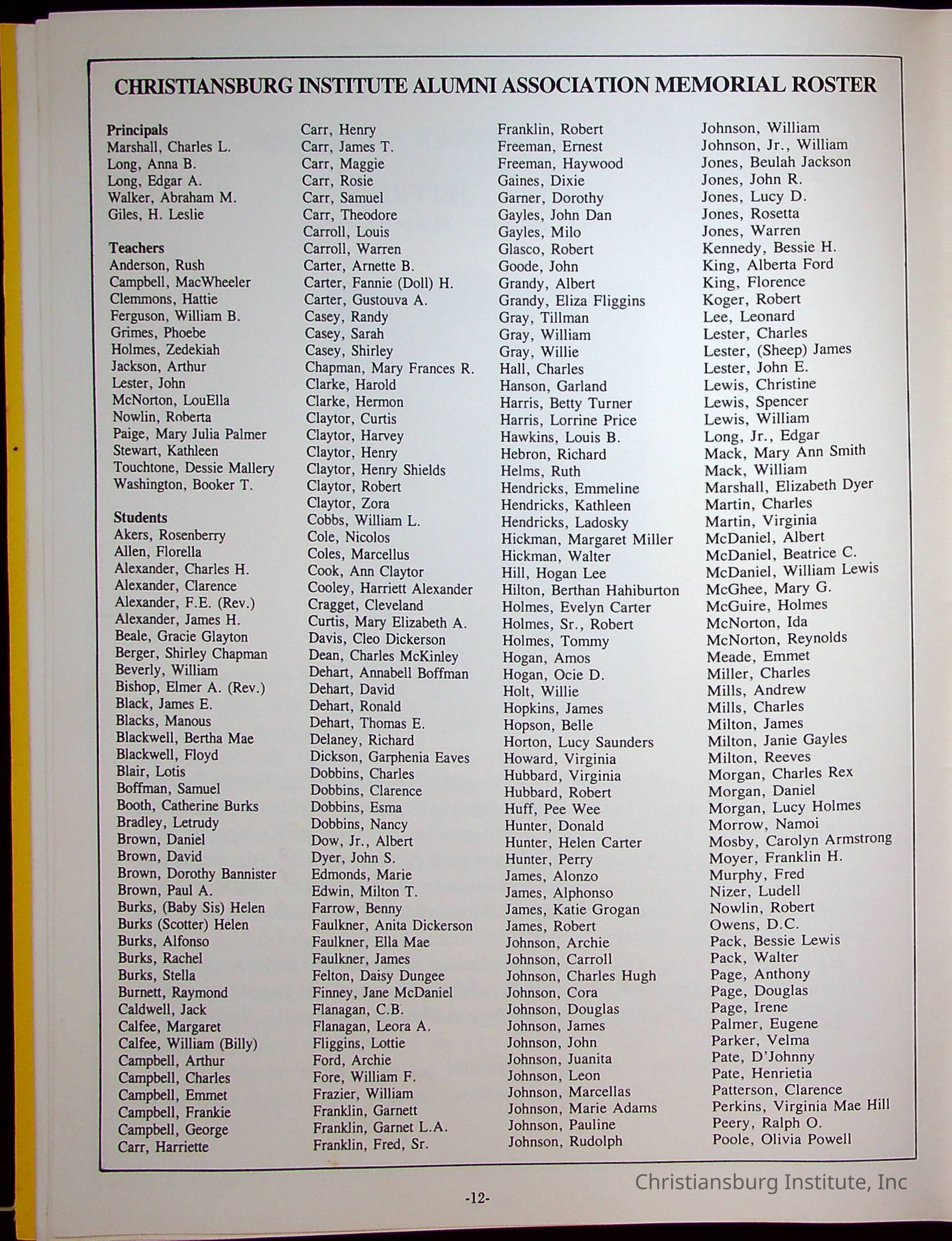 Christiansburg Institute Alumni AssociationPlace Published