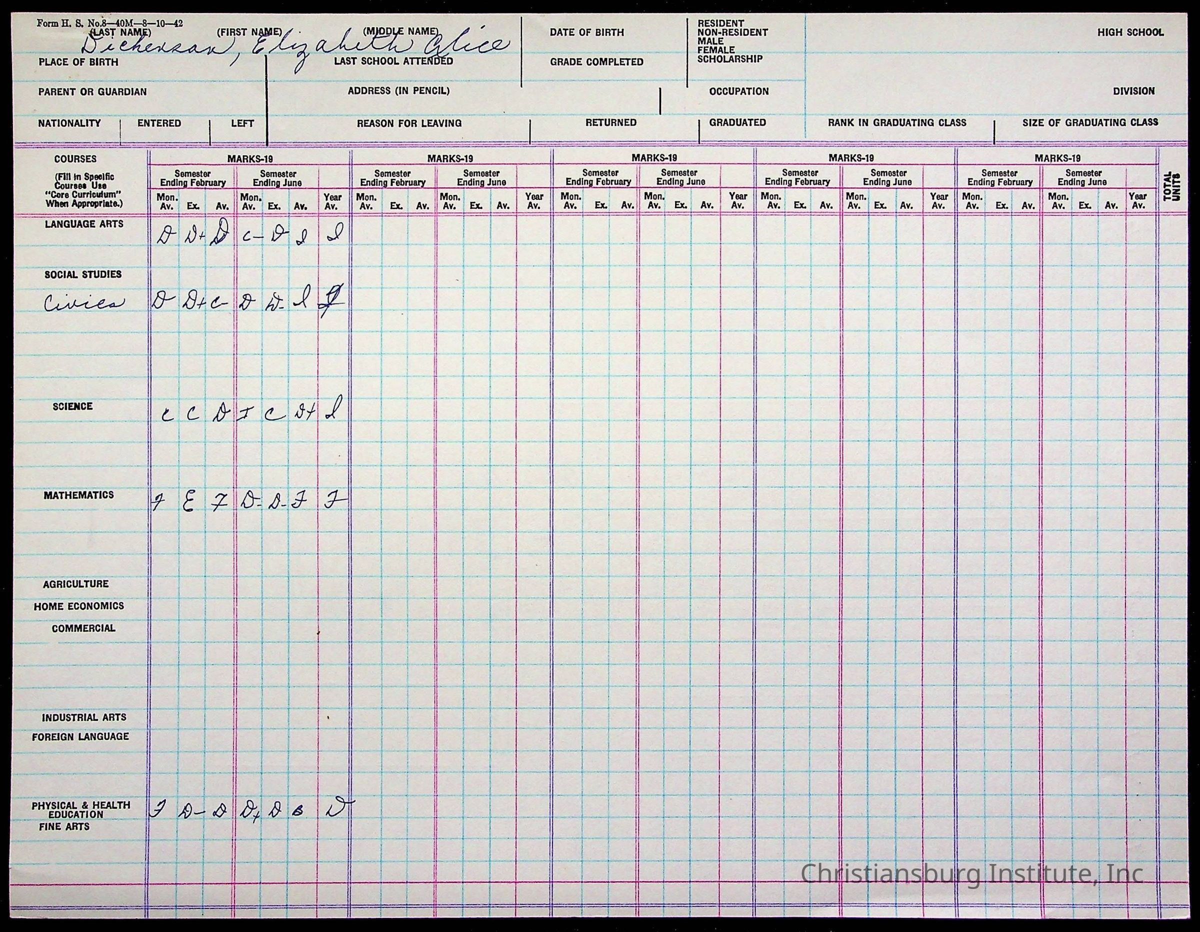 Montgomery County Public Schools, Christiansburg Institute, Dicheisan, Elizabeth A.