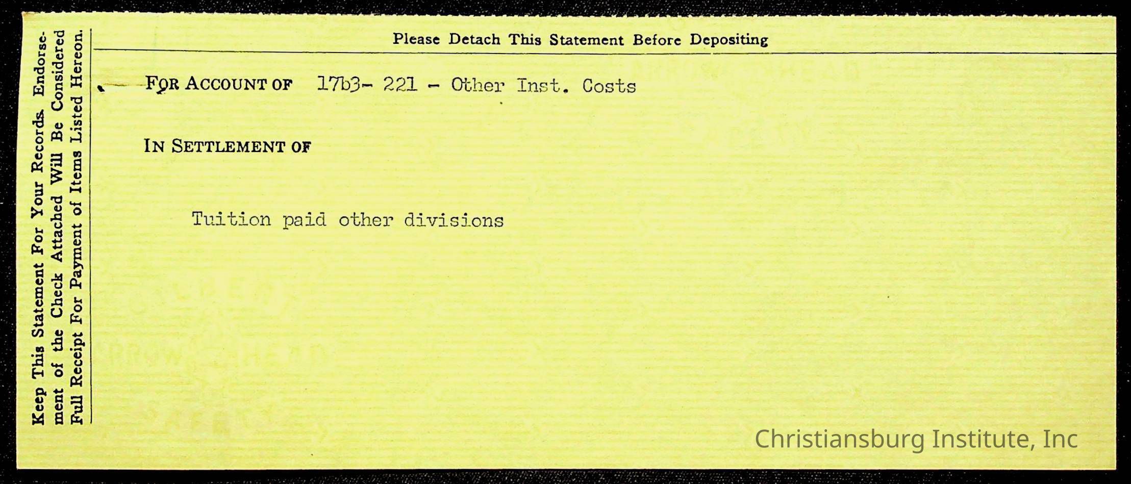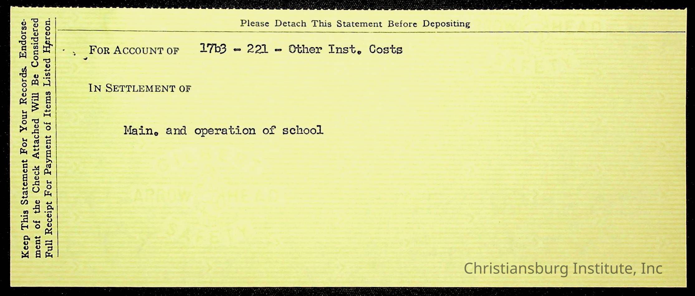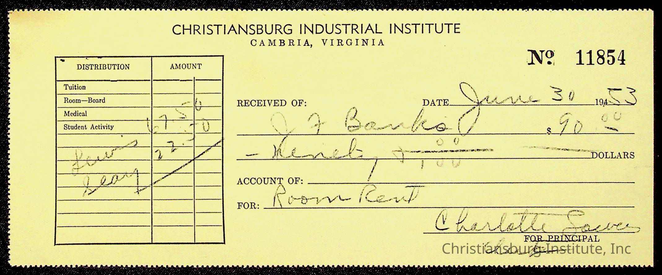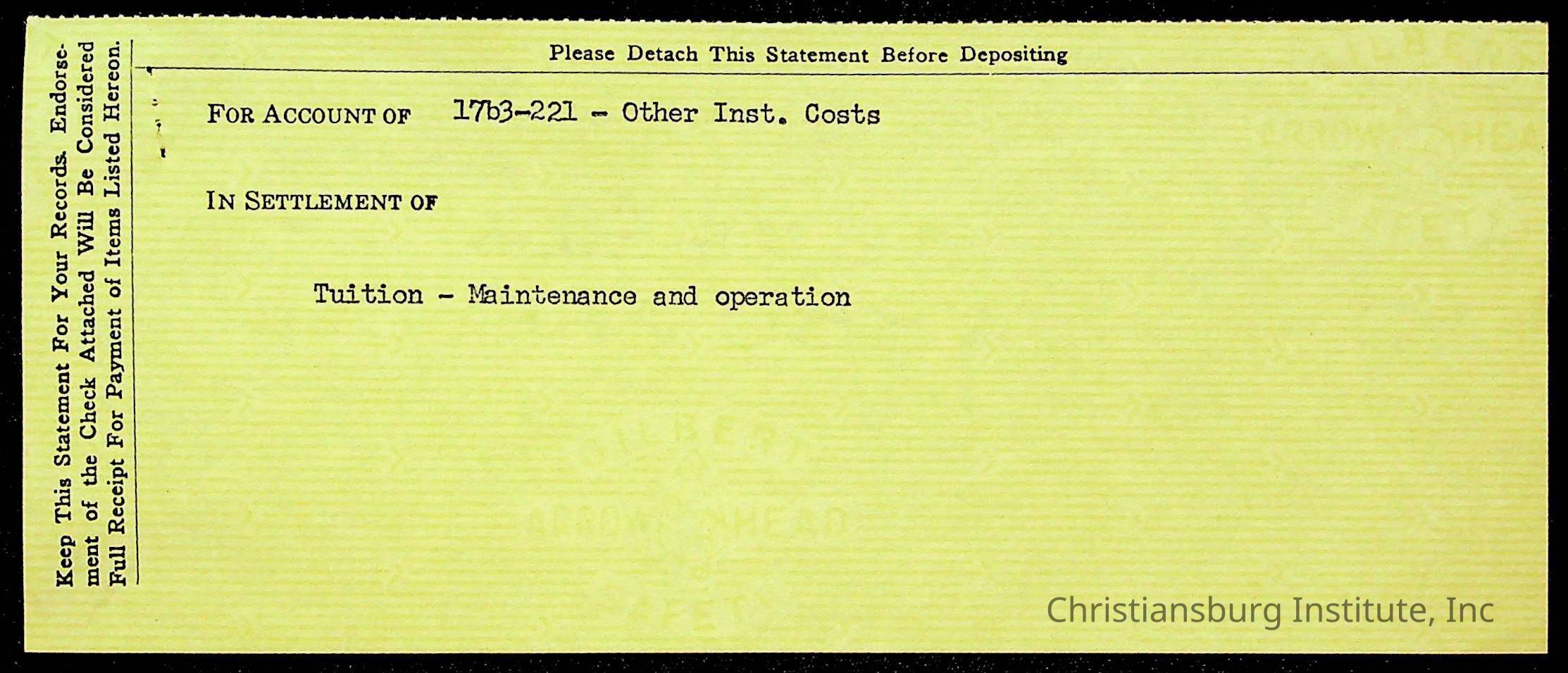 An archive of bills and receipts for Christiansburg Institute from the 1951-1953 school years.