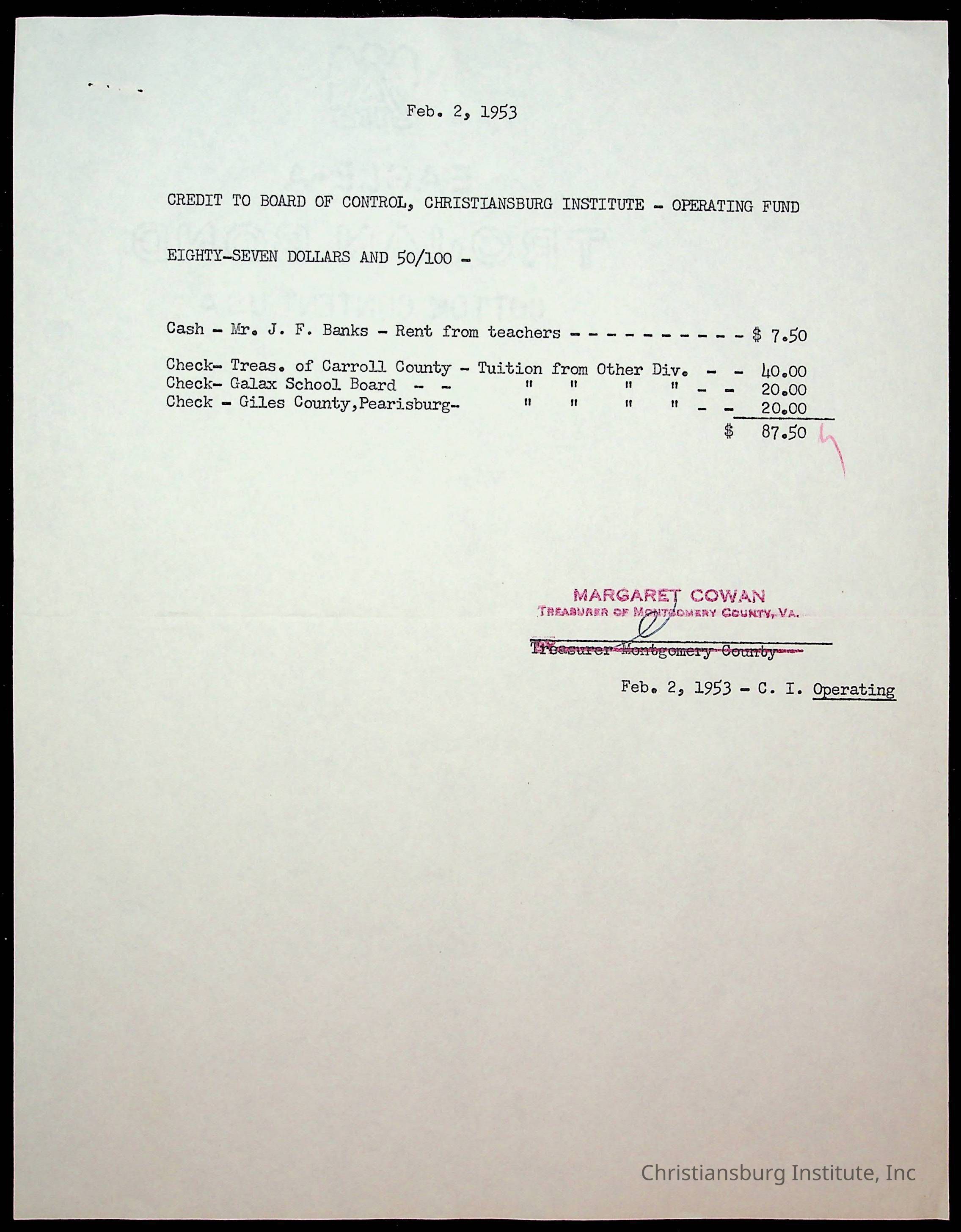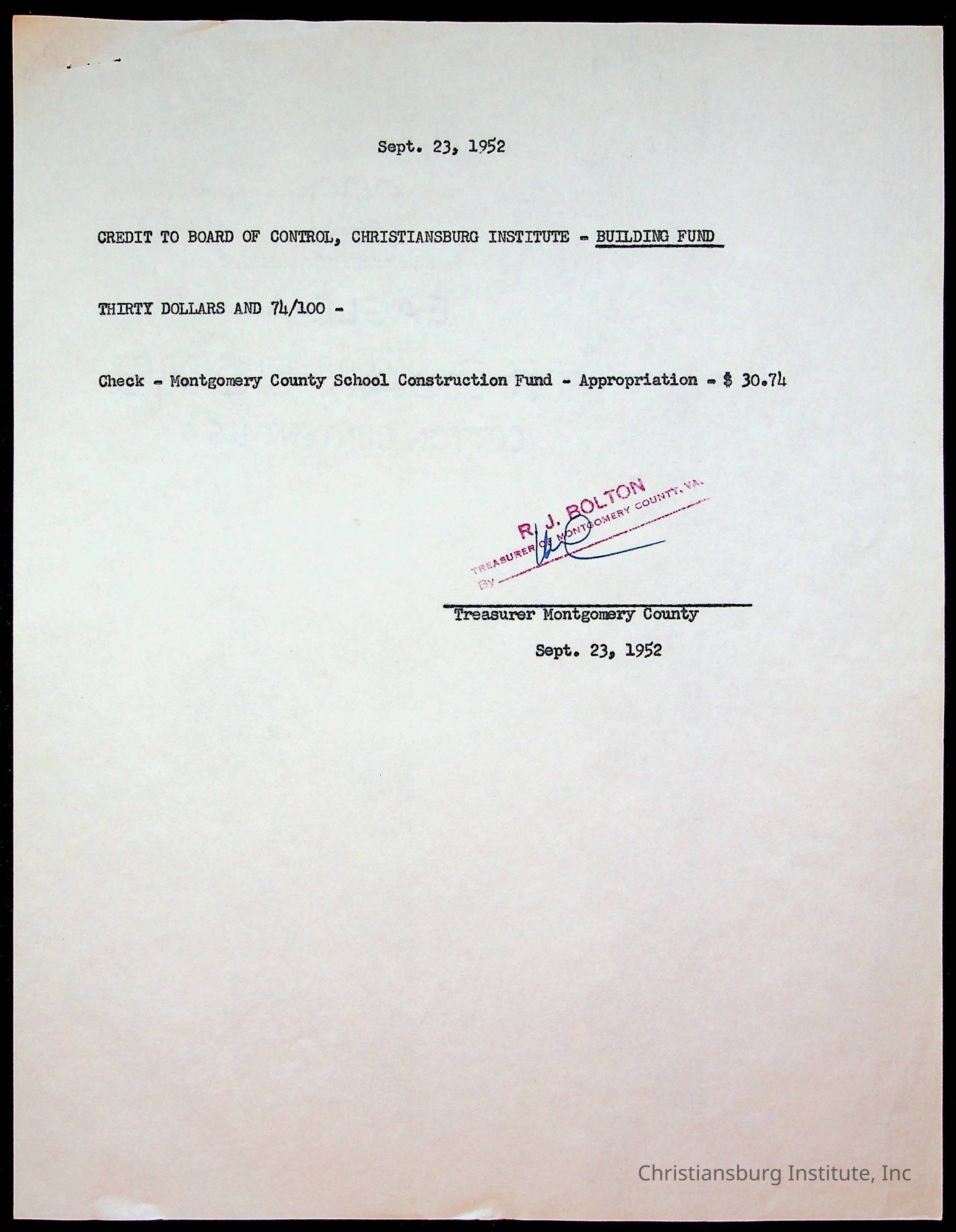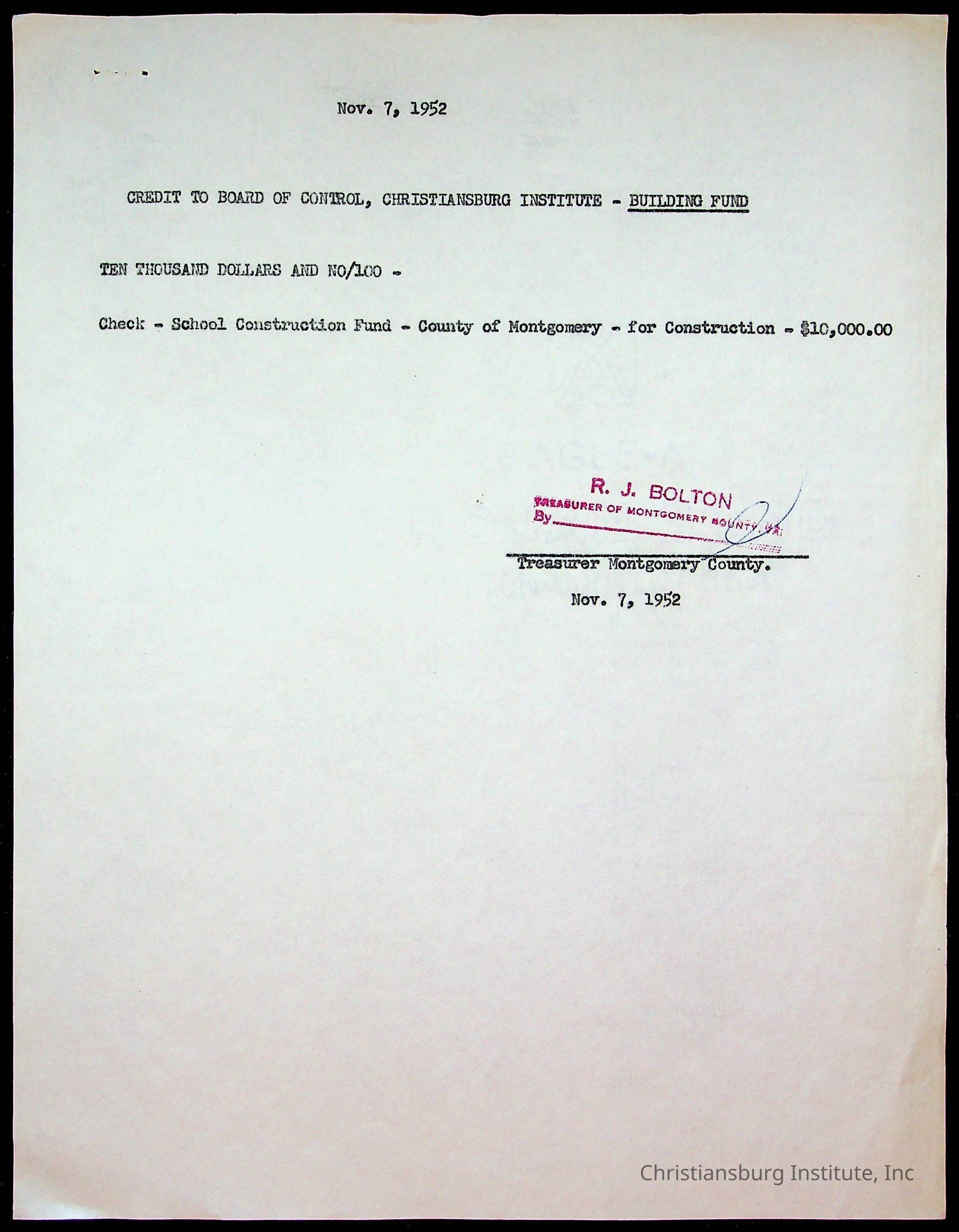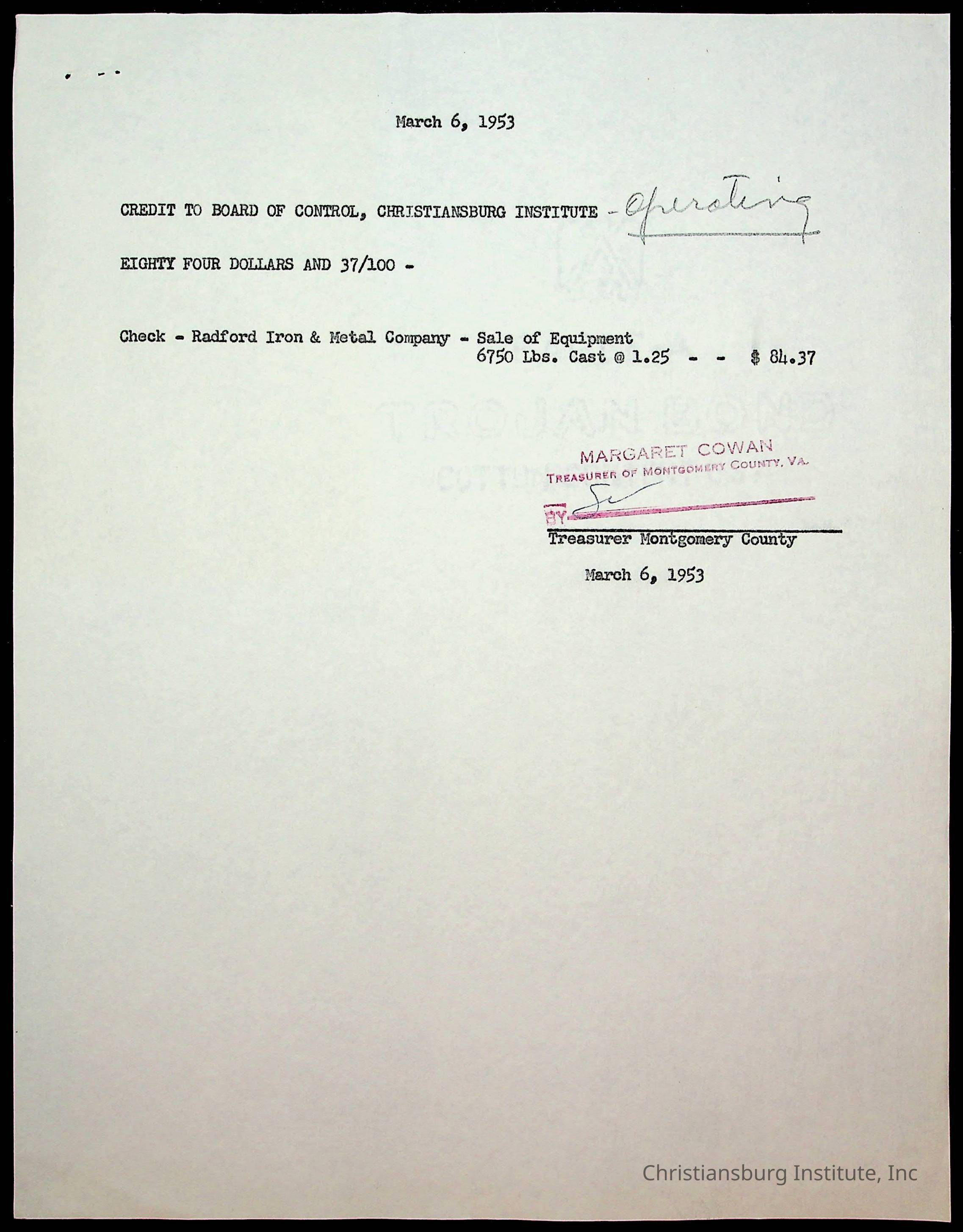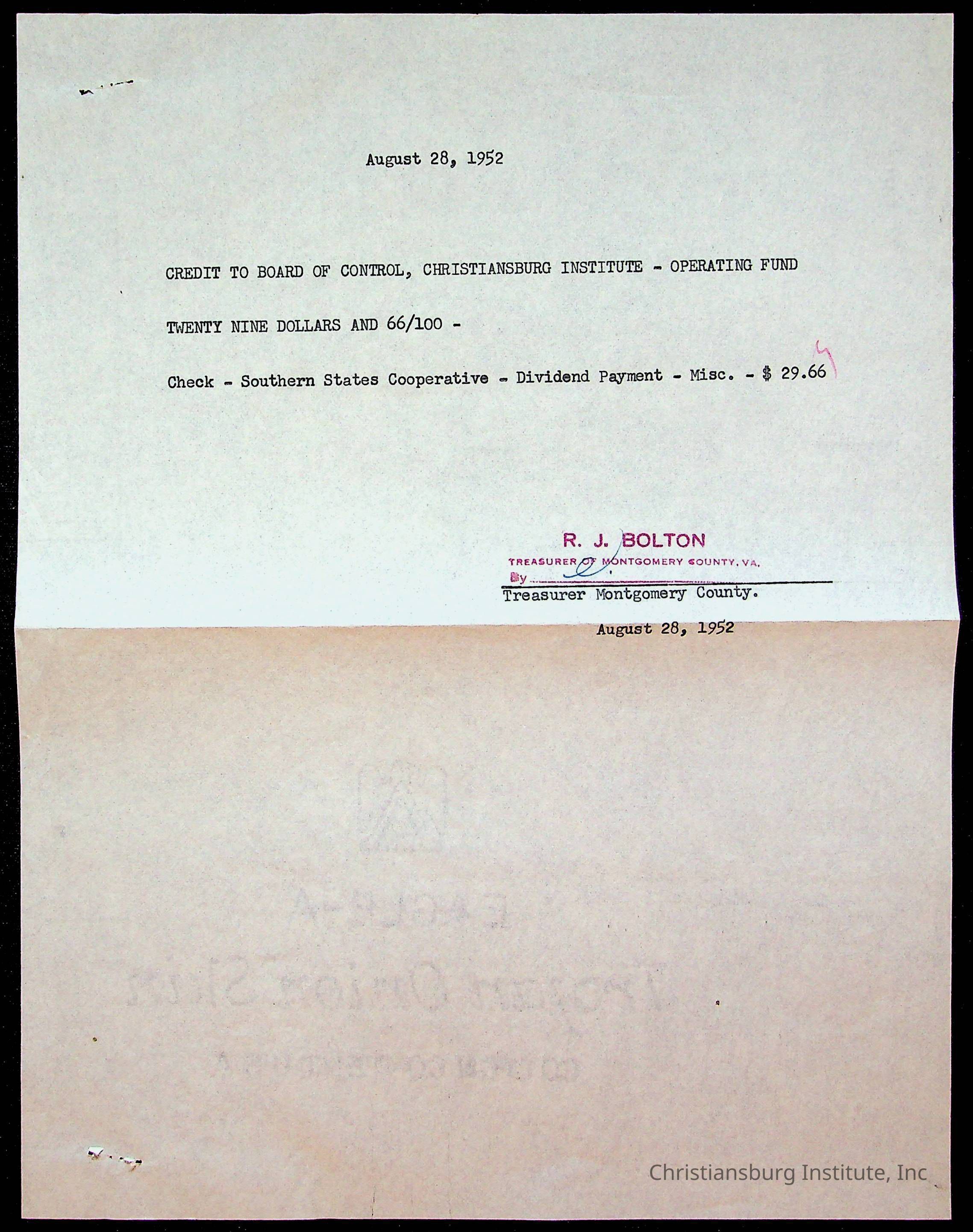 Copyright has been assigned to Christiansburg Institute Museum & Archives by Montgomery County Public Schools. For permission to publish materials created by the donor, contact CIMA@christiansburginstitute.com. Materials not created by Christiansburg Industrial Institute may still be under copyright.