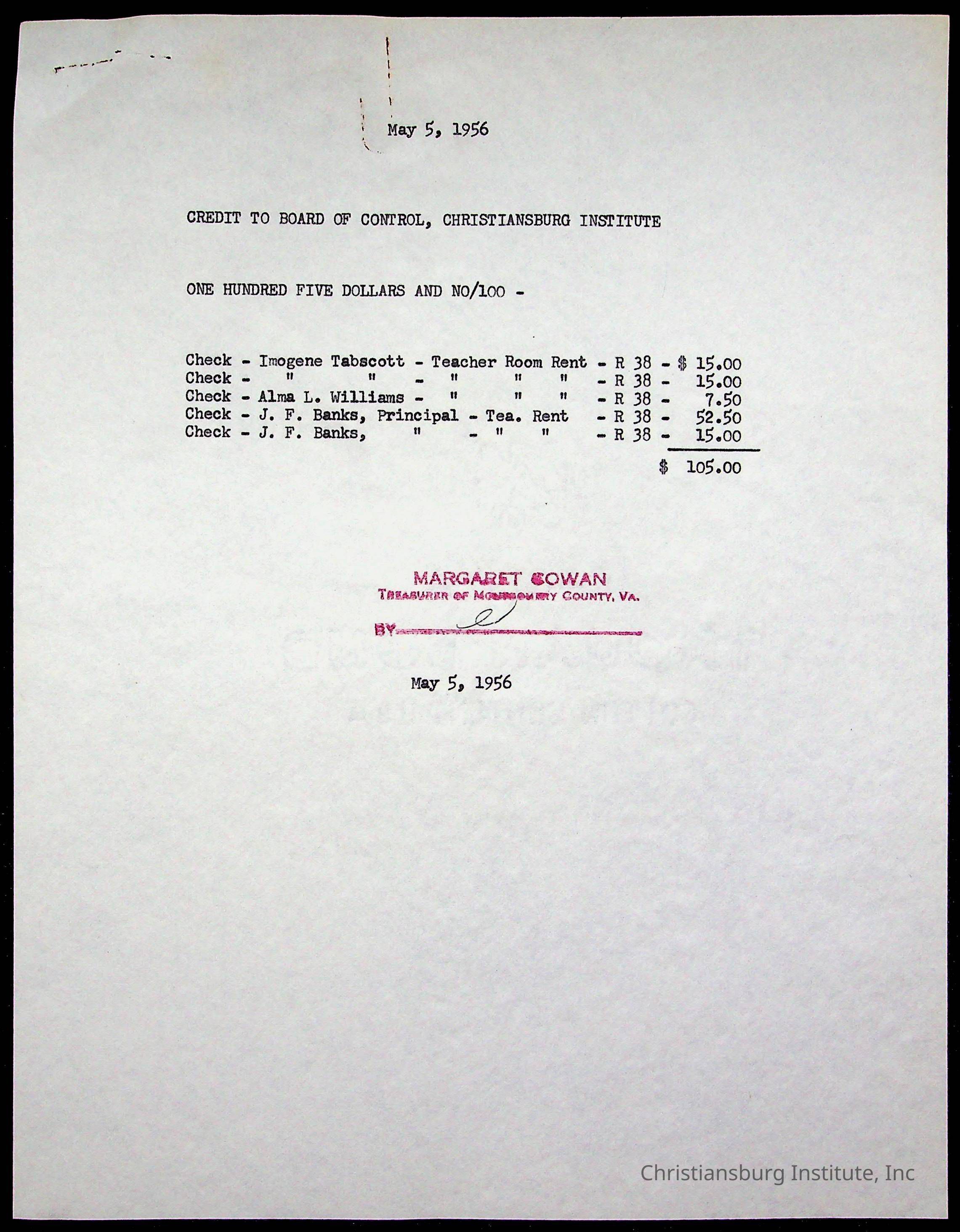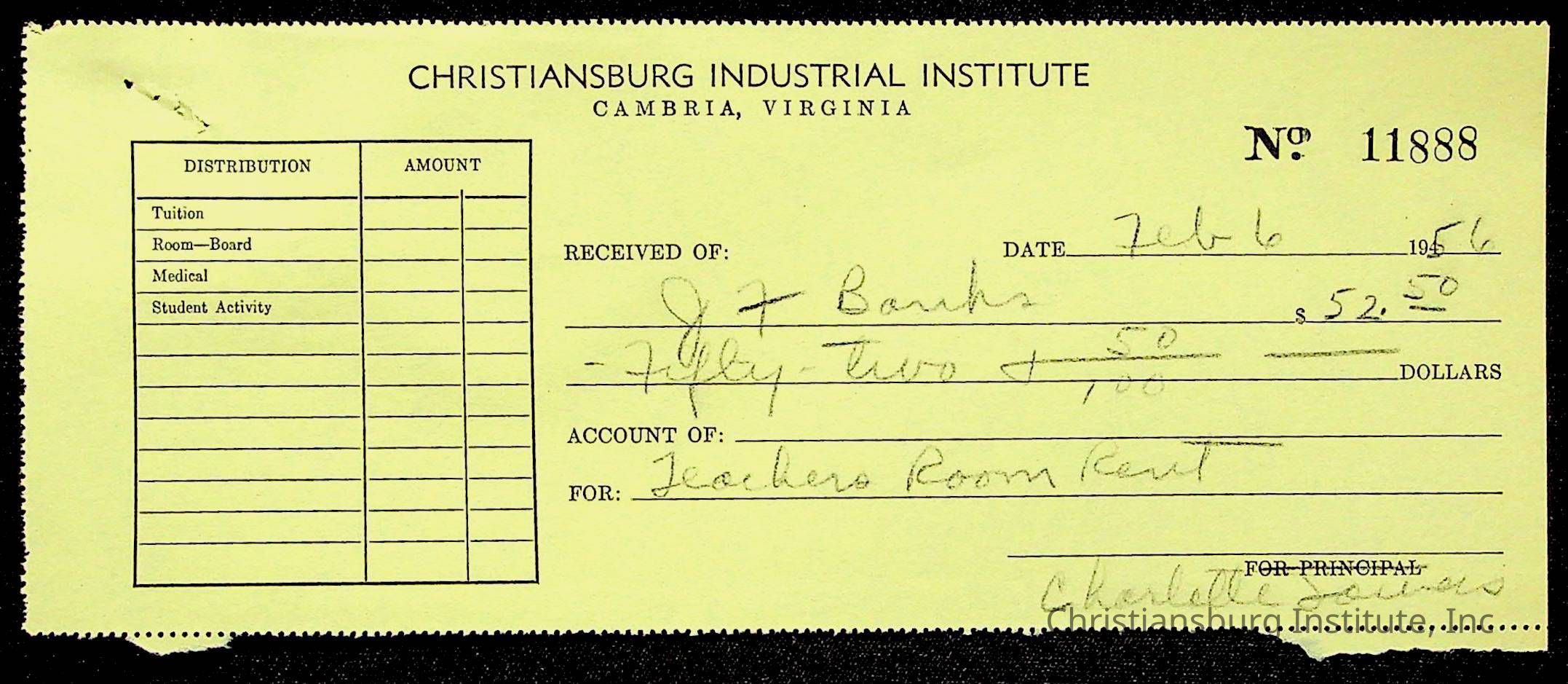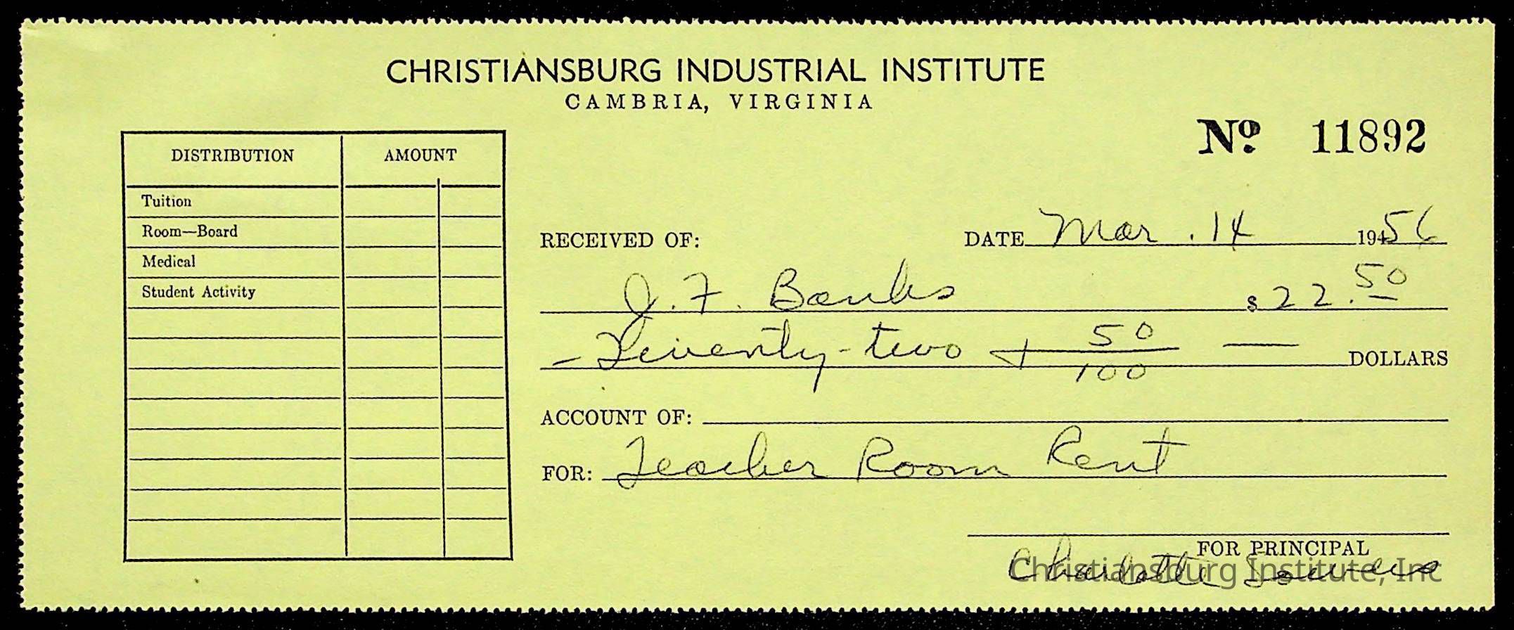 Christiansburg Institute Treasury Receipts, 1955-1956
