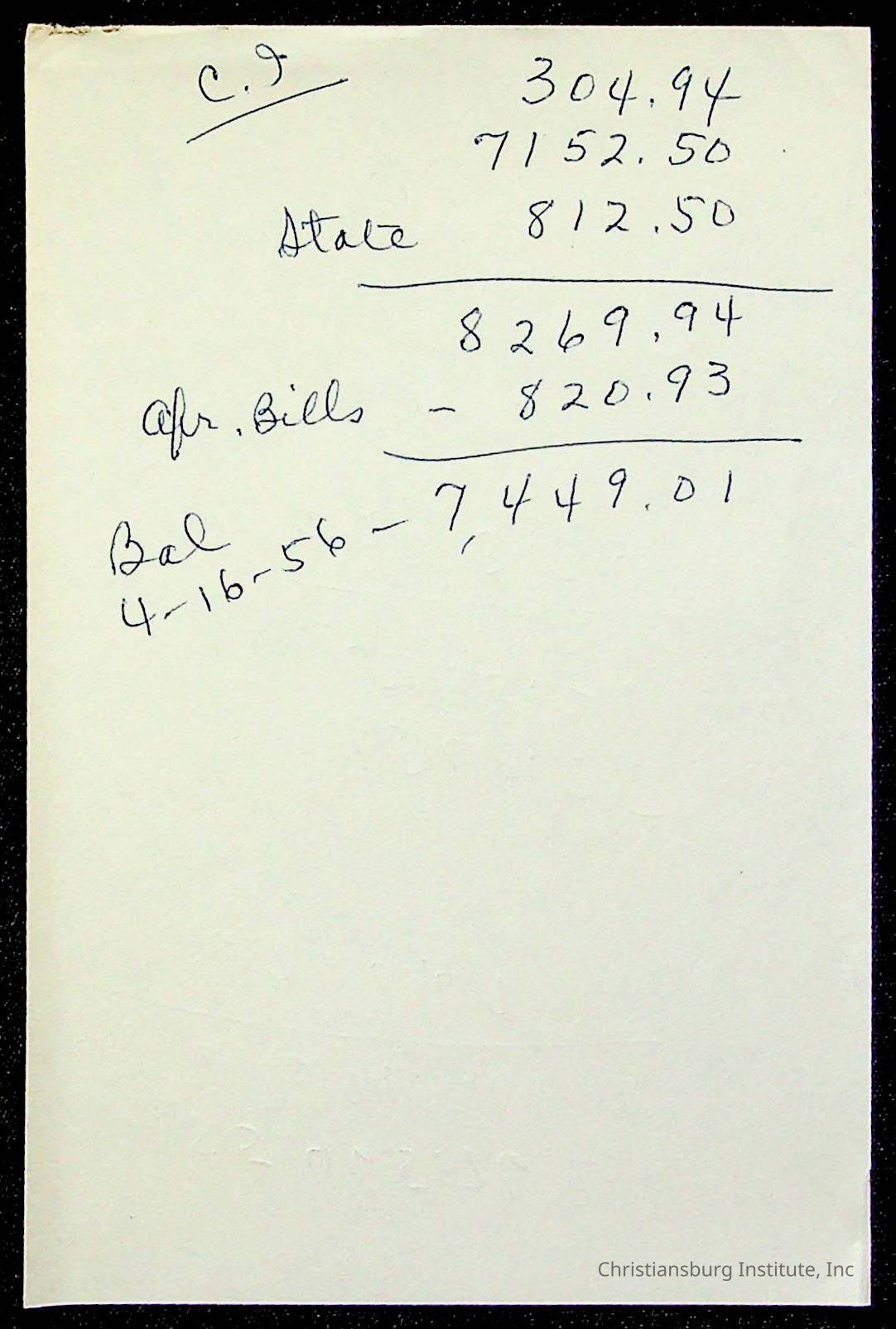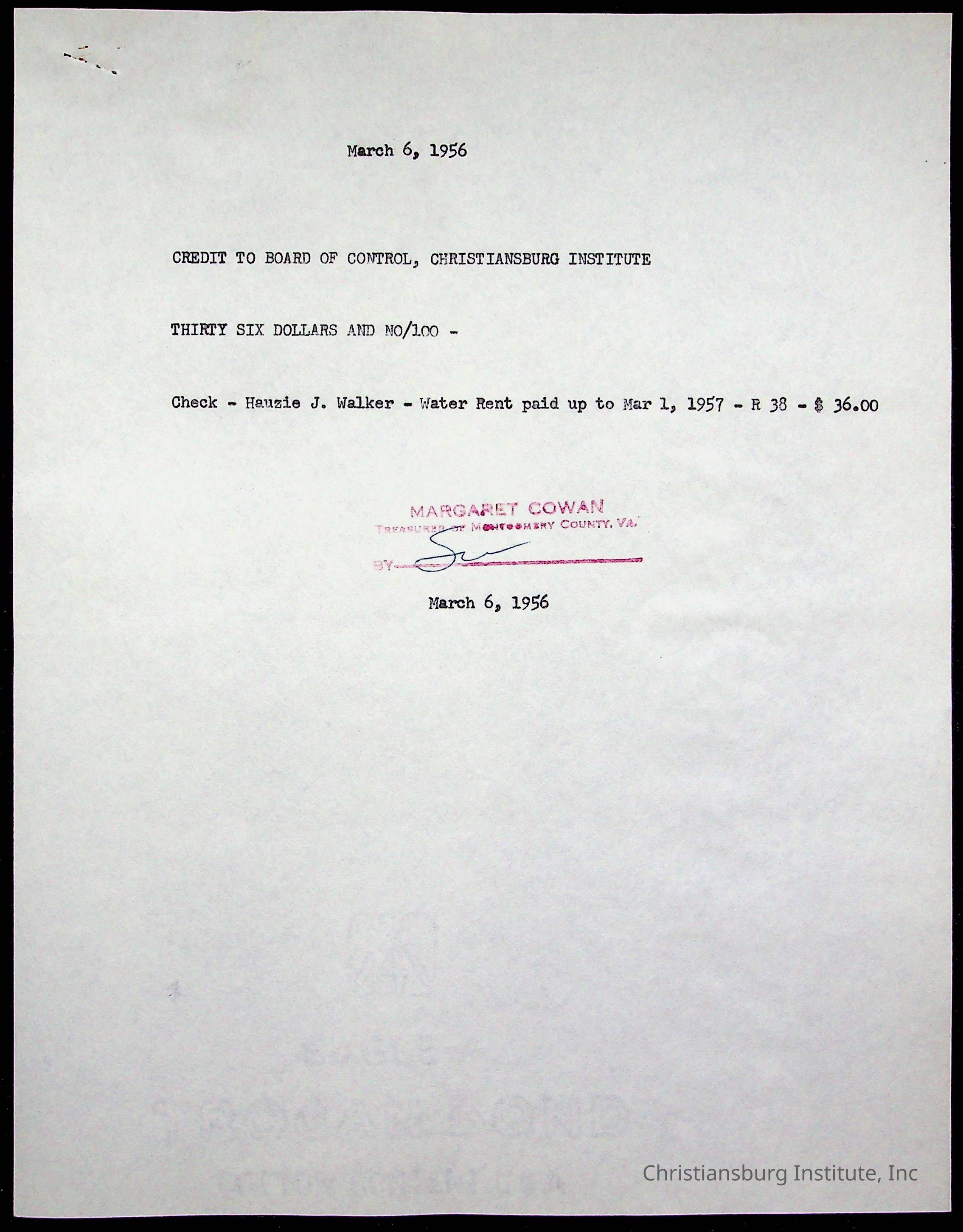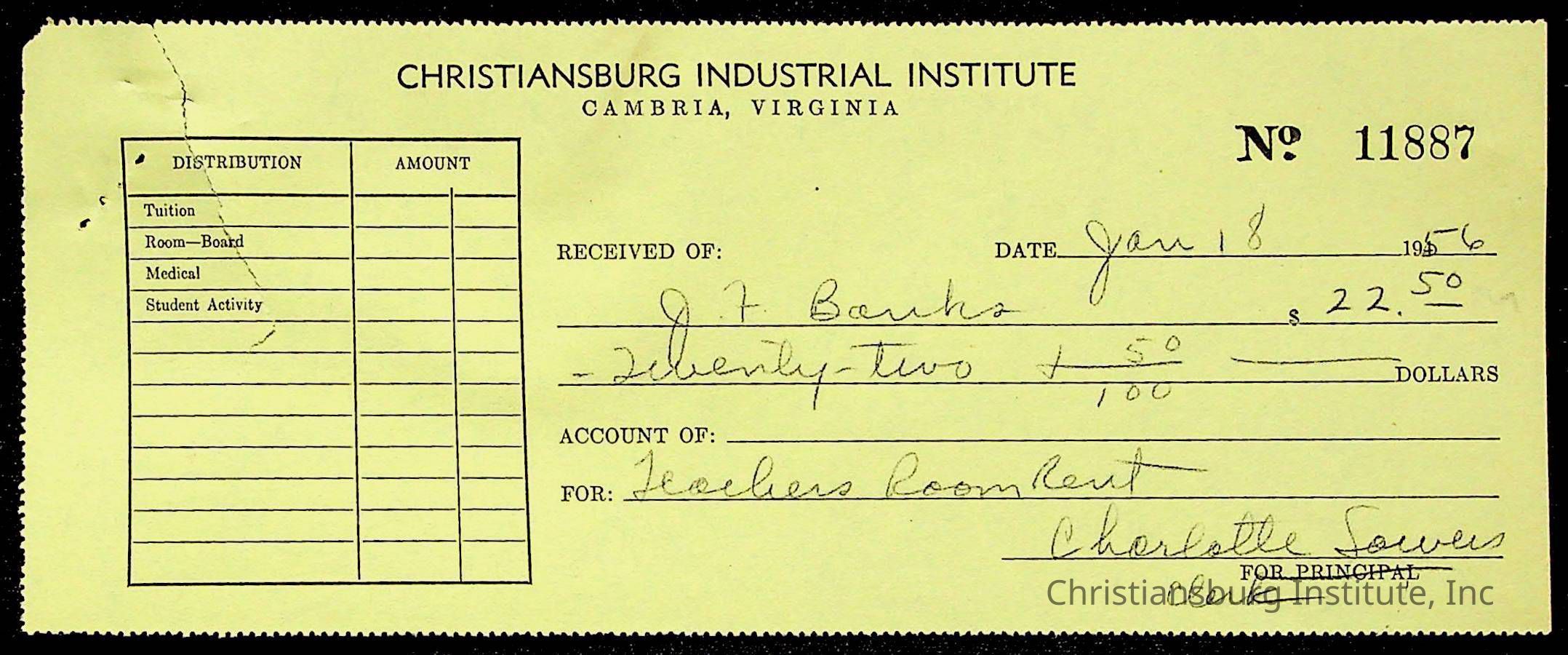 Christiansburg Institute Treasury Receipts, 1955-1956