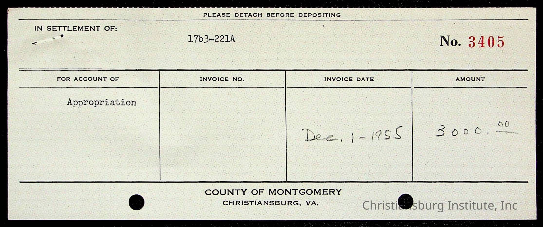 An archive of treasury receipts for Christiansburg Institute for the 1955-1956 school year.