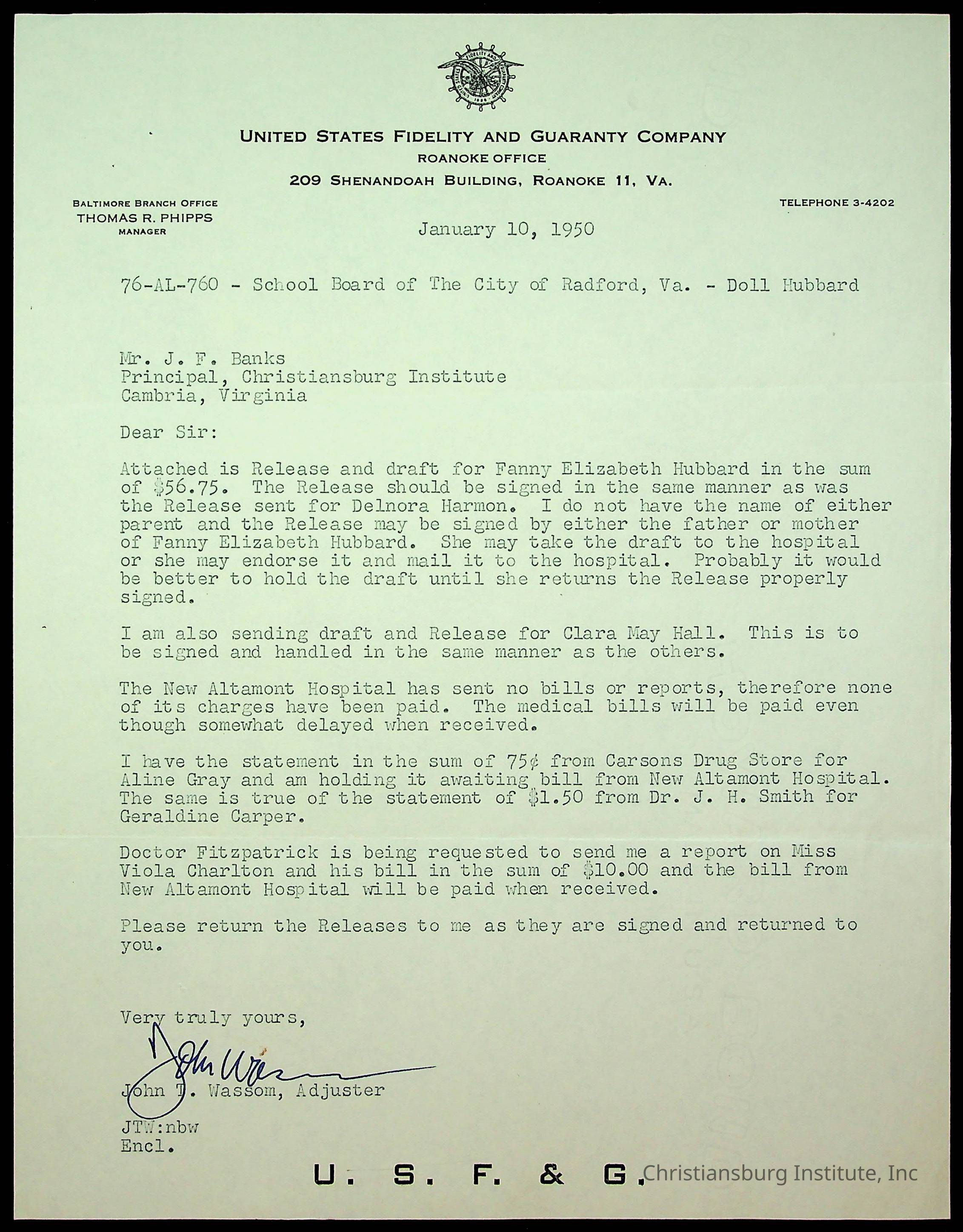 Banks, John F., Christiansburg Institute, New Altamont Hospital, United States Fidelity and Guaranty CompanyRelated Places