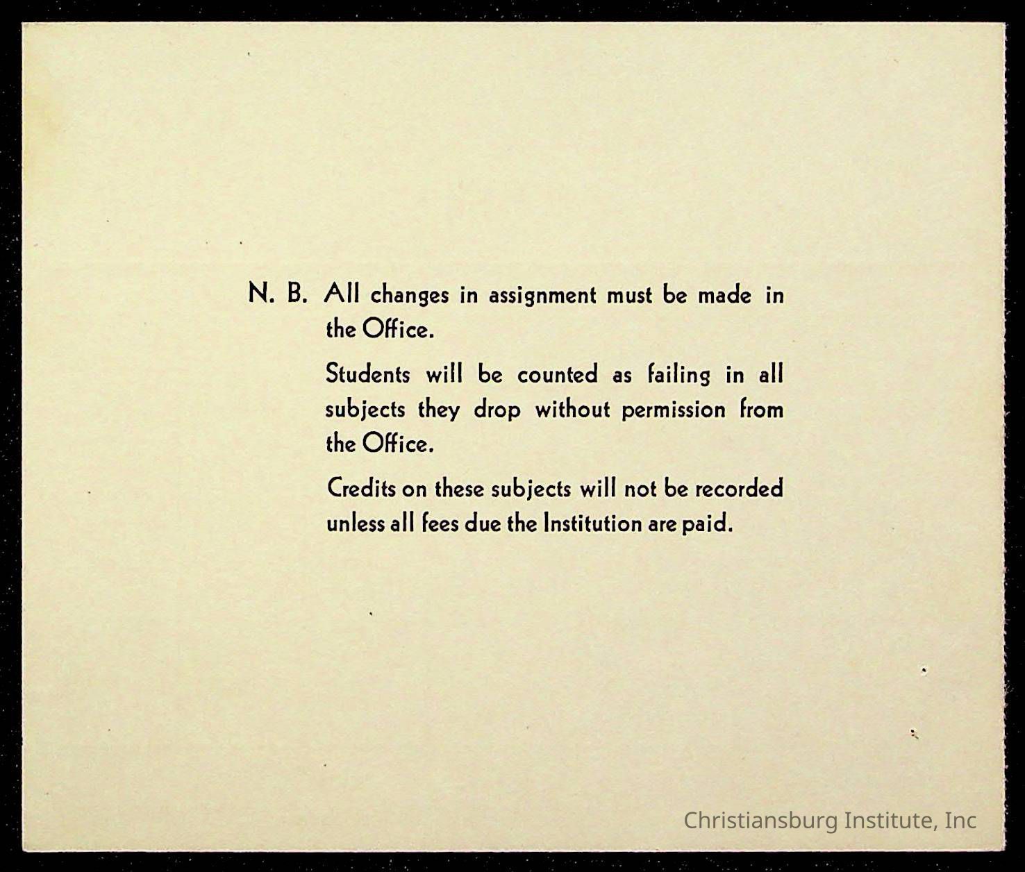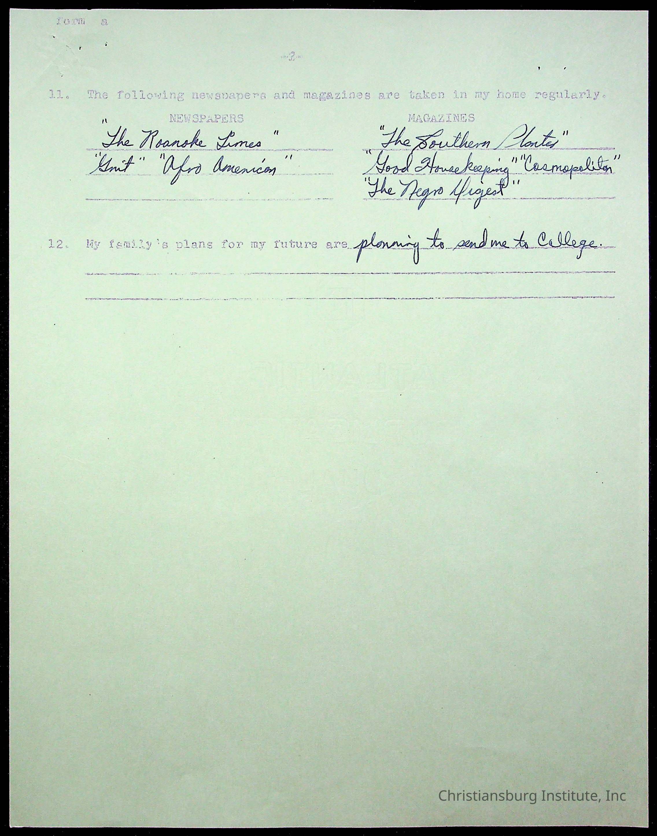 Copyright has been assigned to Christiansburg Institute Museum & Archives by Montgomery County Public Schools. For permission to publish materials created by the donor, contact CIMA@christiansburginstitute.com. Materials not created by Christiansburg Industrial Institute may still be under copyright.