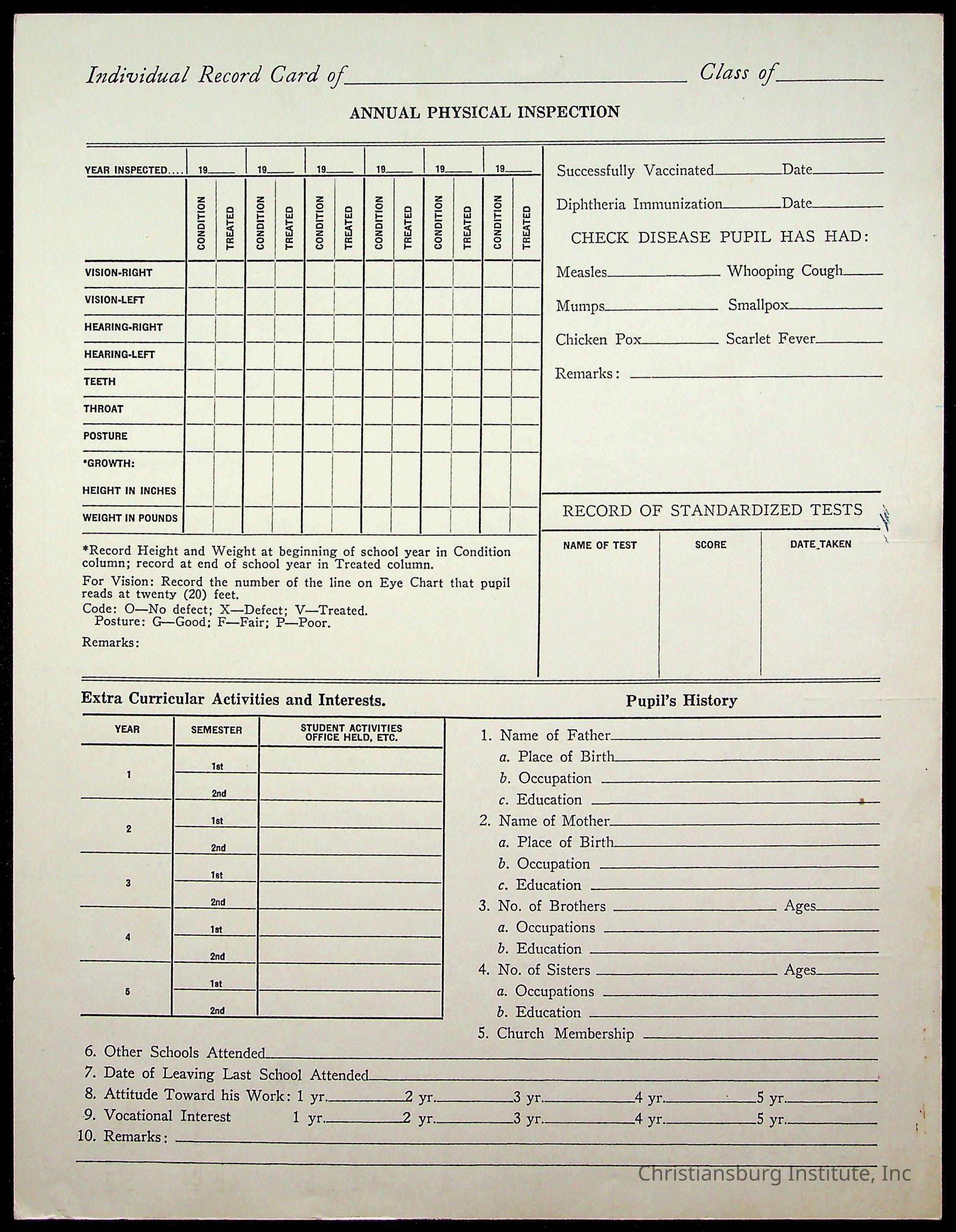 Christiansburg Institute Student Records Collection