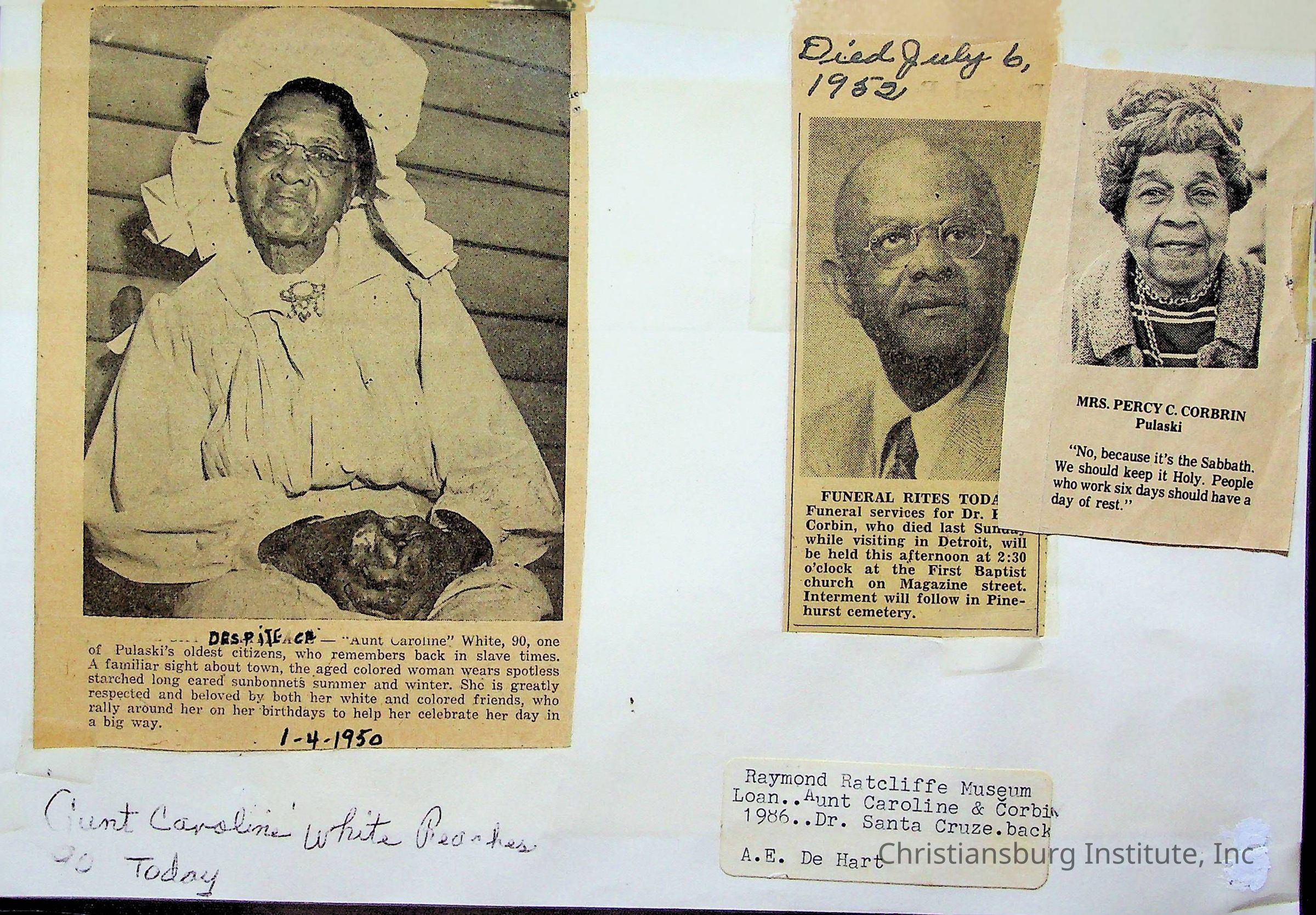 An archive of newspaper articles from Pulaski, Virginia about notable Pulaski Black history figures, dated 1921-1990.Collection