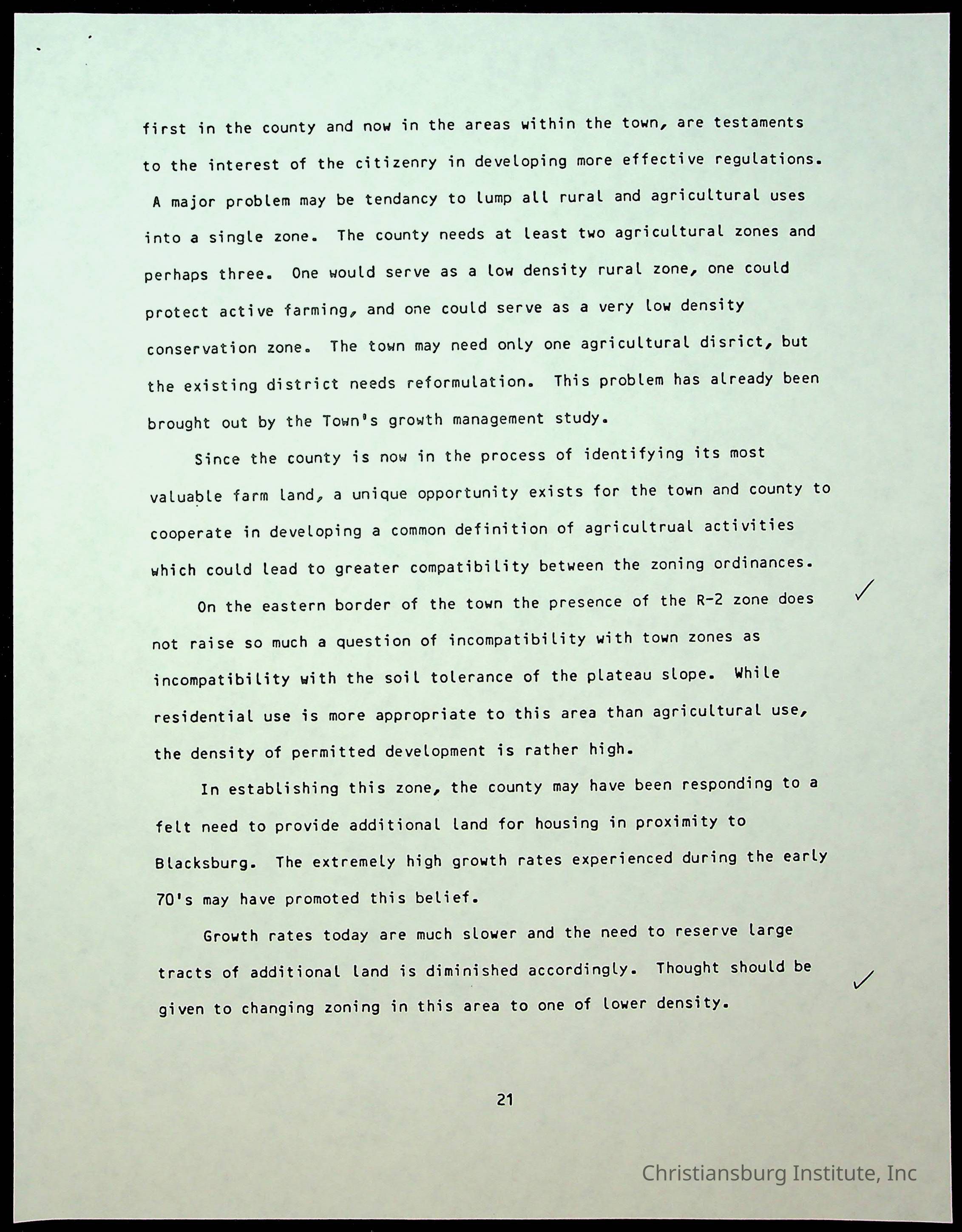 A copy of the Study of Land Potentials Along the Corporate Limits of the Town of Blacks-Montgomery dated June 20th, 1983.Collection