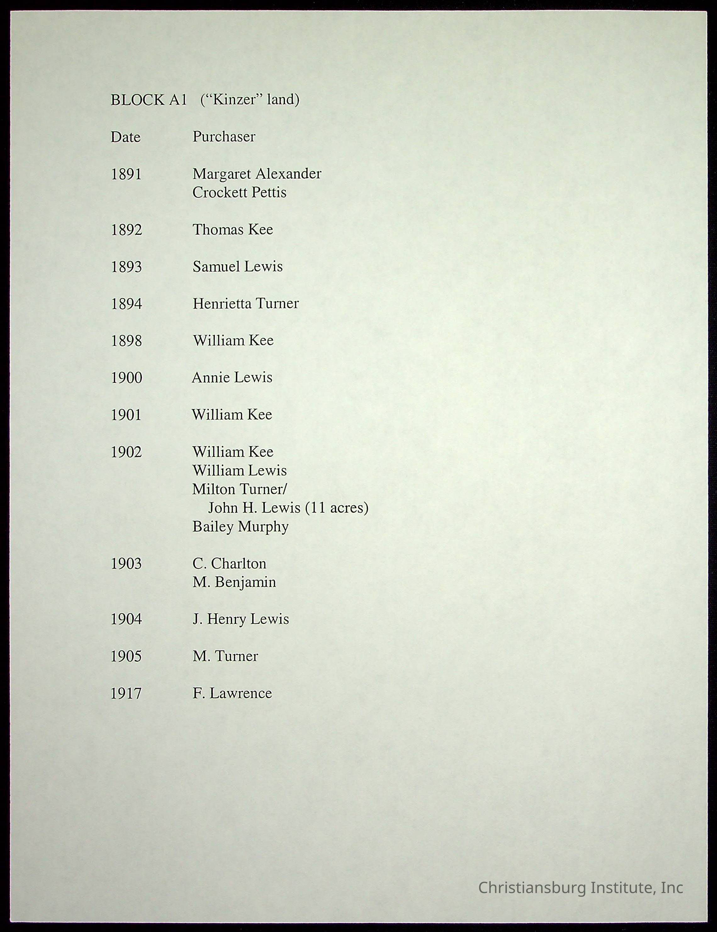 A folder of research materials collected by Radford University professor, Dr Linda Killen. This folder is titled 'Black Land' and includes Killen's research on the land owned by the Black population of Radford, Virginia. This research file includes plat maps and Dr. Killen's writings.