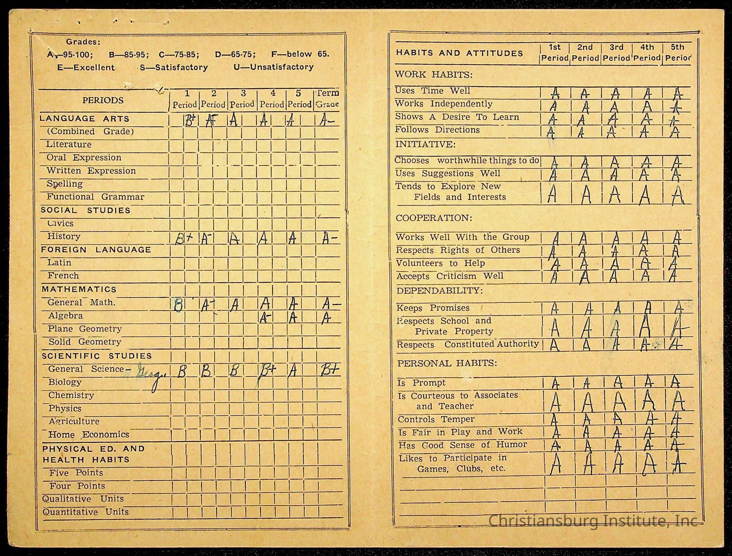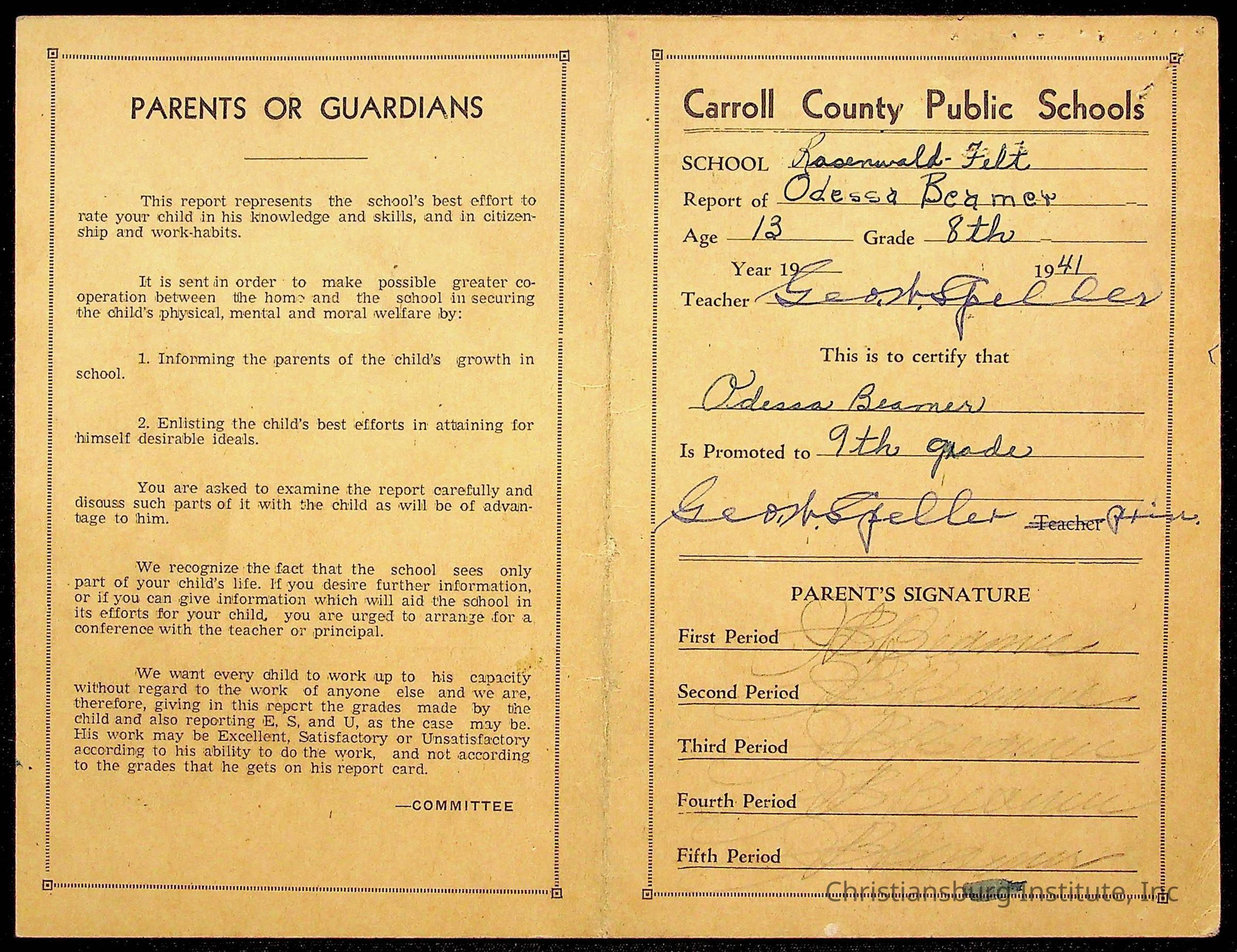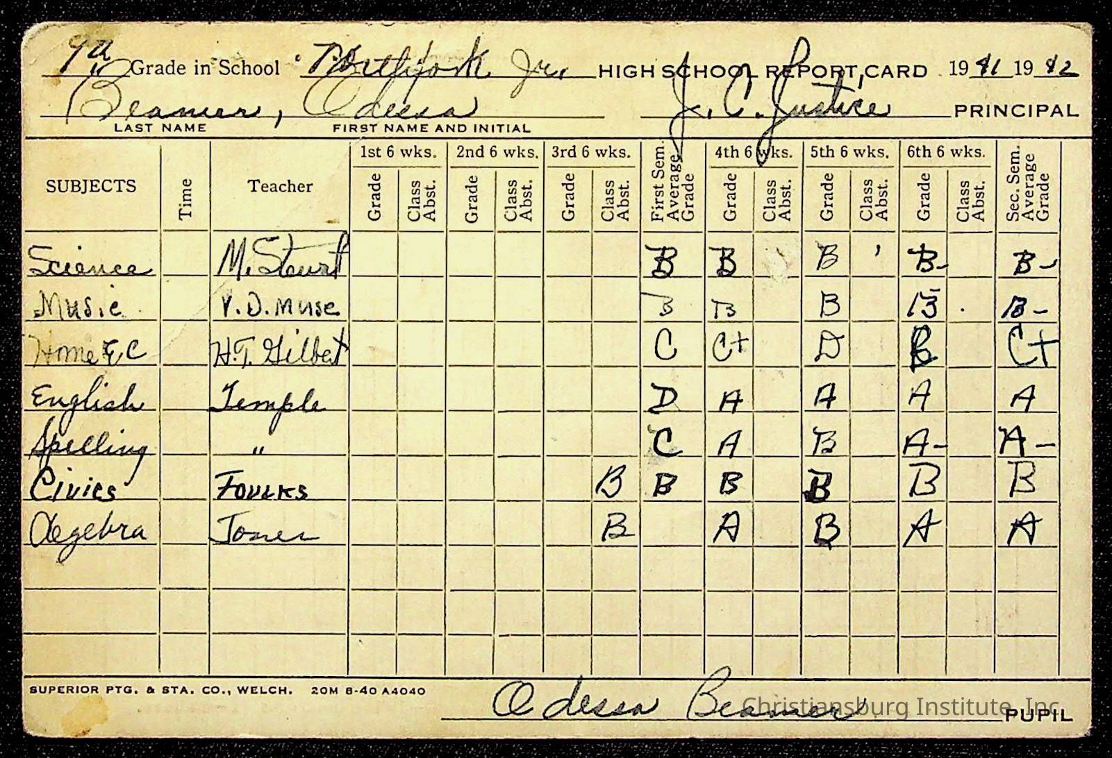 The student file for the Christiansburg Institute student, Adissa Beamer circa 1940s.