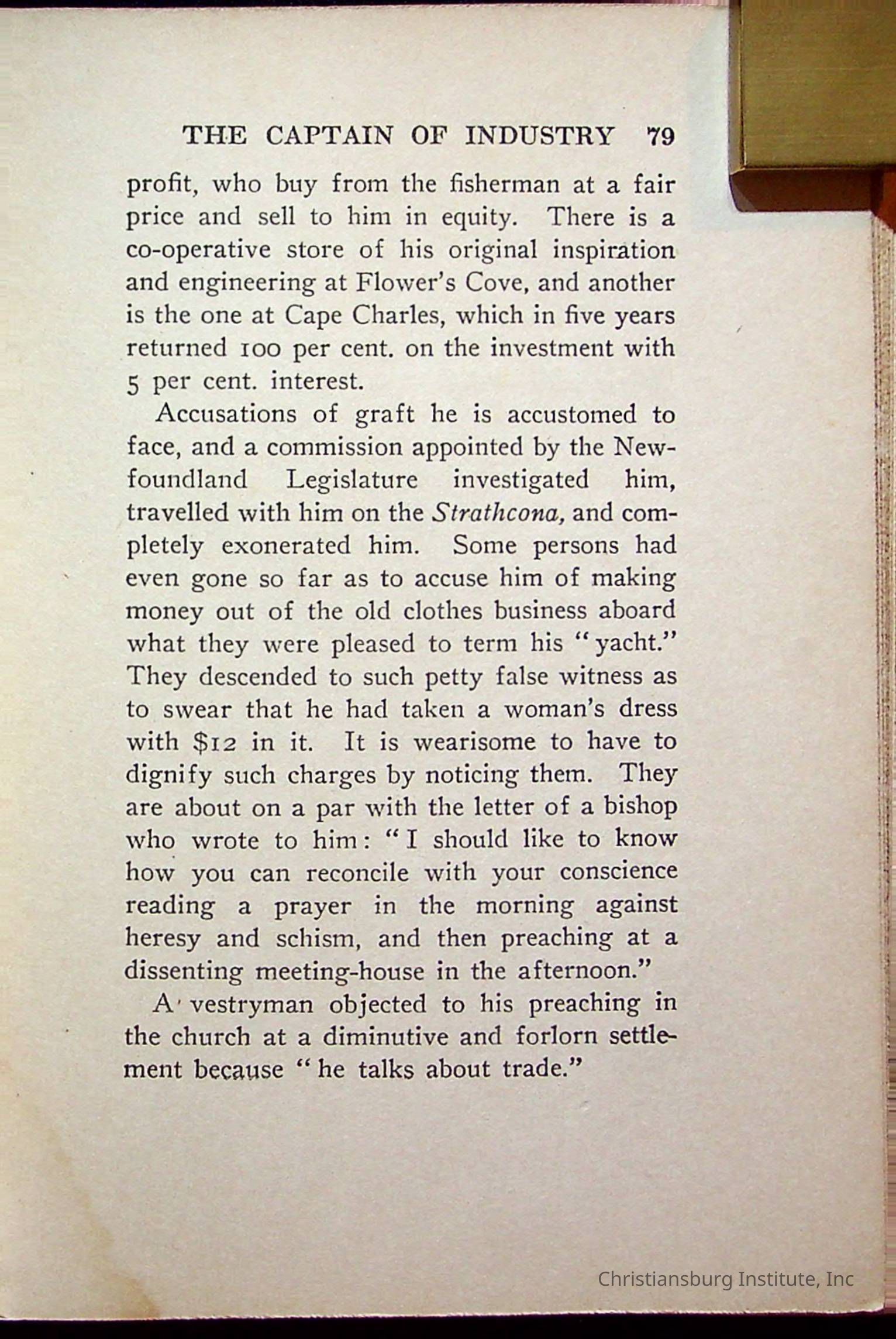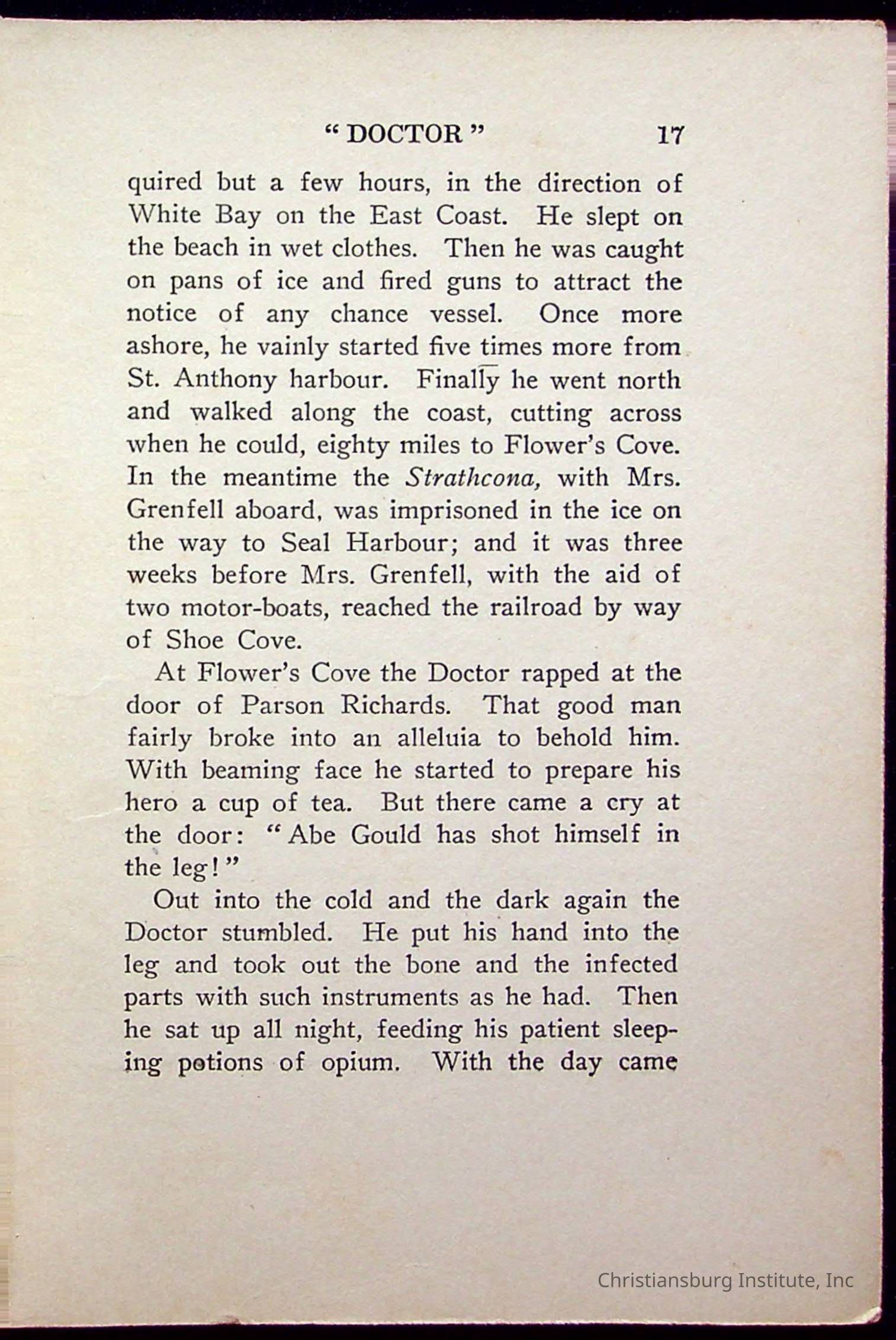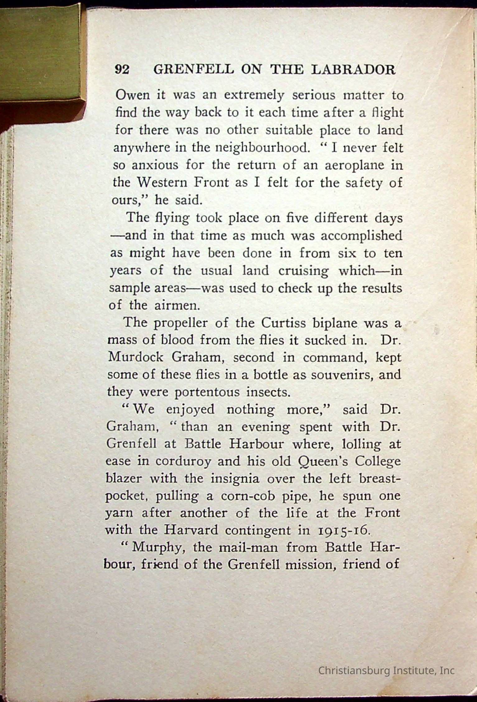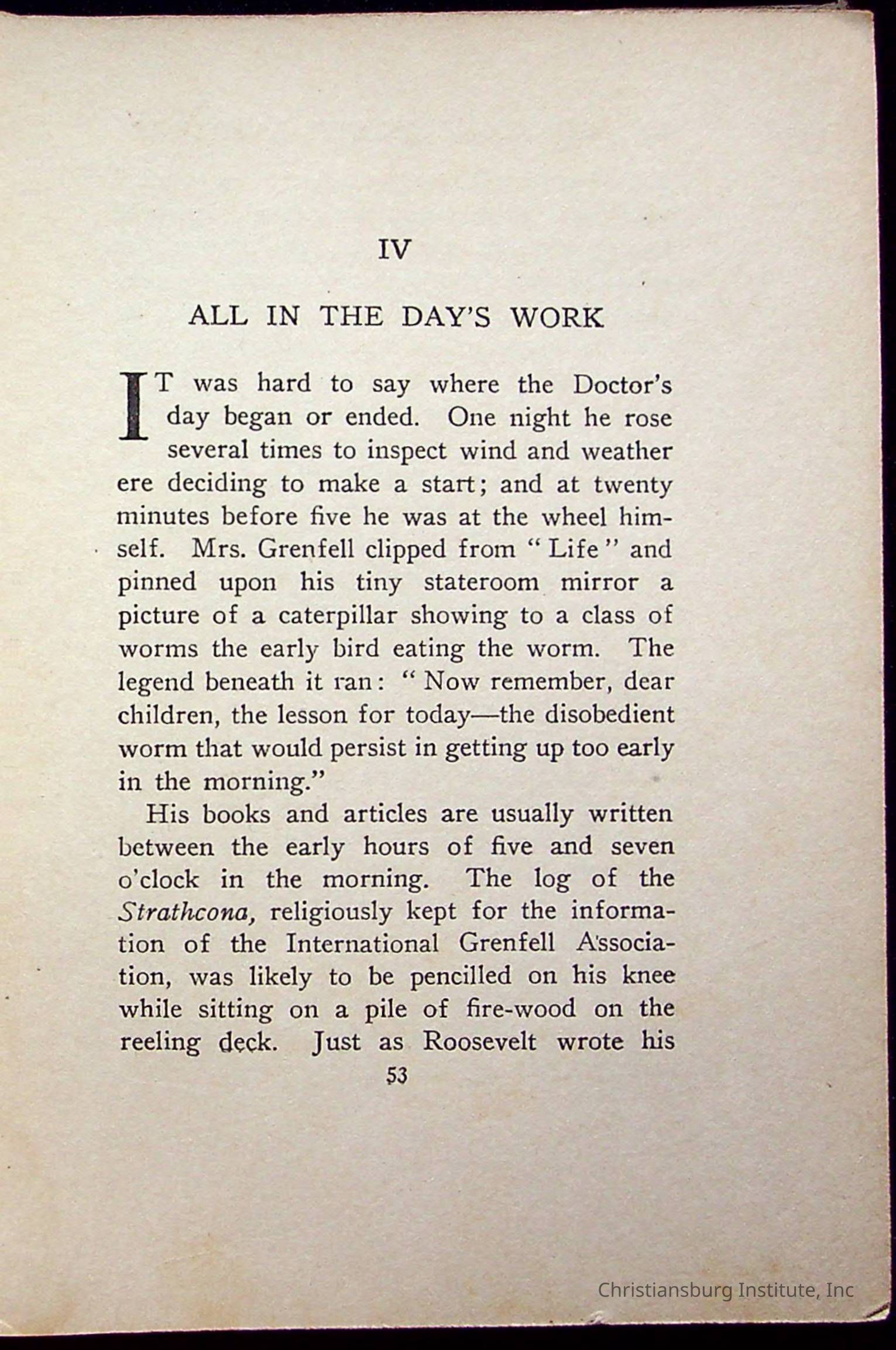"With Grenfell on The Labrador" written by Fullerton L. Waldo and published by the Fleming H. Revell Company in the year 1920. The book was in the Christiansburg Institute library.