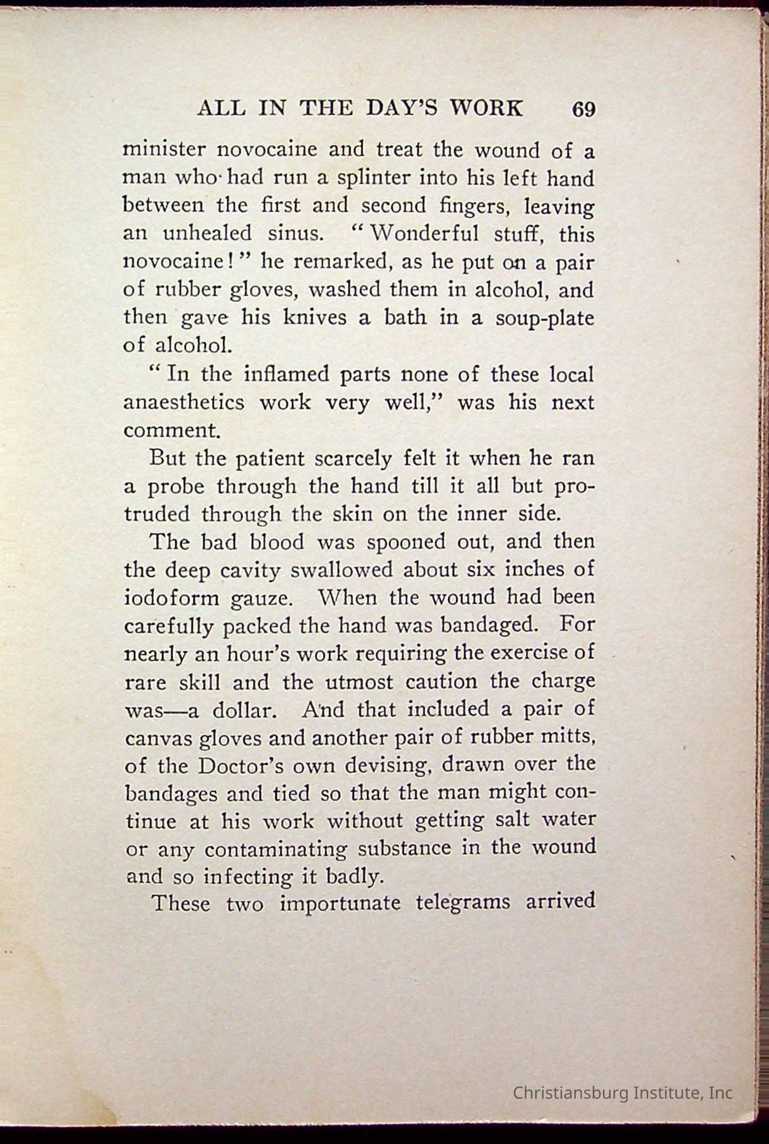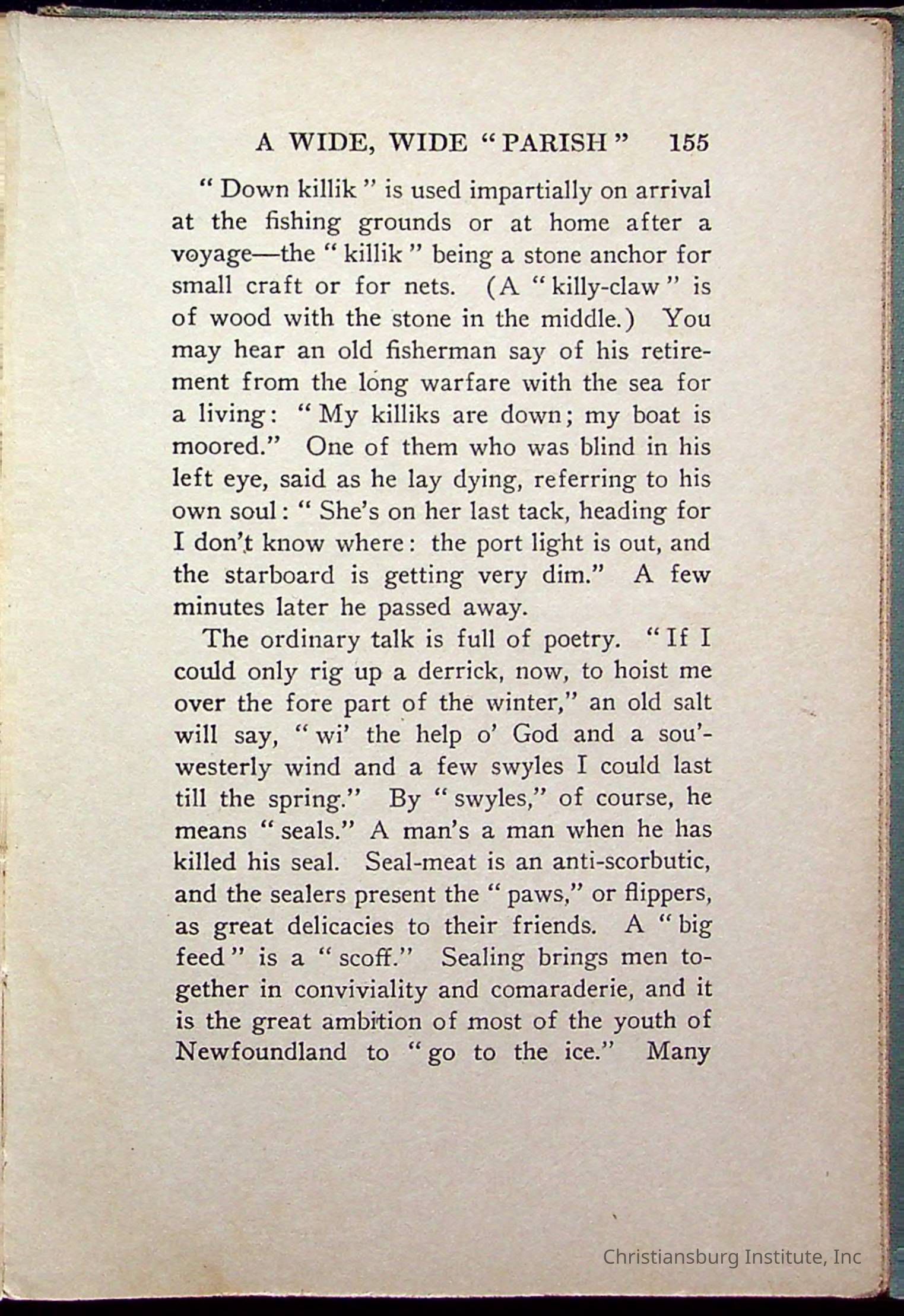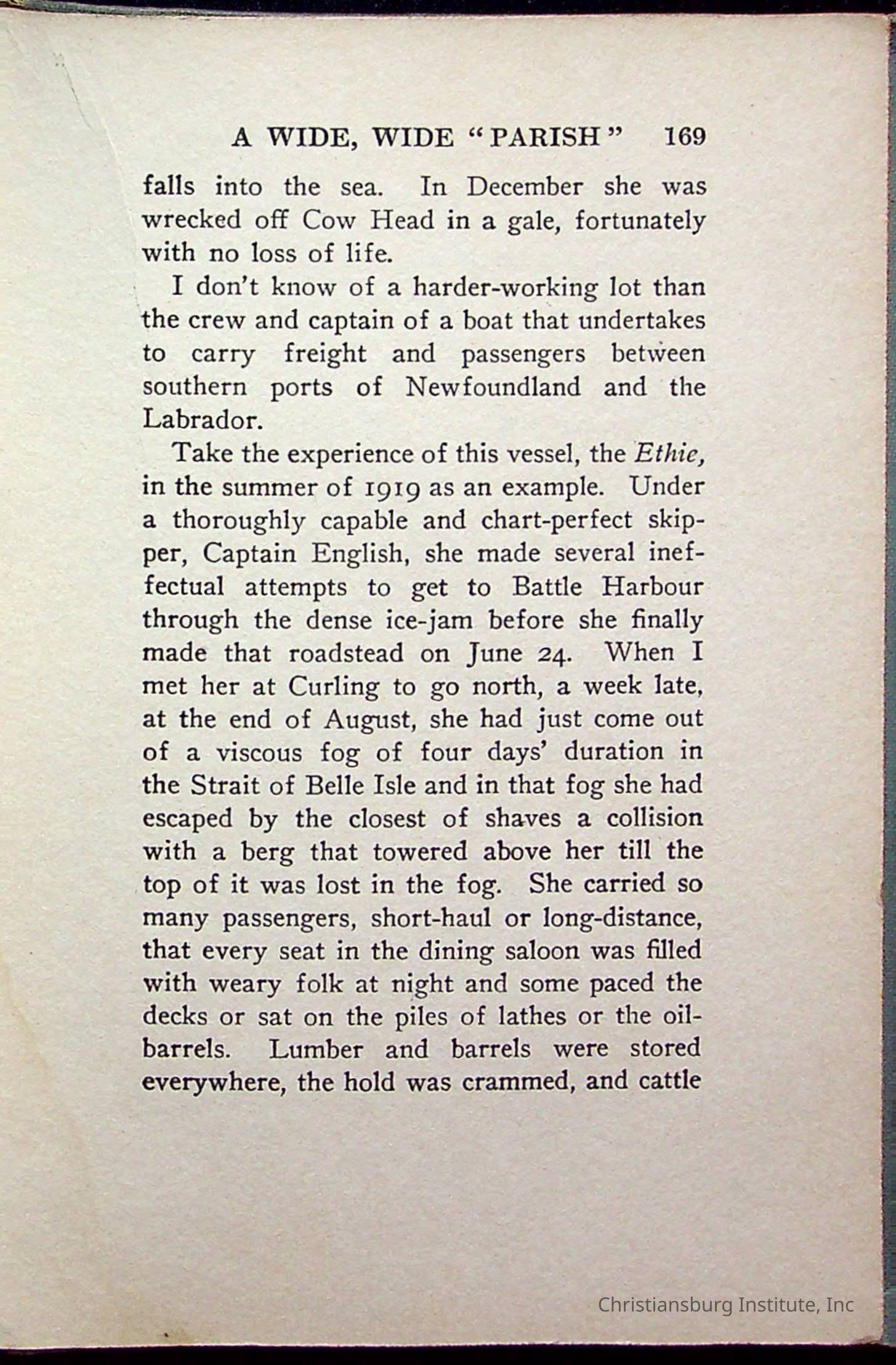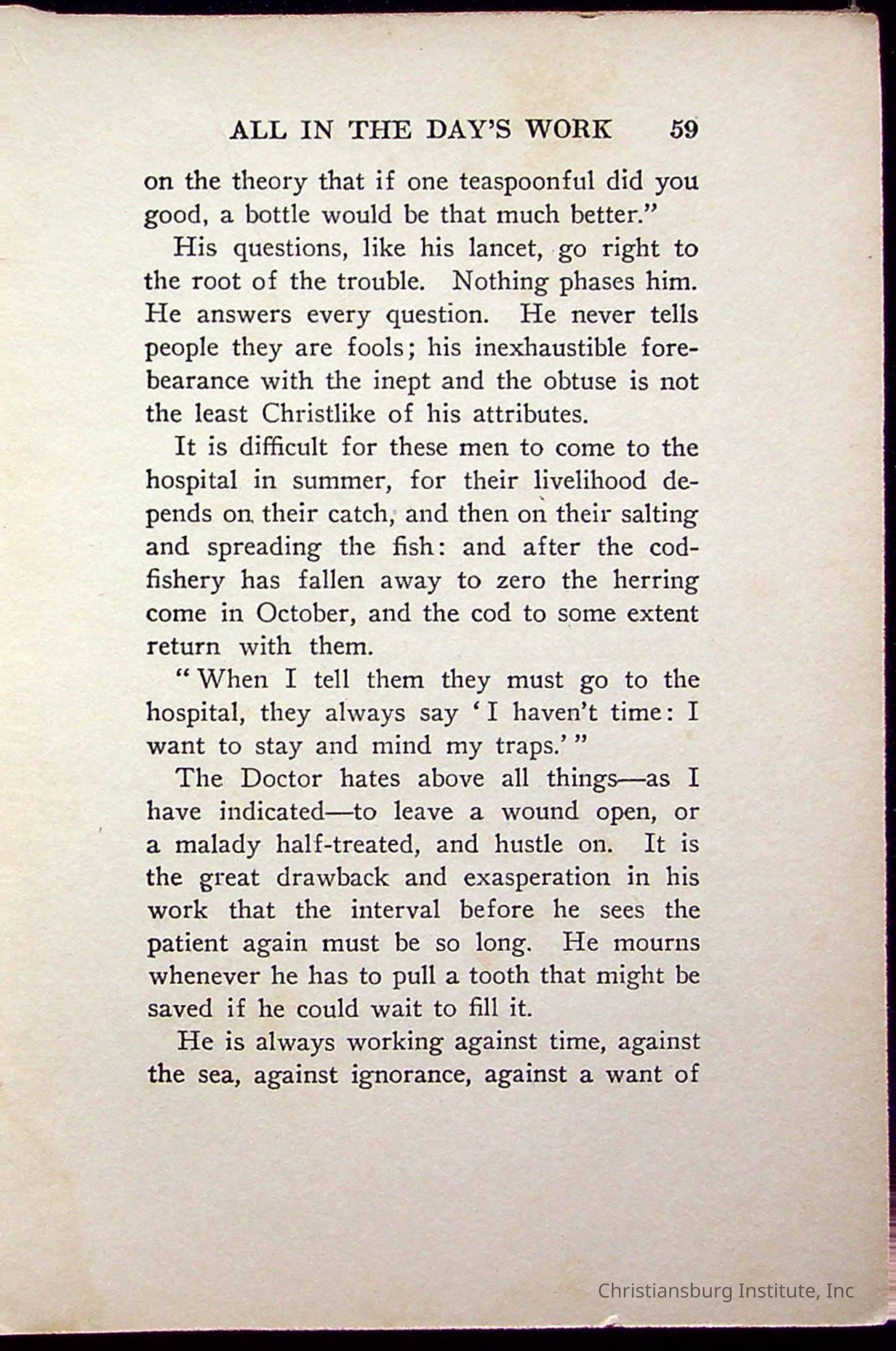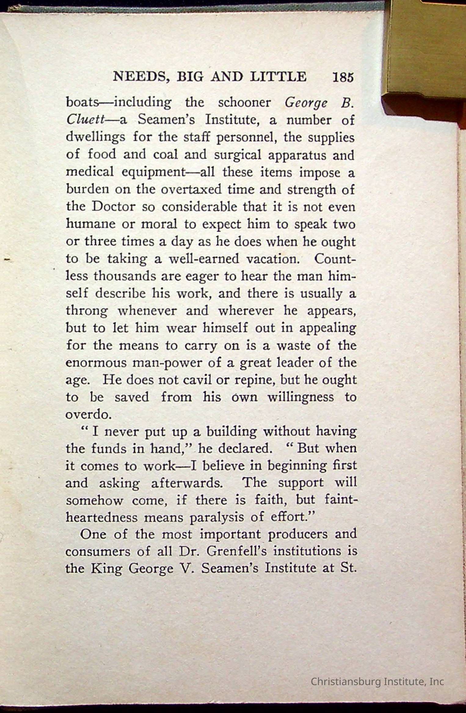 "With Grenfell on The Labrador" written by Fullerton L. Waldo and published by the Fleming H. Revell Company in the year 1920. The book was in the Christiansburg Institute library.