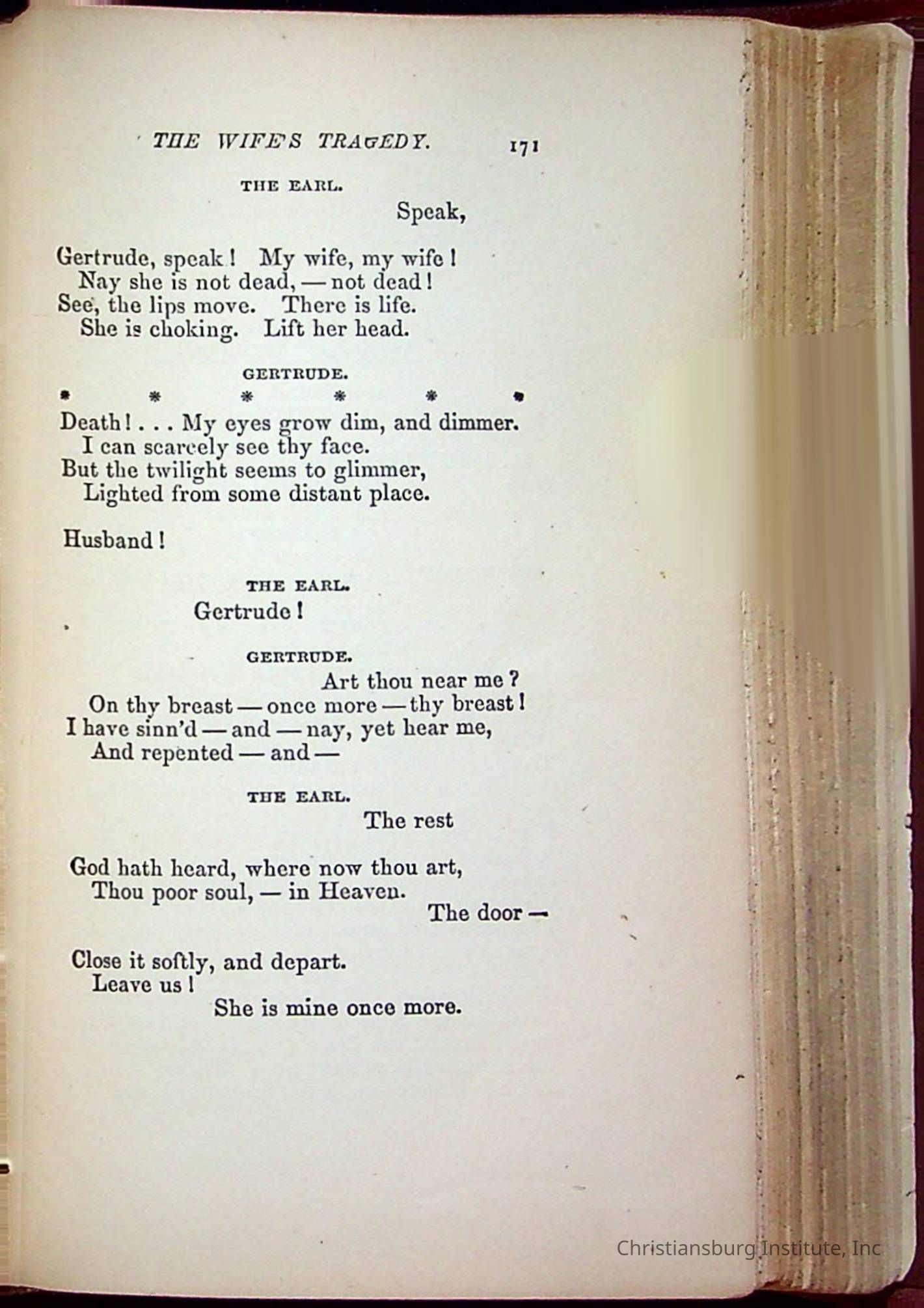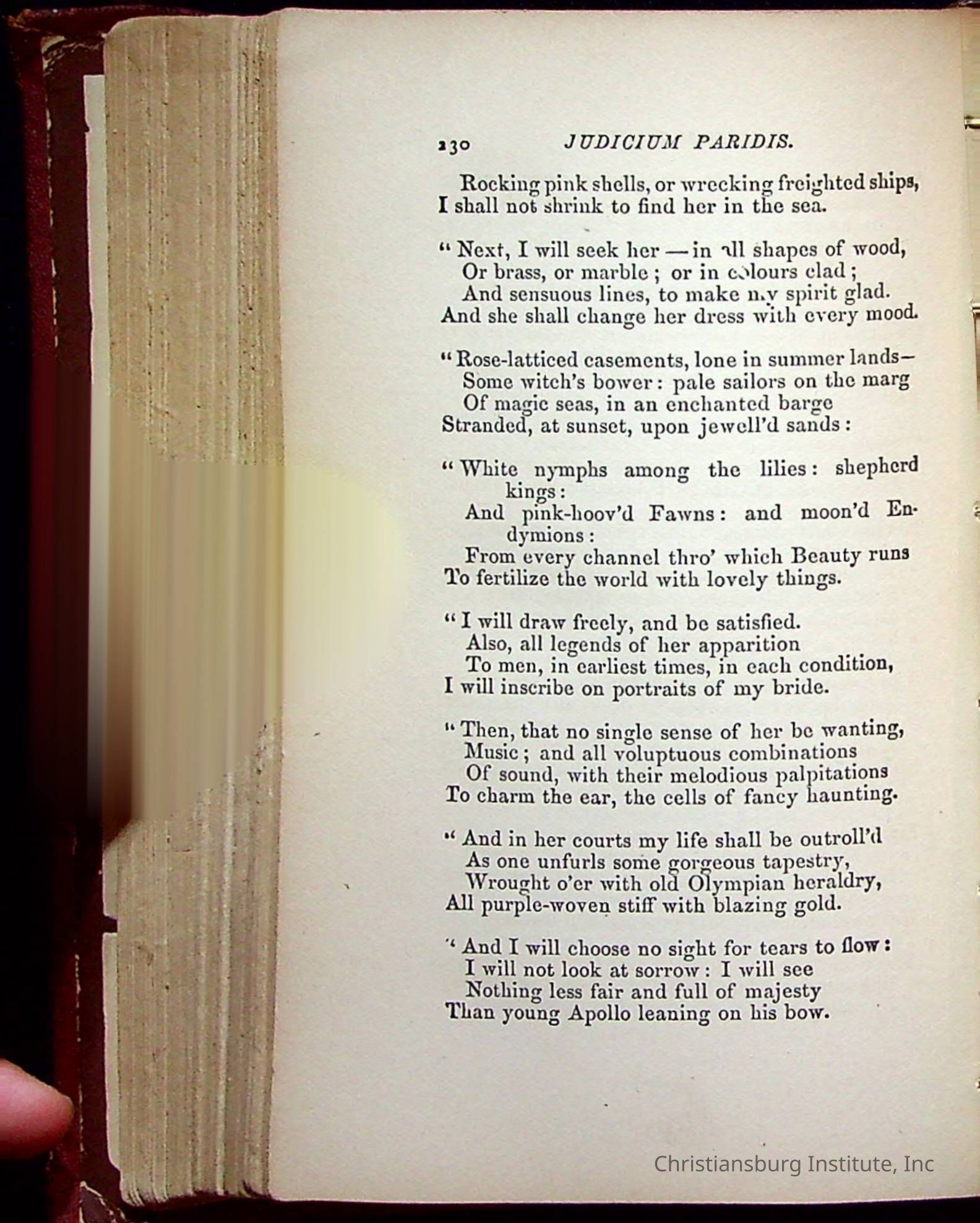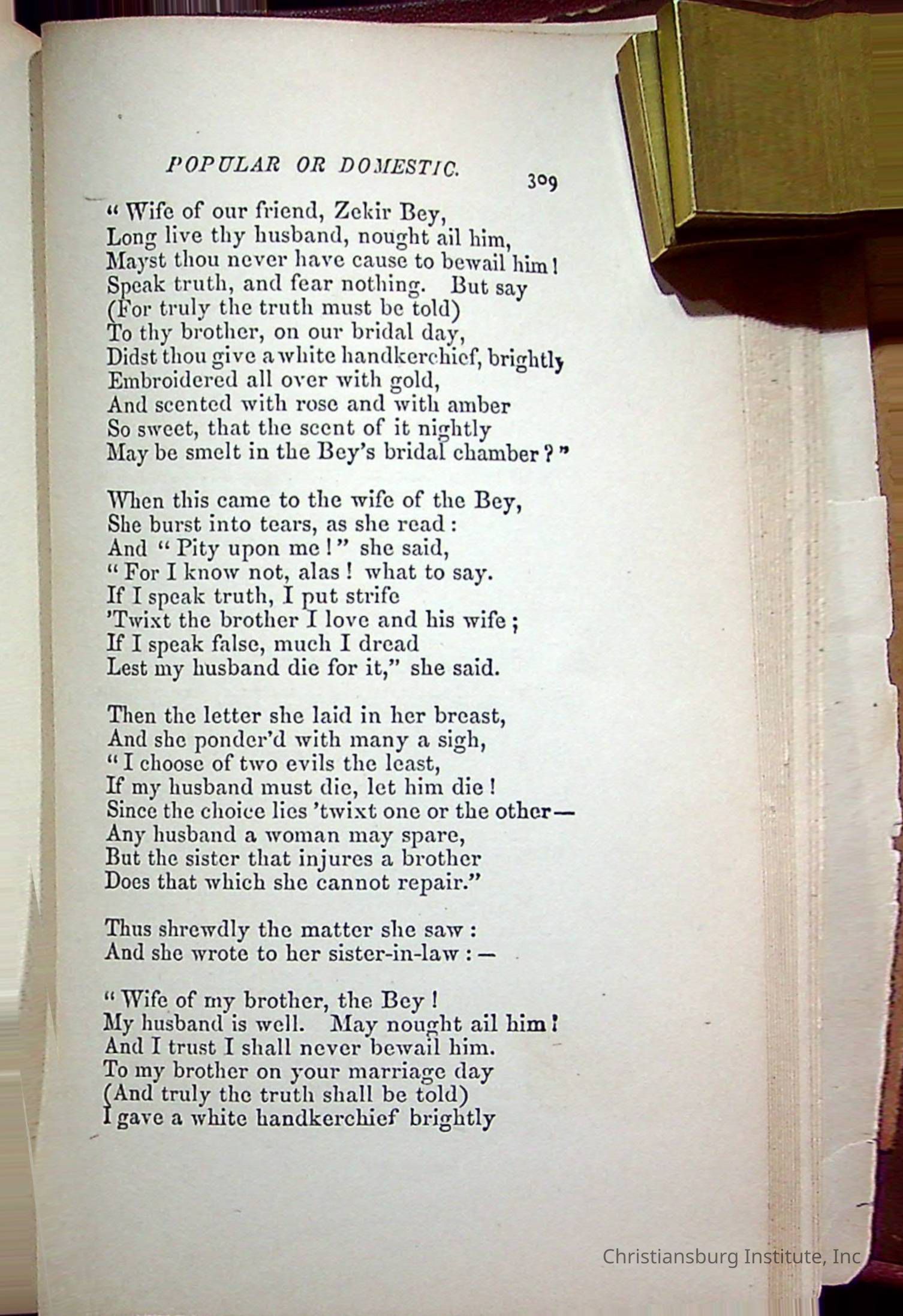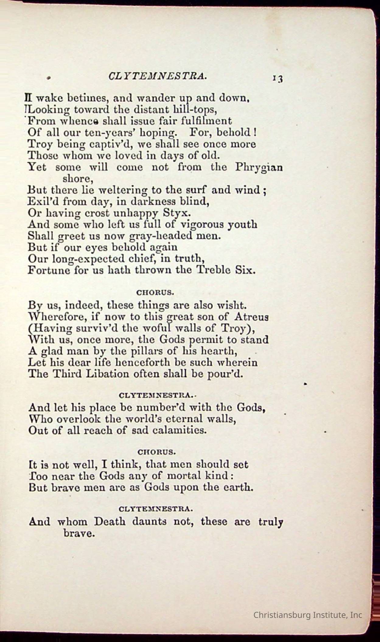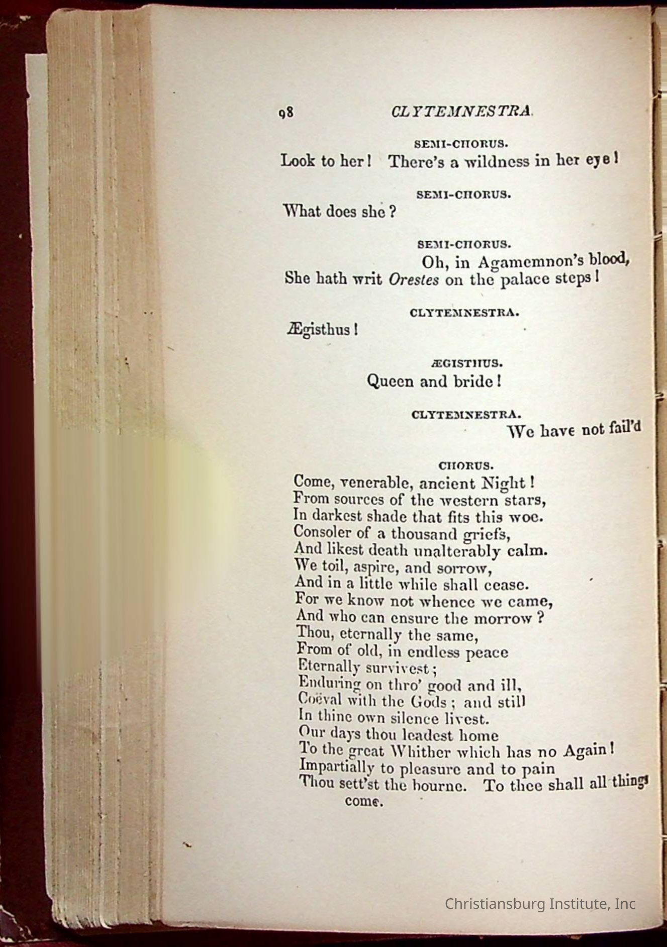 "Poems" written by Owen Meredith and published by James R. Osgood and Company in the year 1875. This book was in the Christiansburg Institute library.