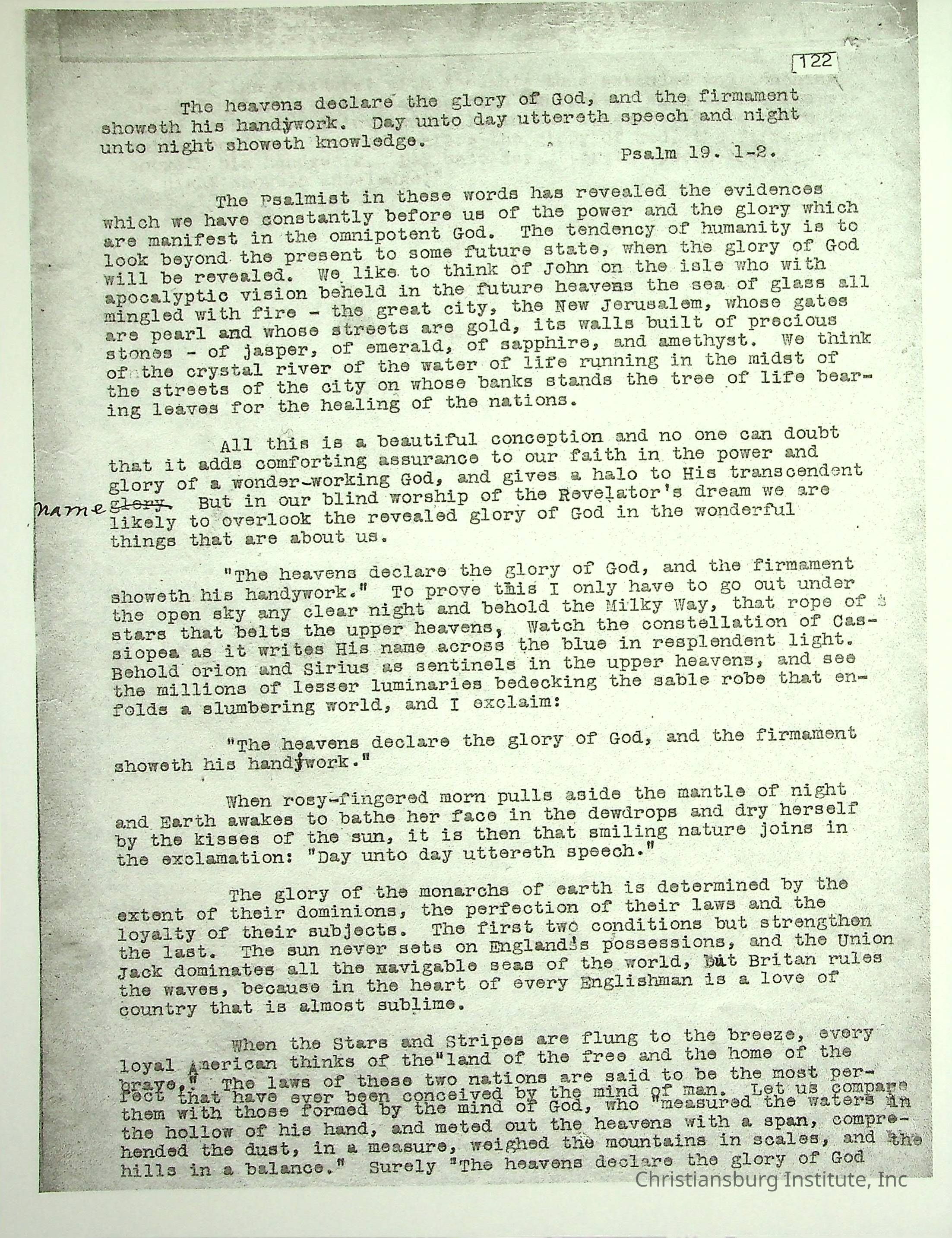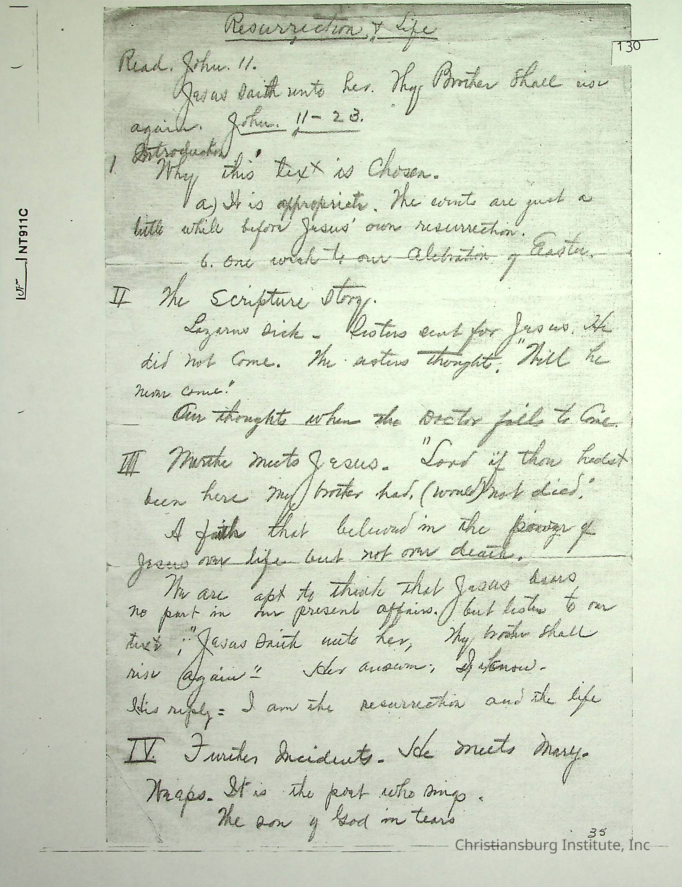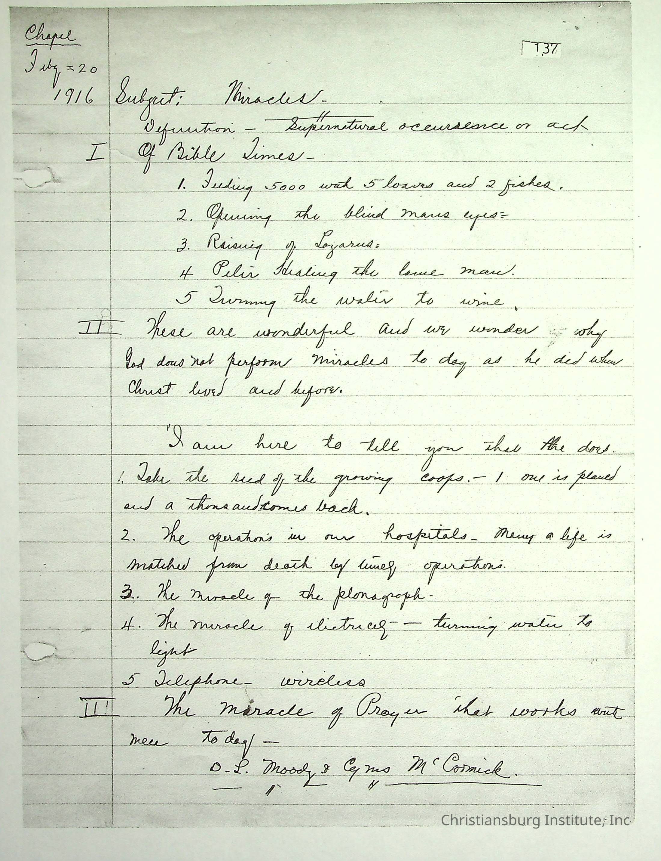 Bible Lectures, Edgar A. Long, 1915 (photocopy)Scope and Content