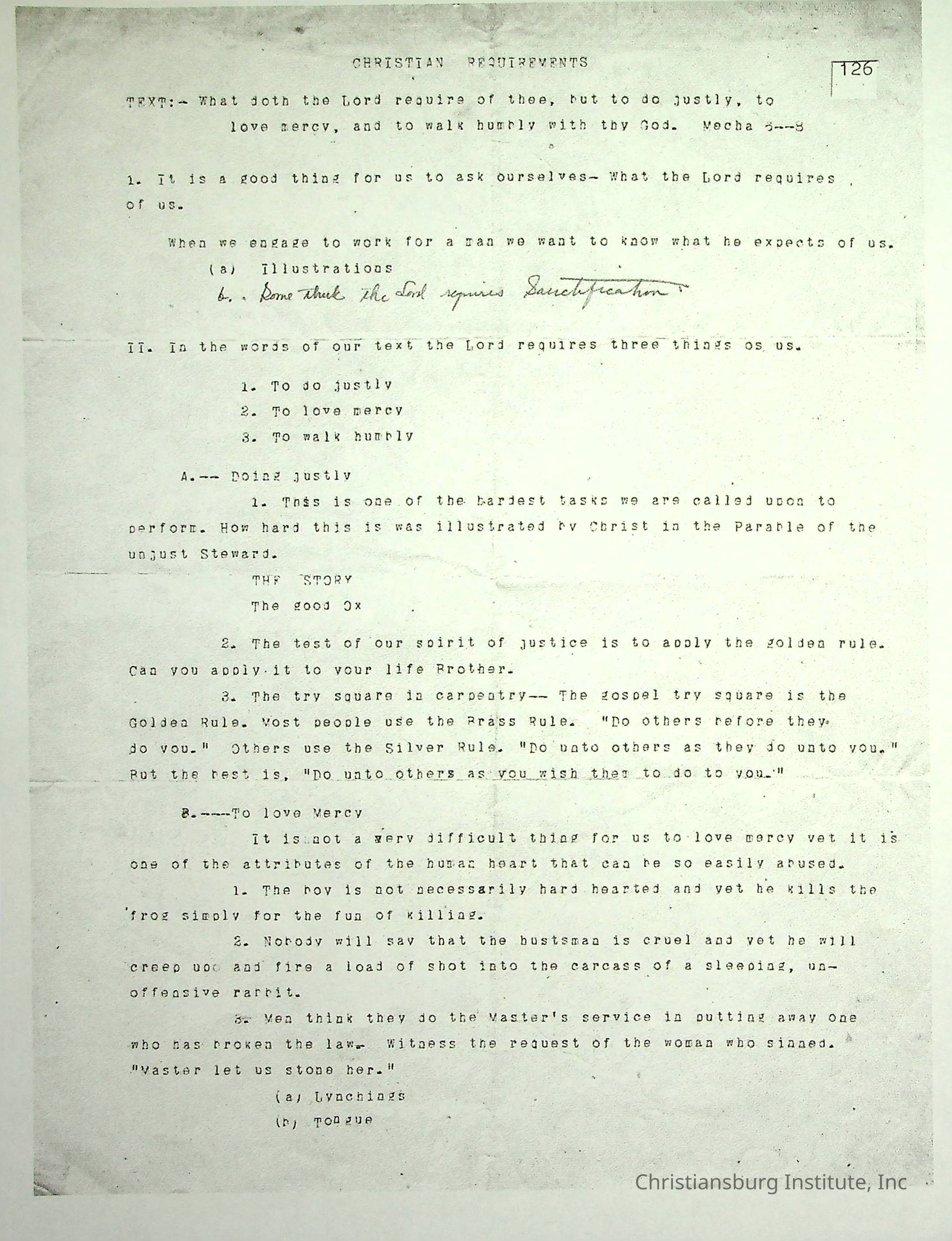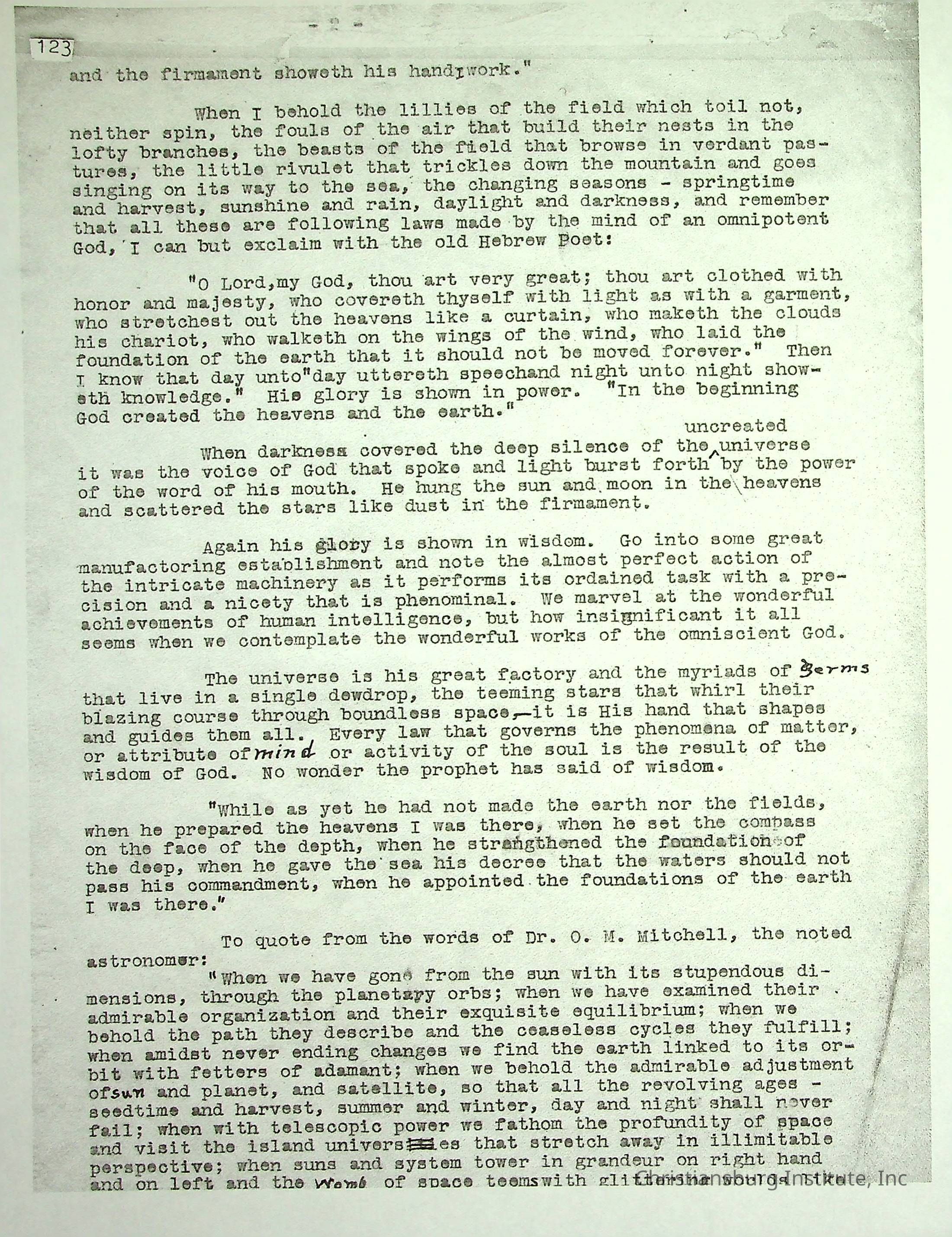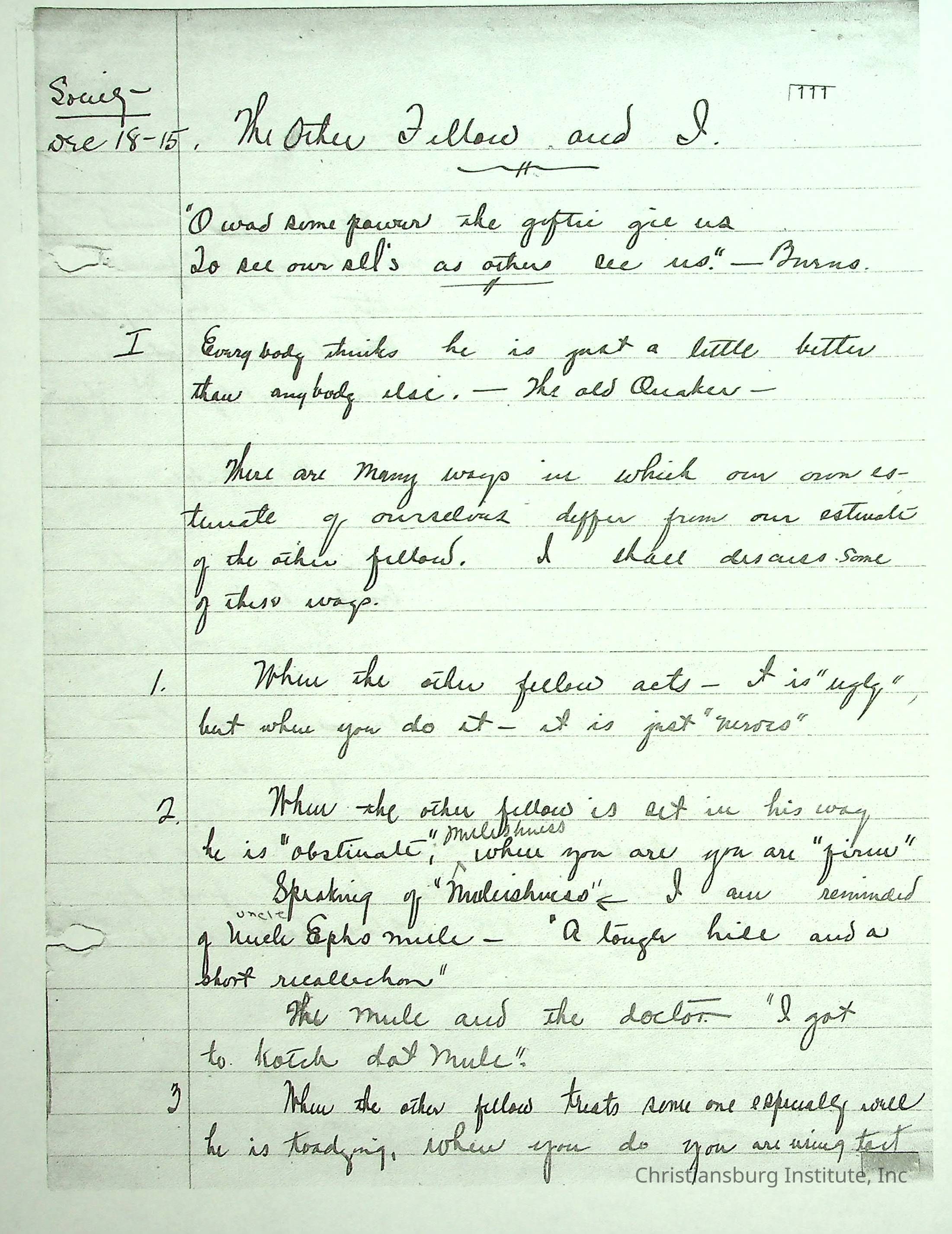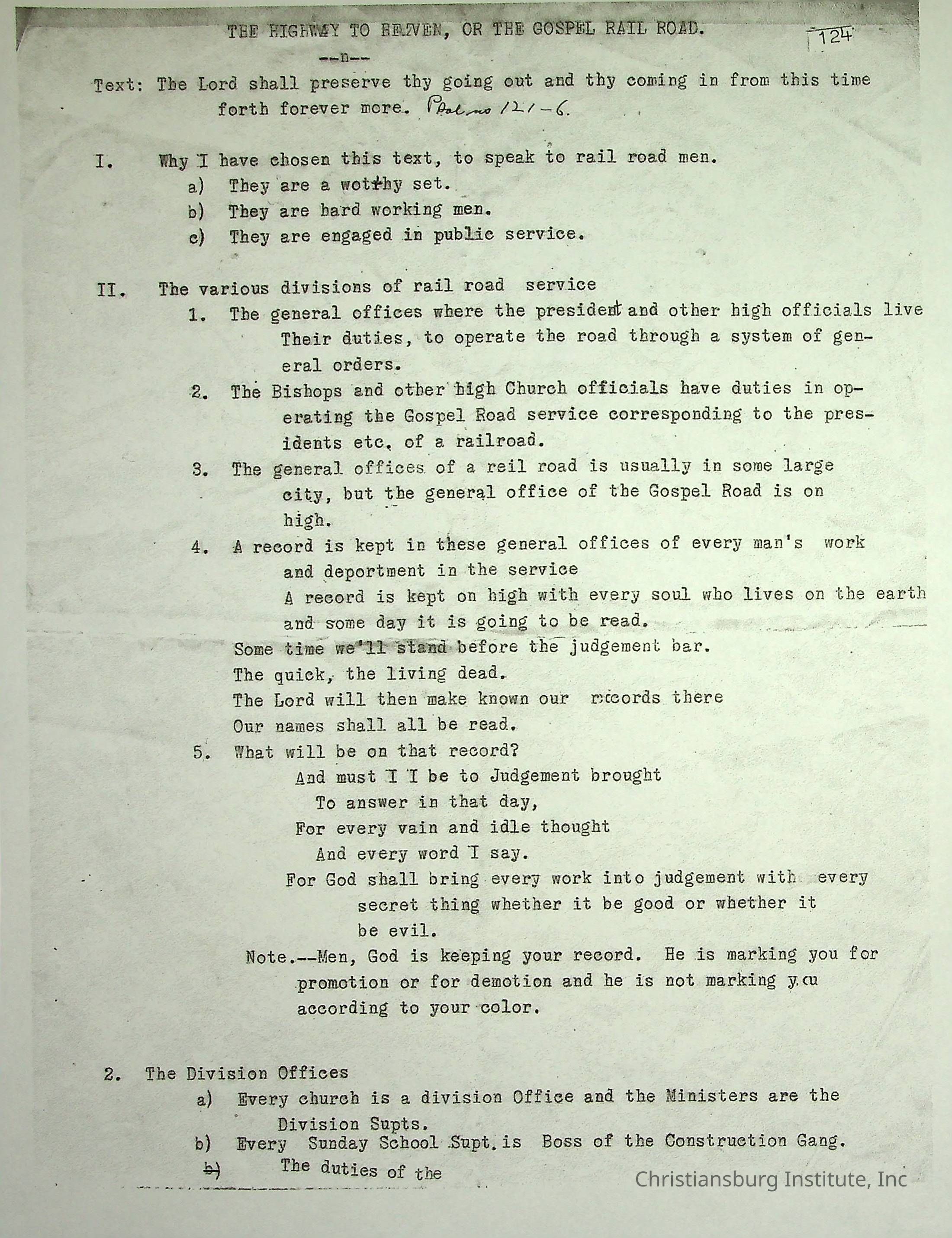 Bible Lectures, Edgar A. Long, 1915 (photocopy)Scope and Content