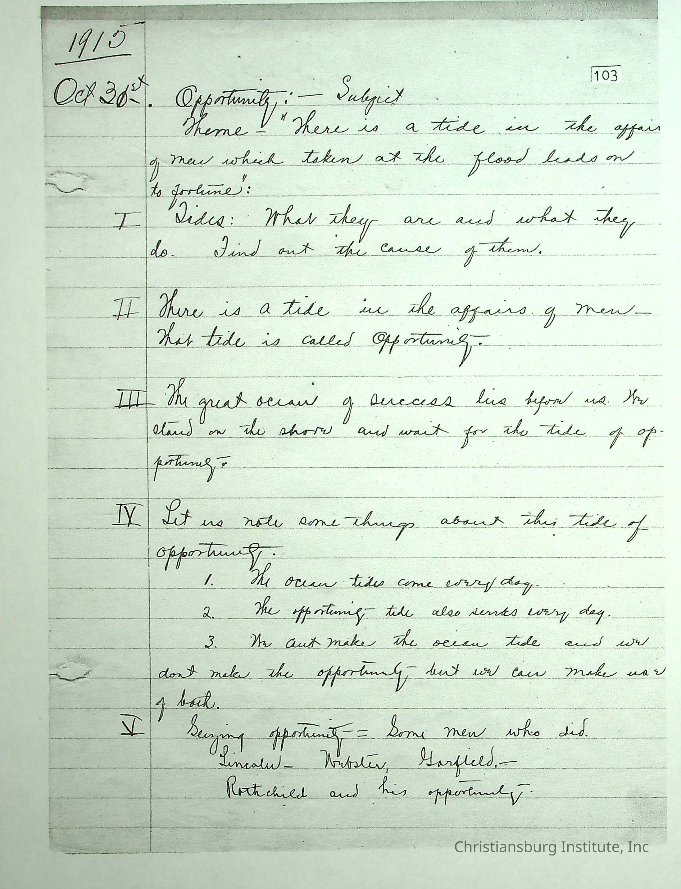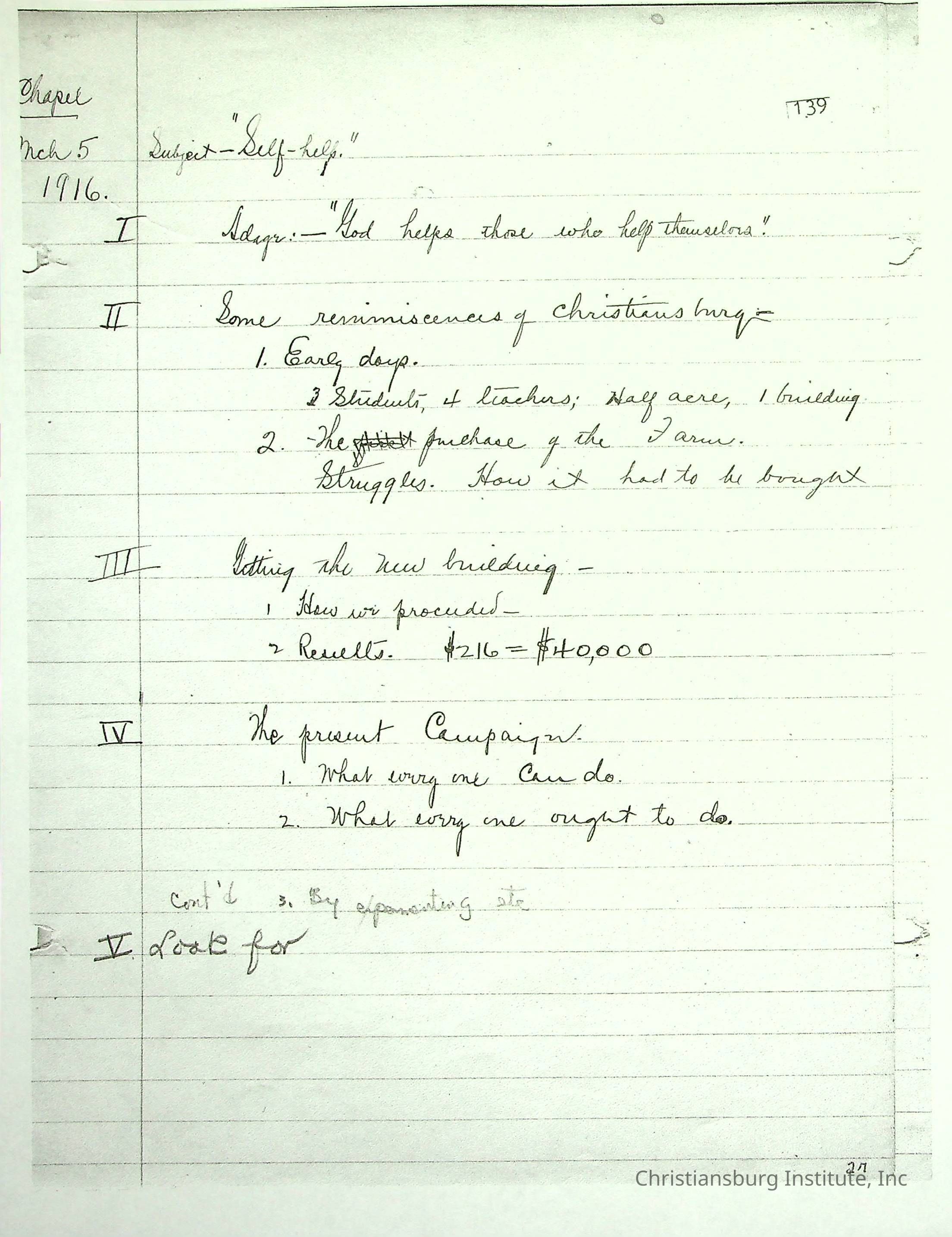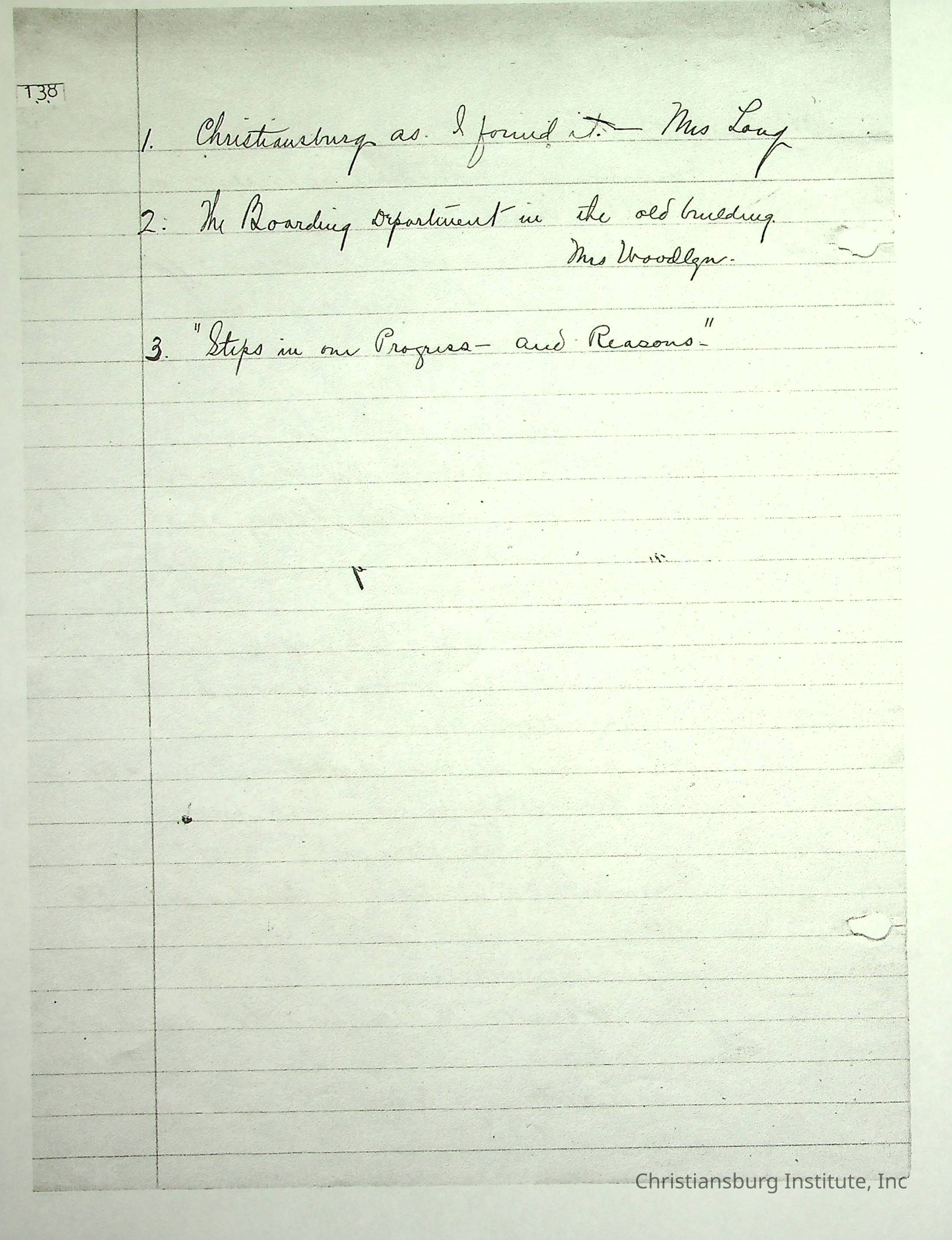 Copyright has been assigned to Christiansburg Institute Museum & Archives. For permission to publish materials created by the donor, contact CIMA@christiansburginstitute.com. Materials not created by Christiansburg Institute Museum and Archives may still be under copyright.