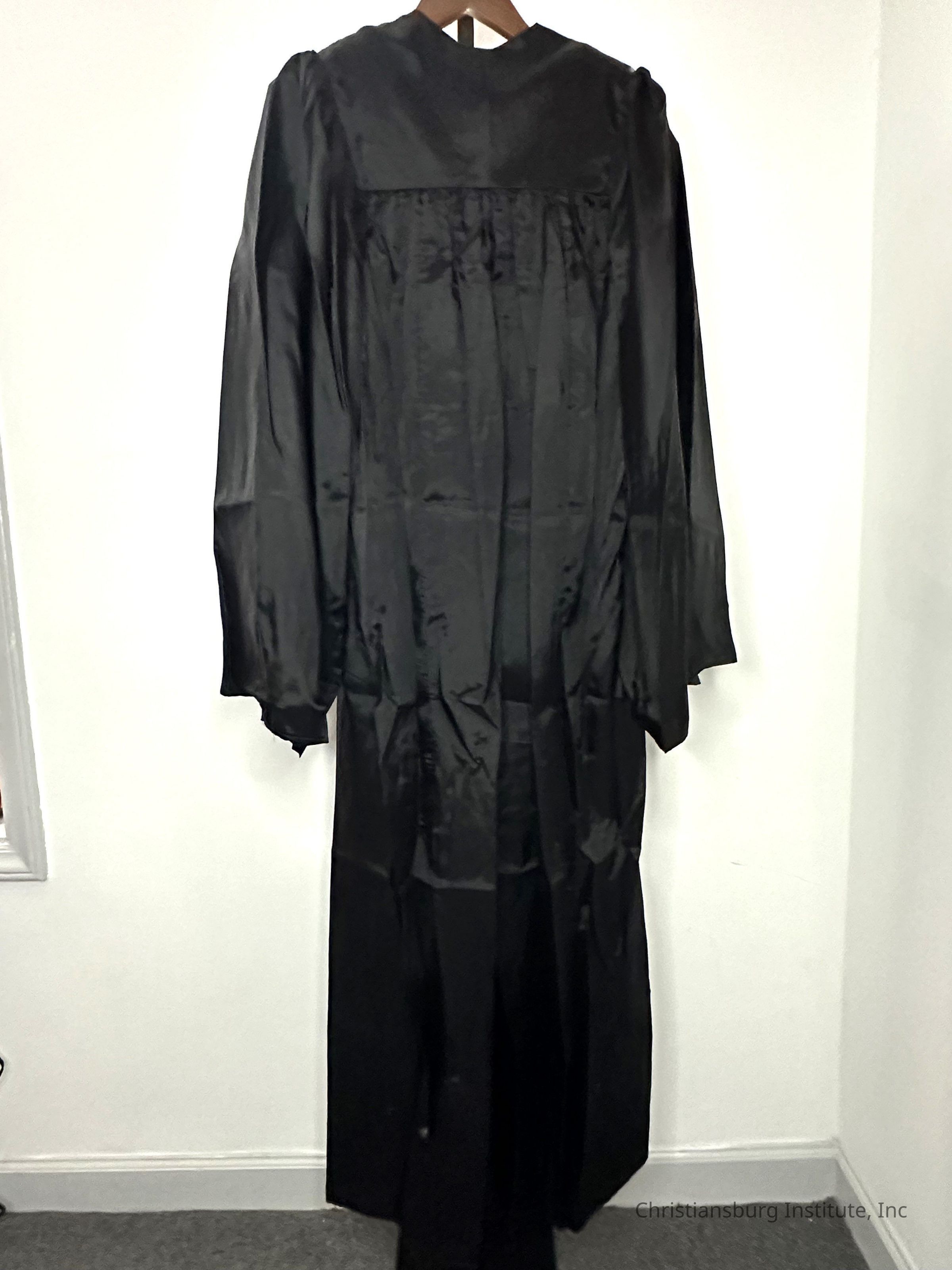 A set of black graduation cap and gown from Christiansburg Institute donated by Amanda DeHart, undated.Collection