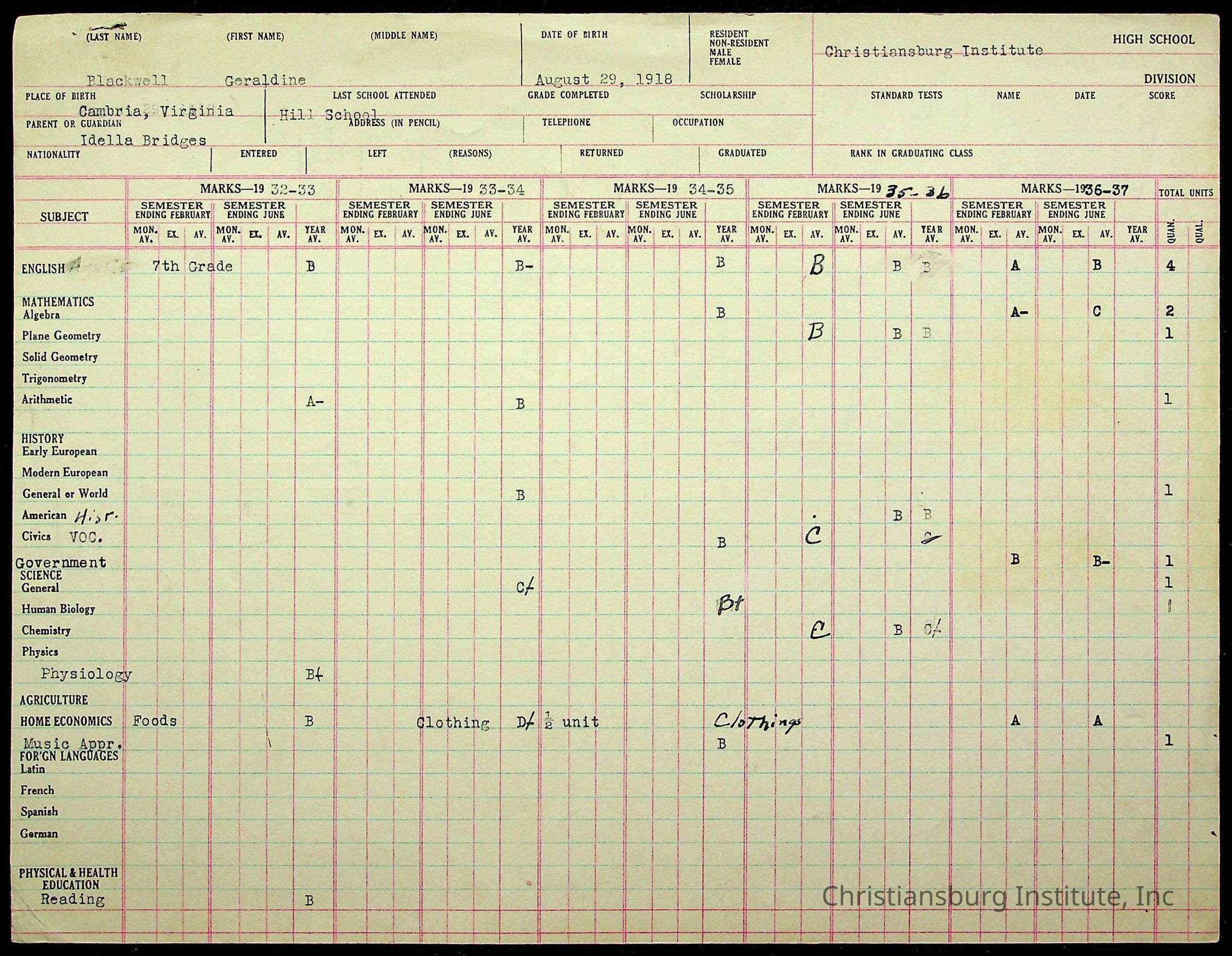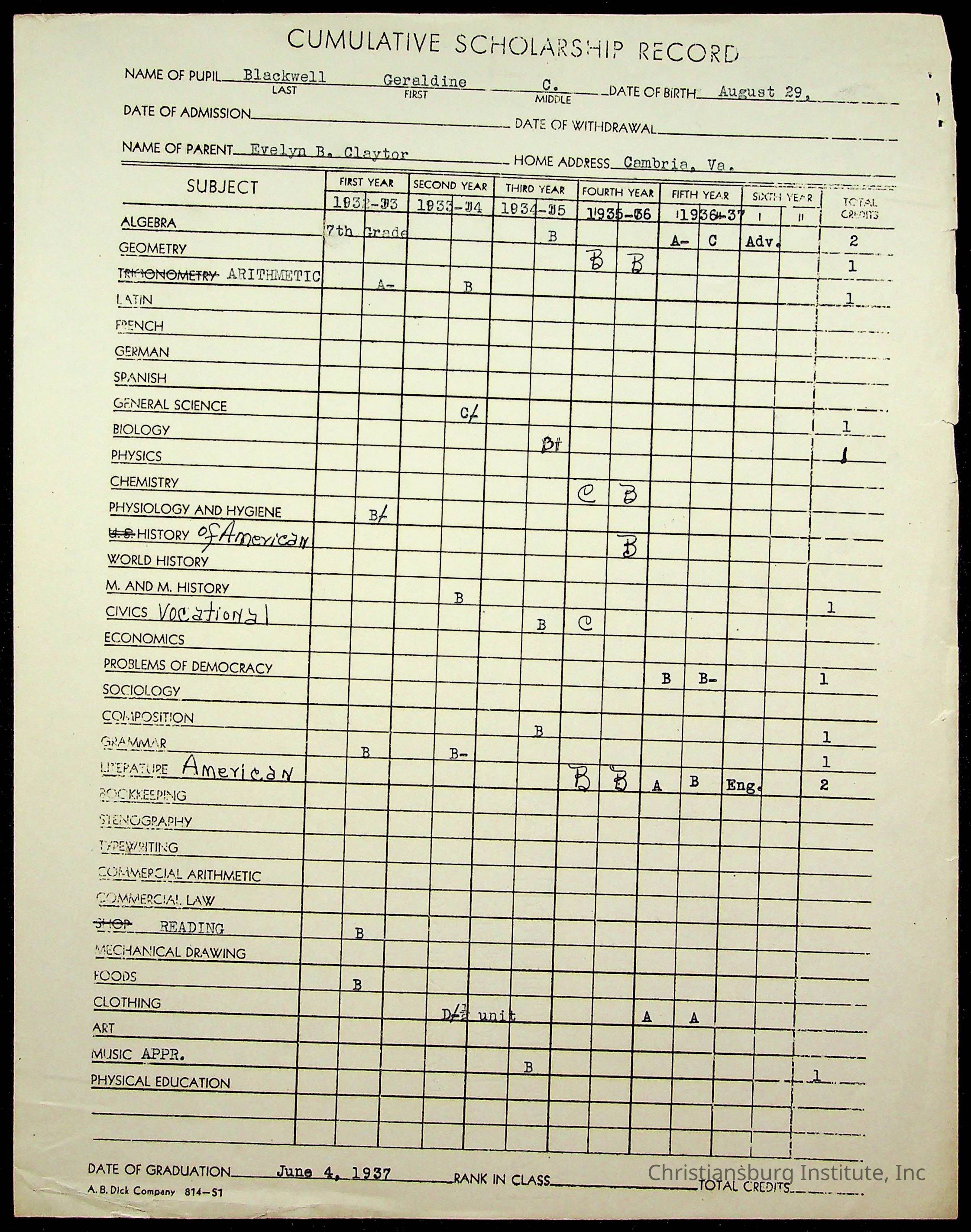 Montgomery County Public Schools, Christiansburg Institute, Blackwell, Geraldine