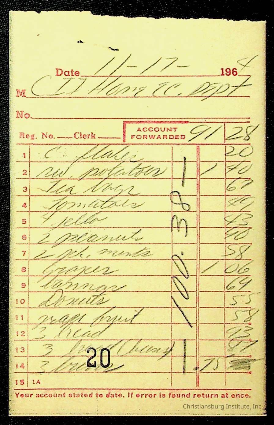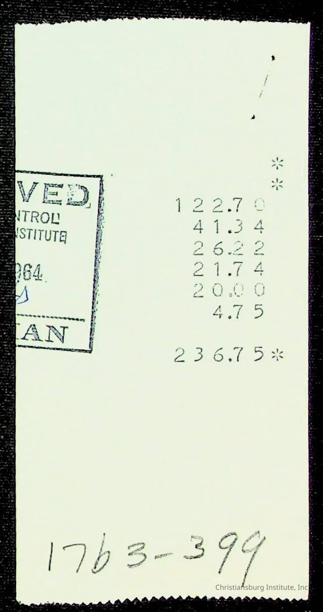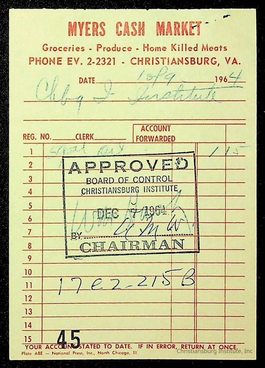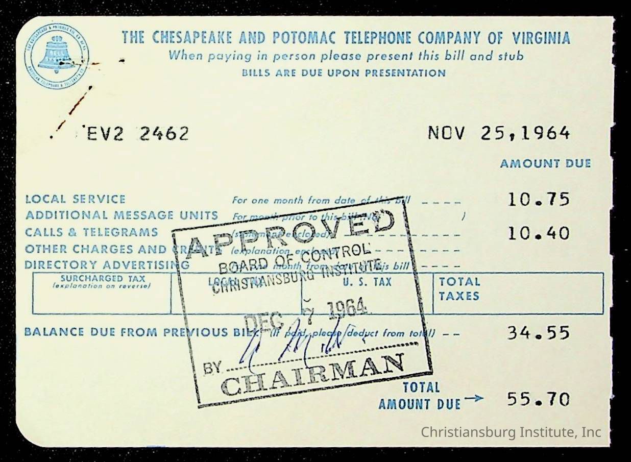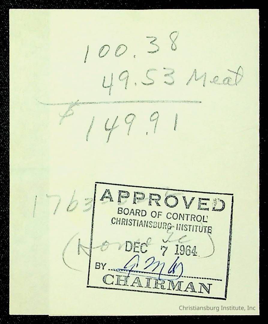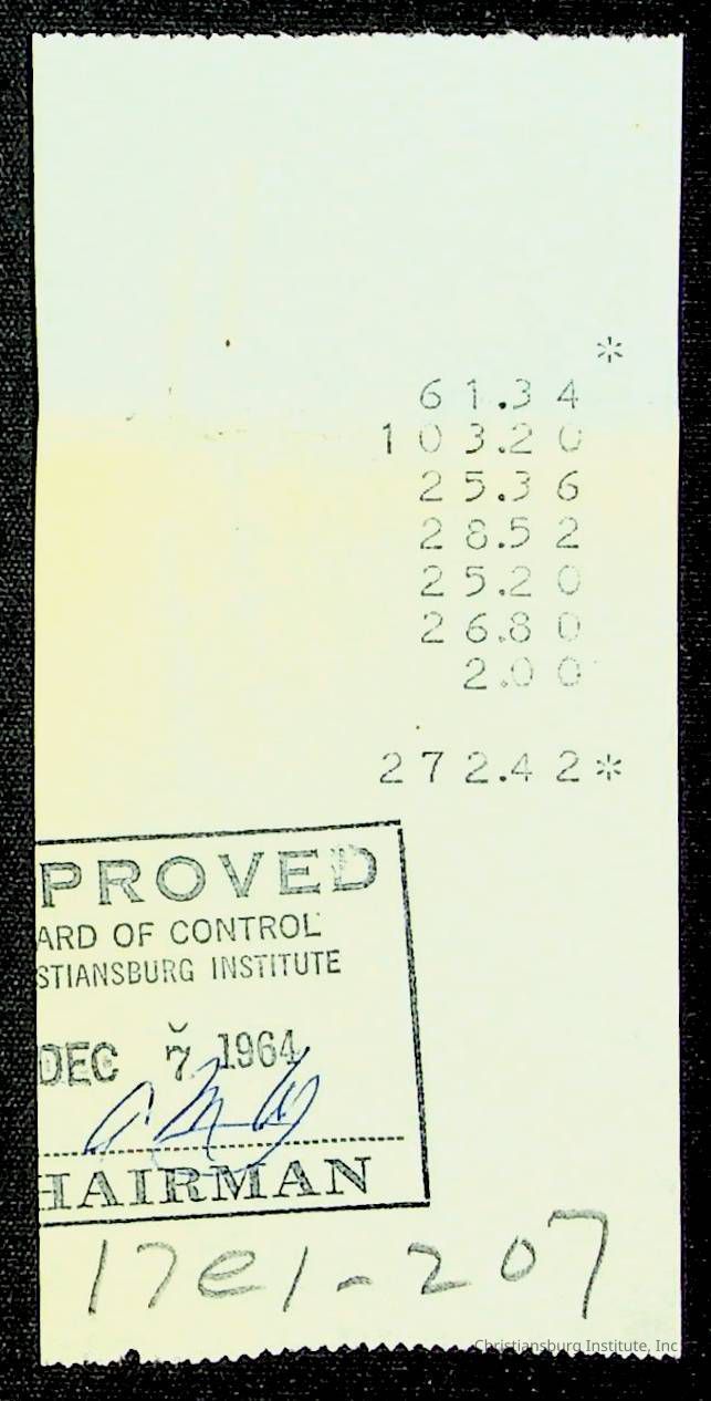An archive of financial documents relating to the Board of Control for Christiansburg Institute dated 1964-1965. Documents include; bills, statements, and receipts.