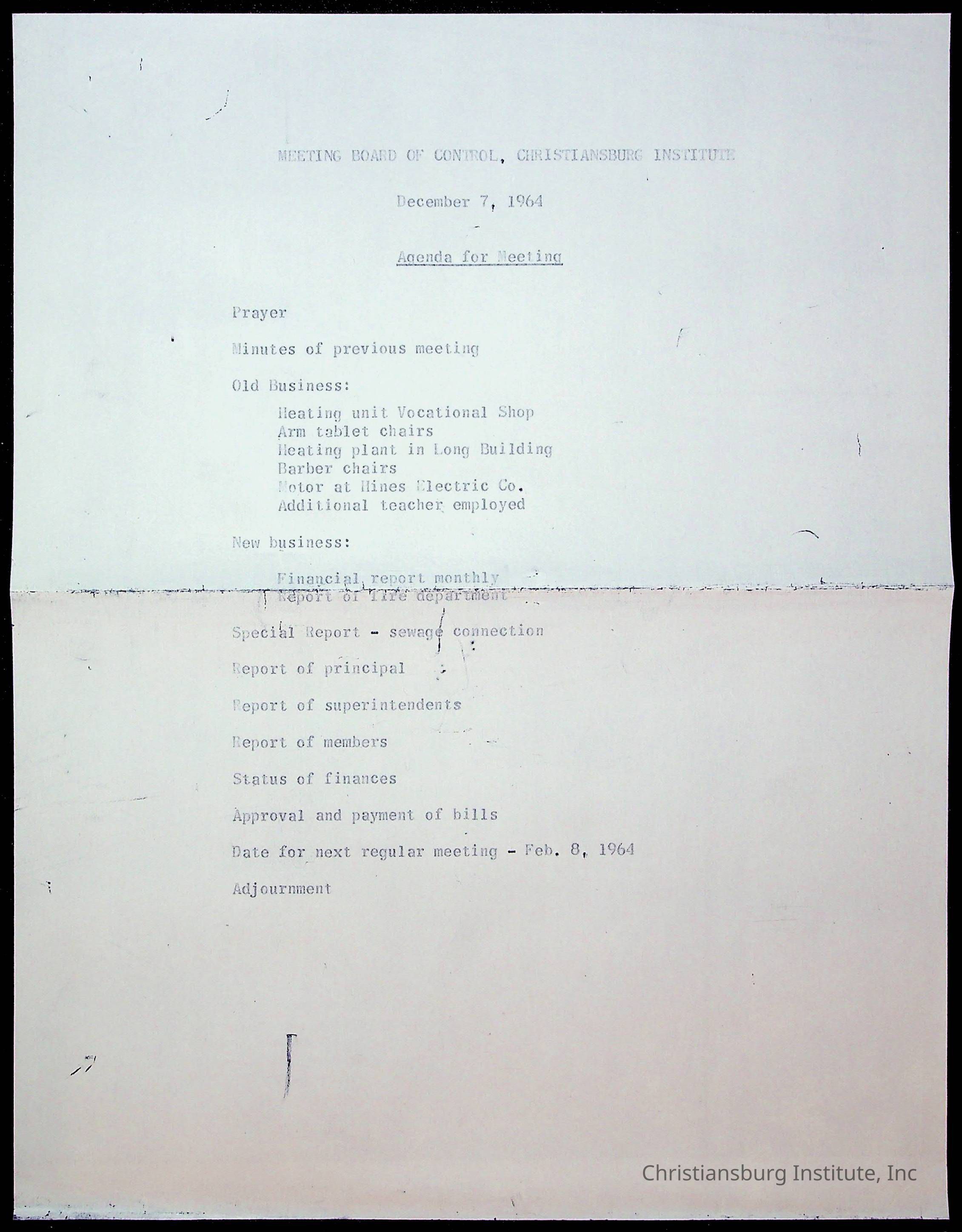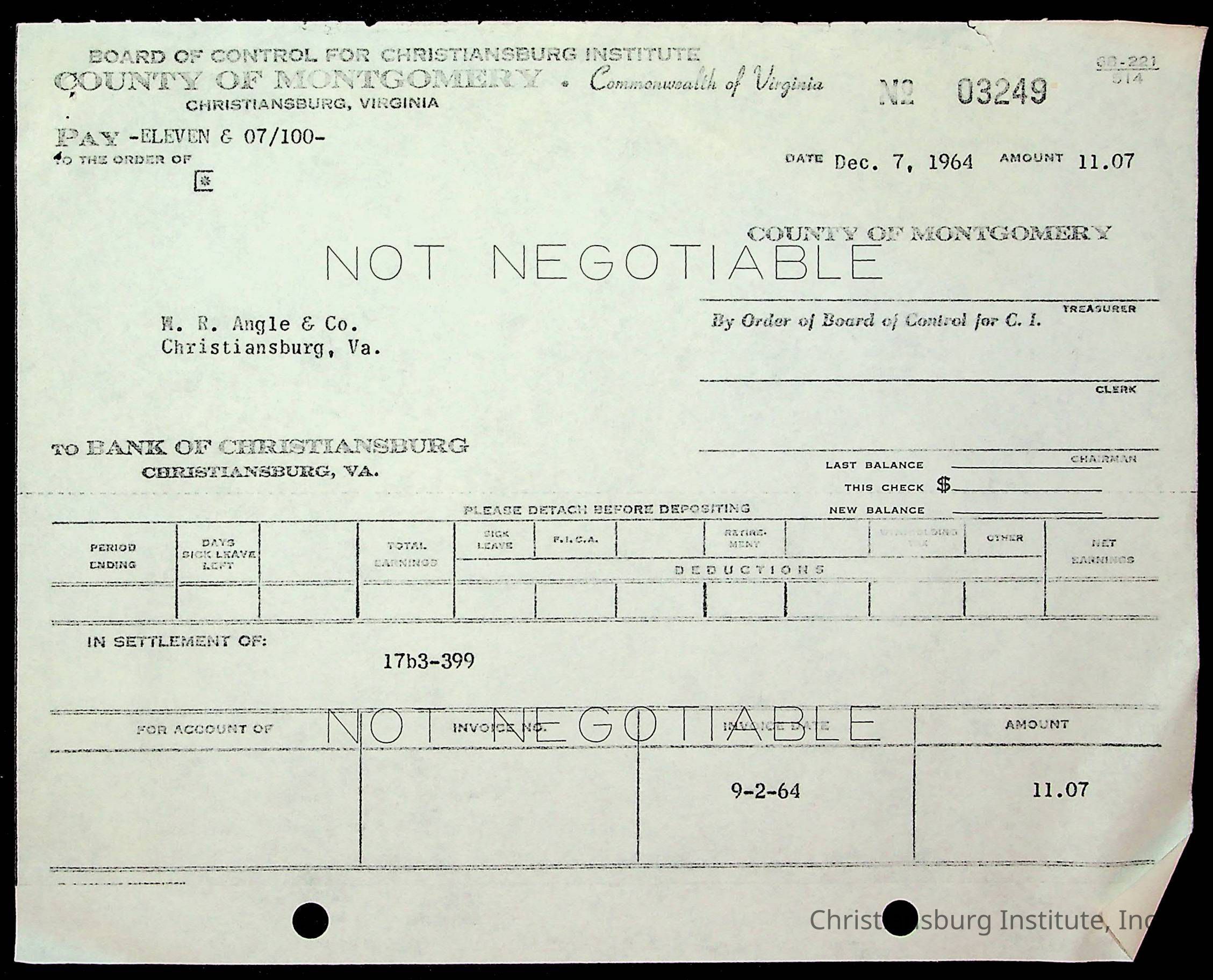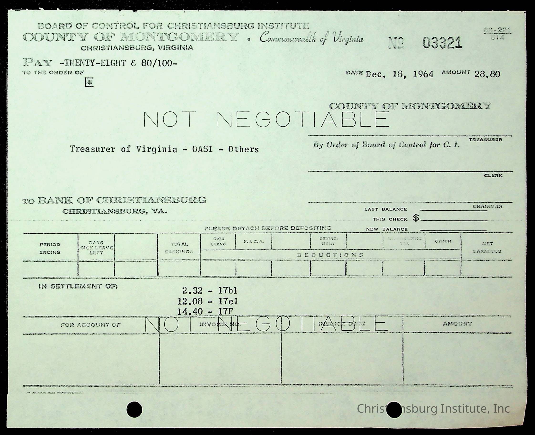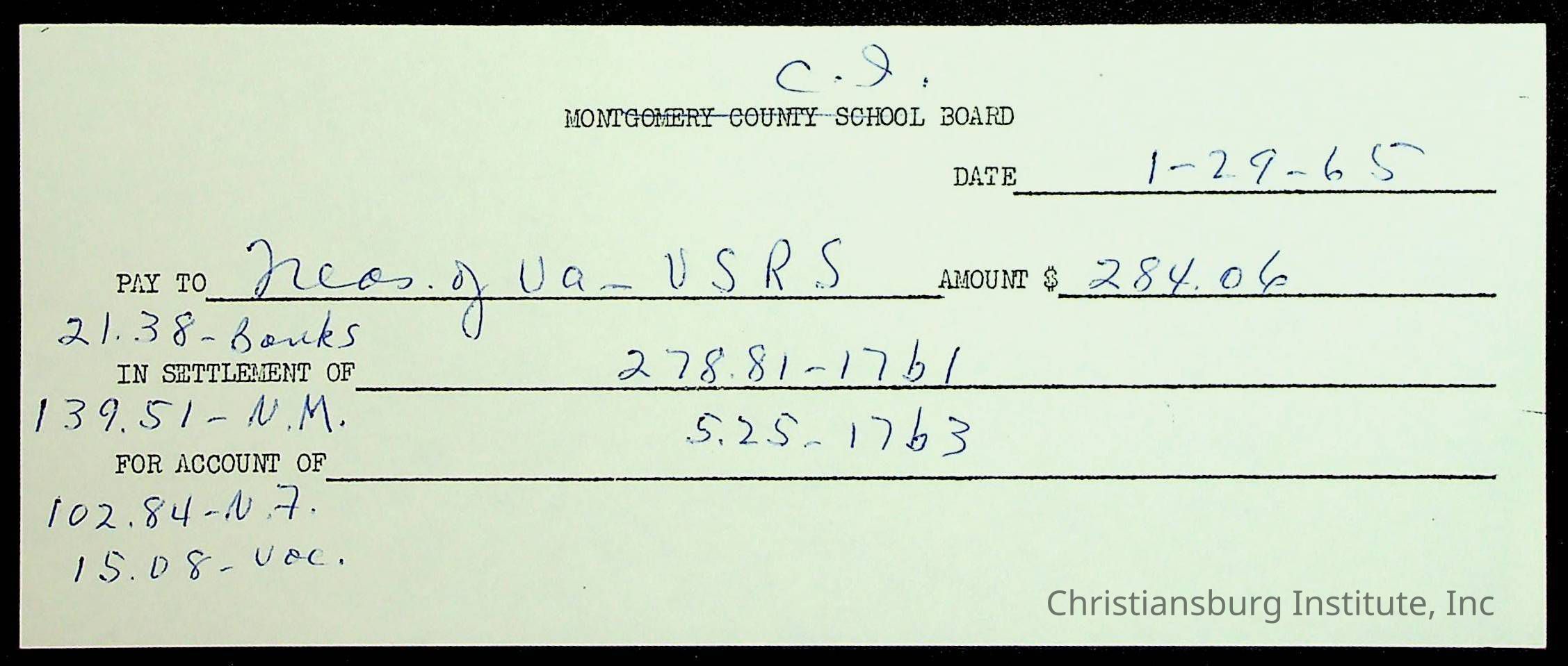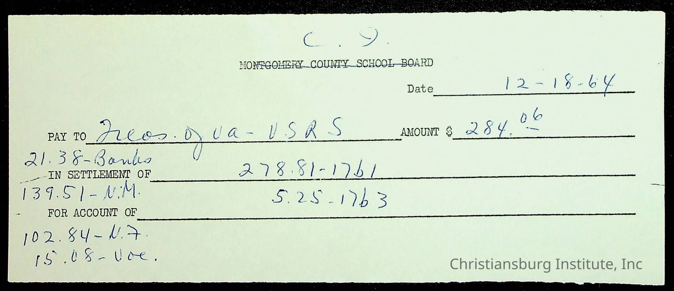 An archive of financial documents relating to the Board of Control for Christiansburg Institute dated 1964-1965. Documents include; bills, statements, and receipts.