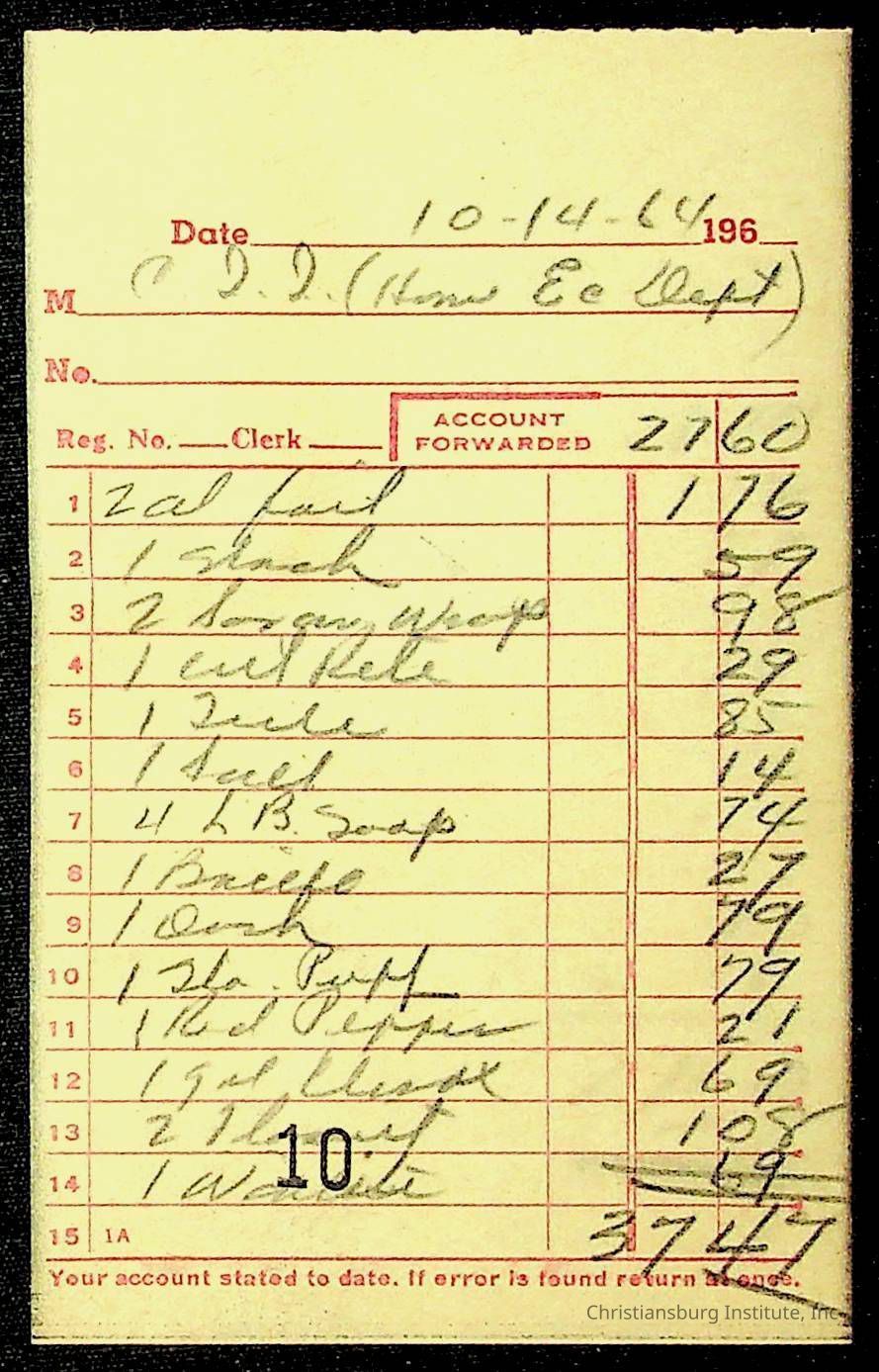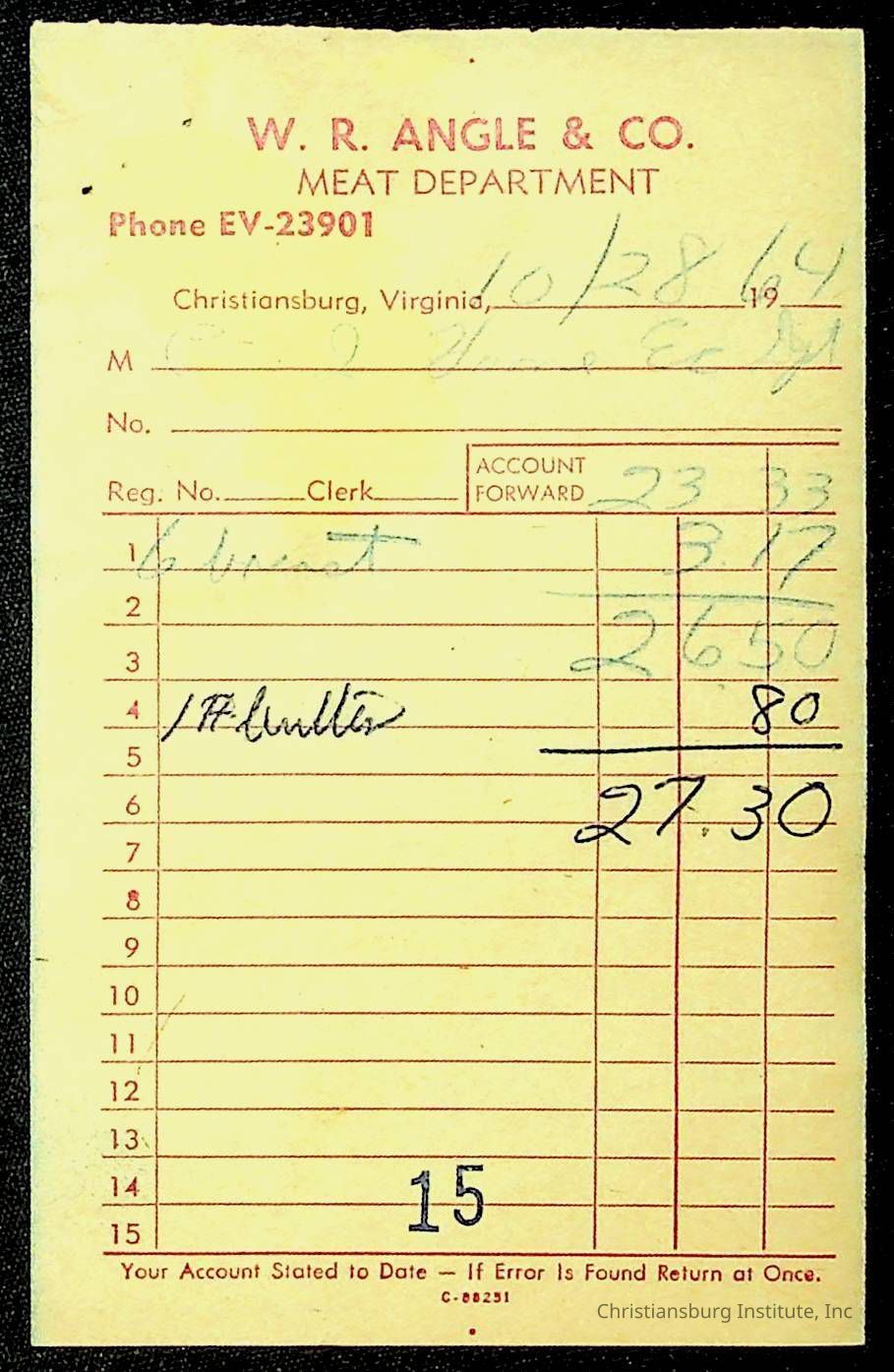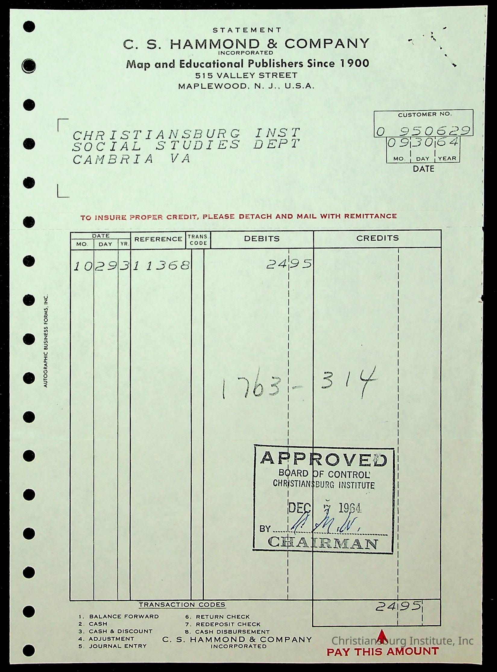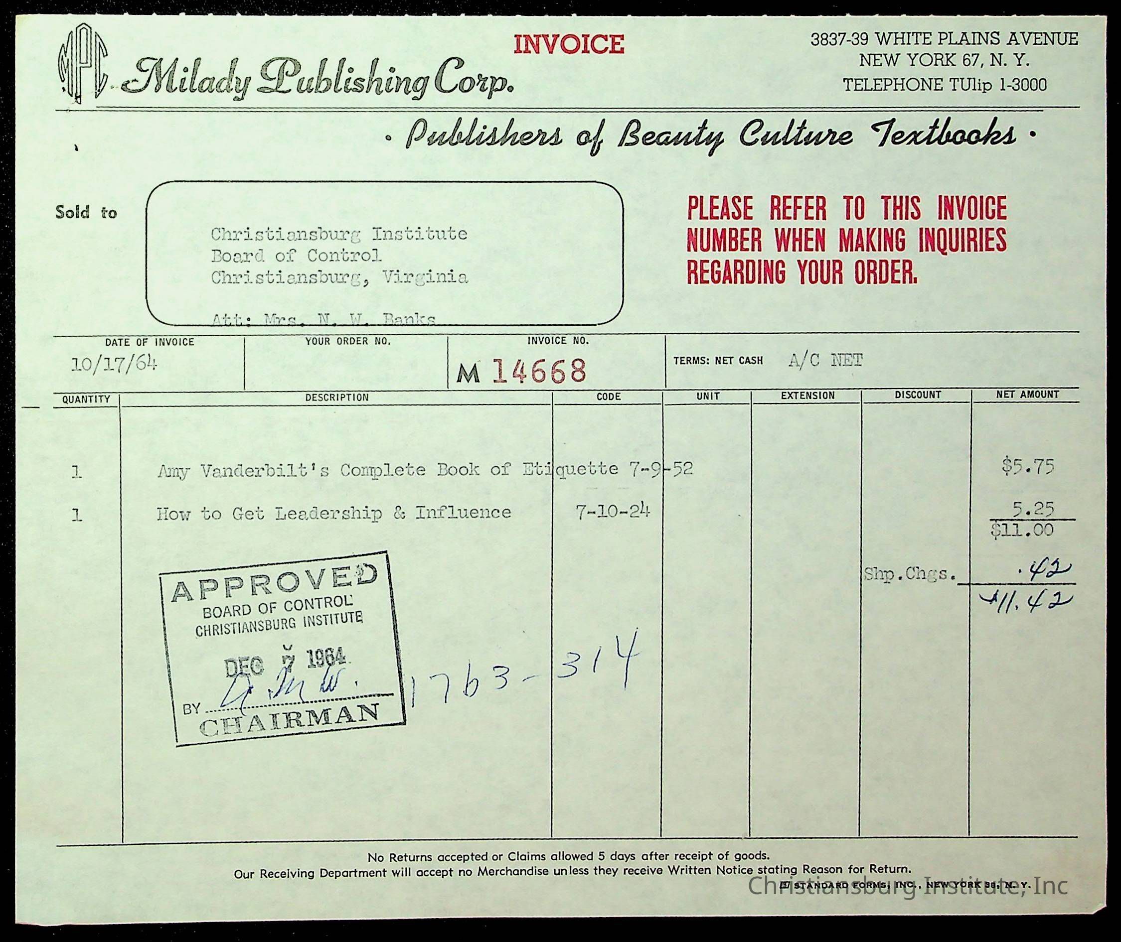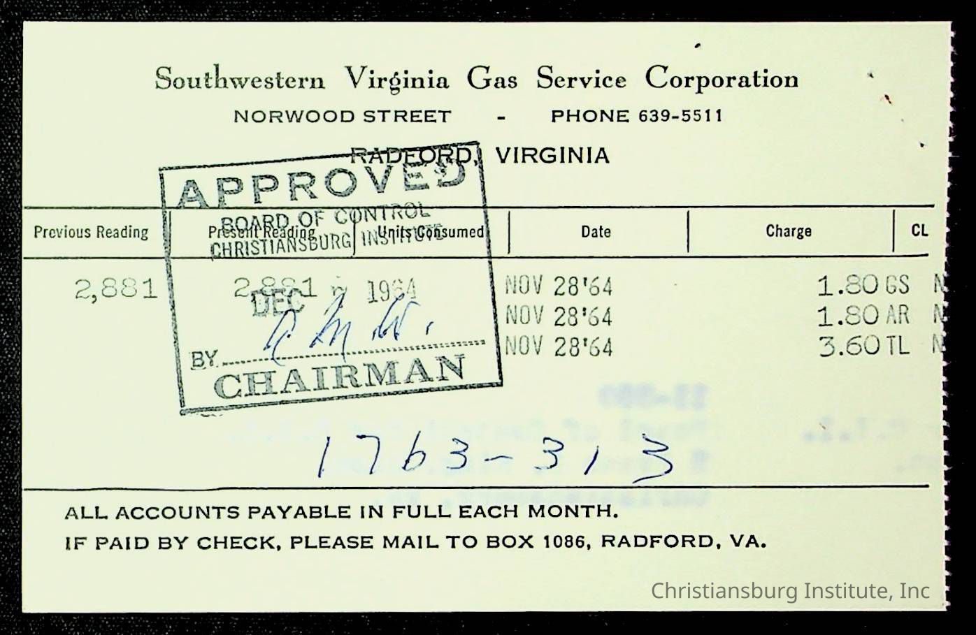An archive of financial documents relating to the Board of Control for Christiansburg Institute dated 1964-1965. Documents include; bills, statements, and receipts.