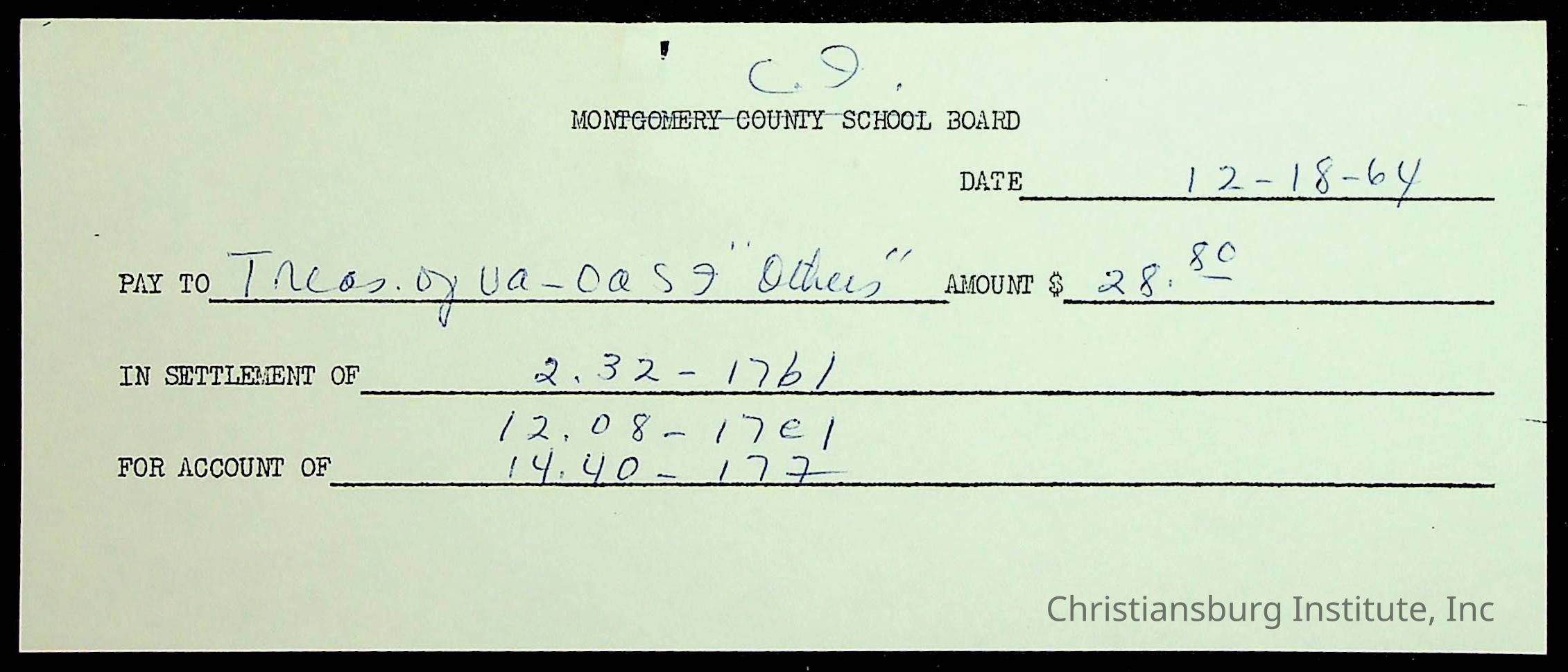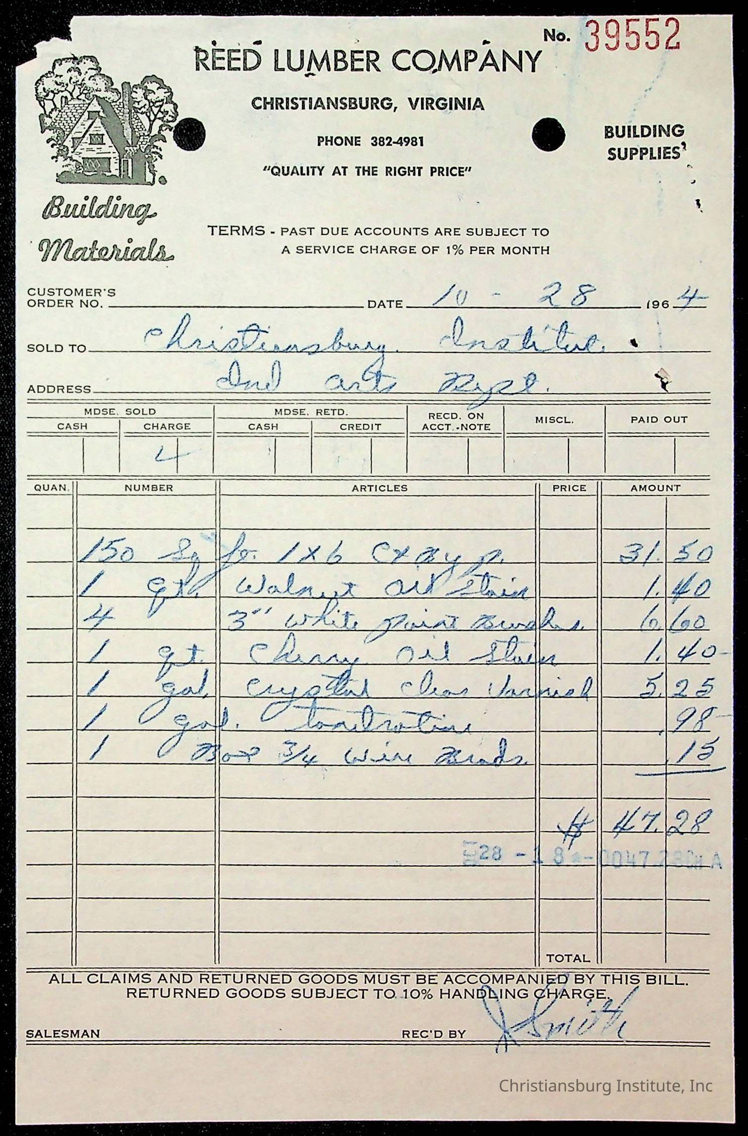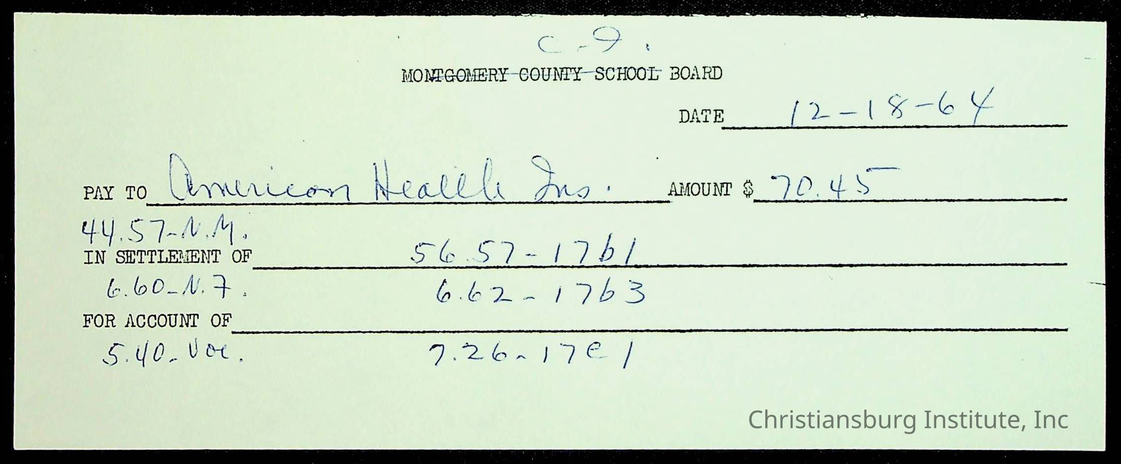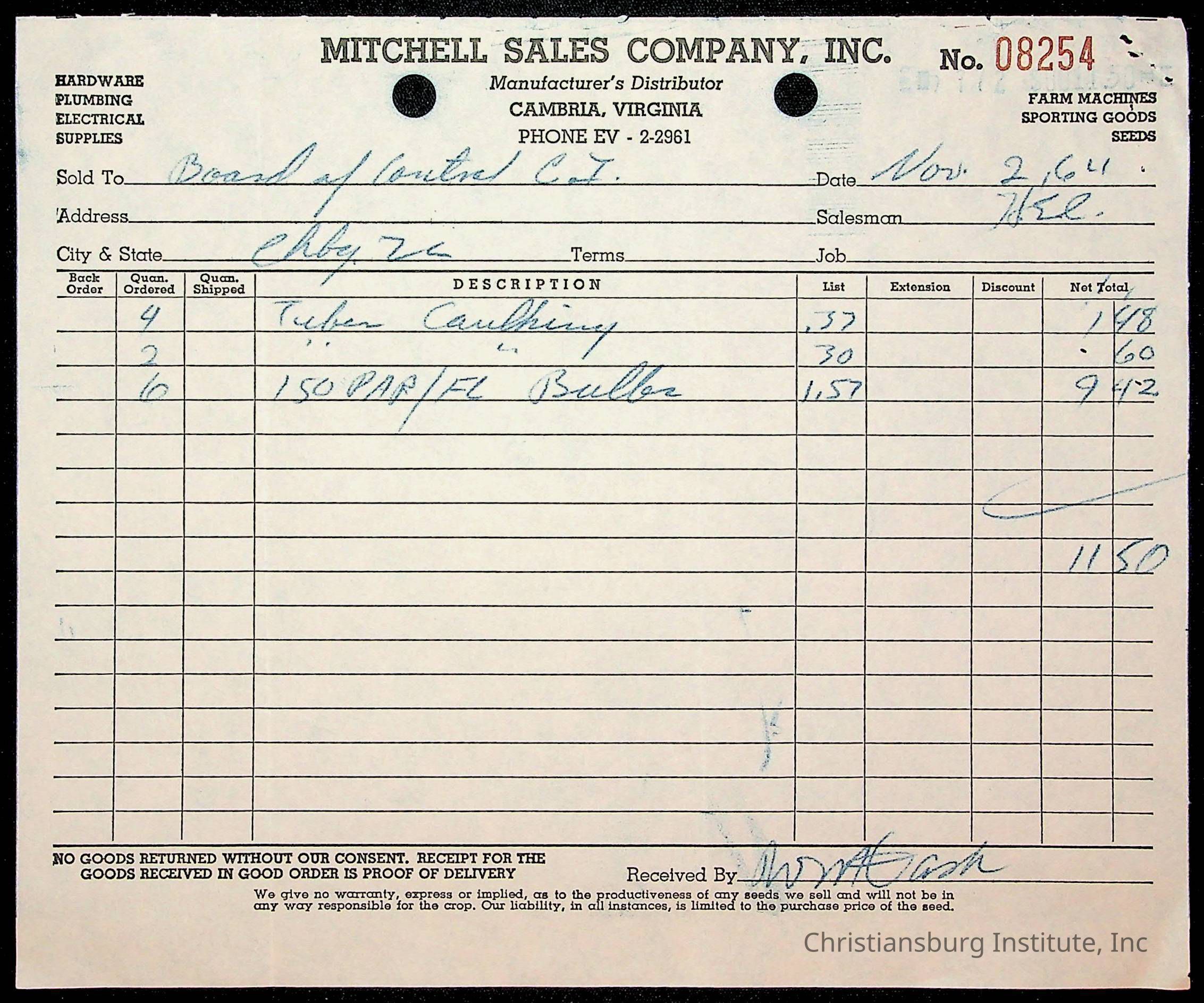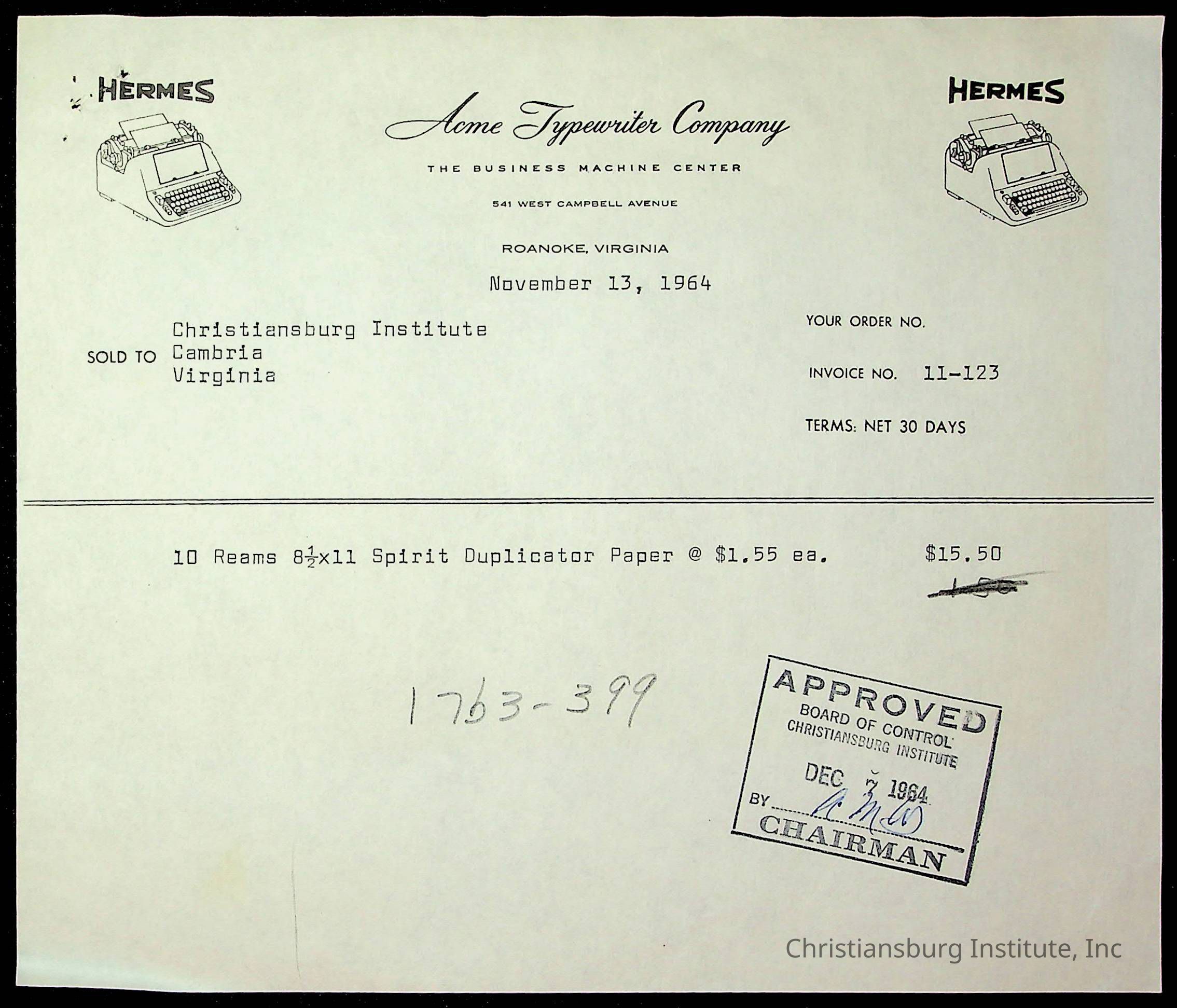 An archive of financial documents relating to the Board of Control for Christiansburg Institute dated 1964-1965. Documents include; bills, statements, and receipts.