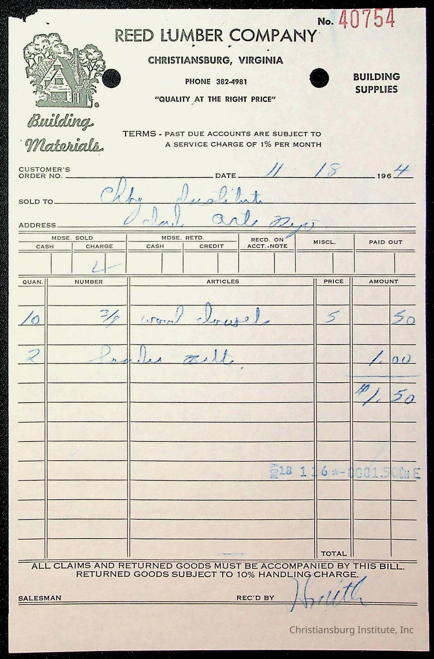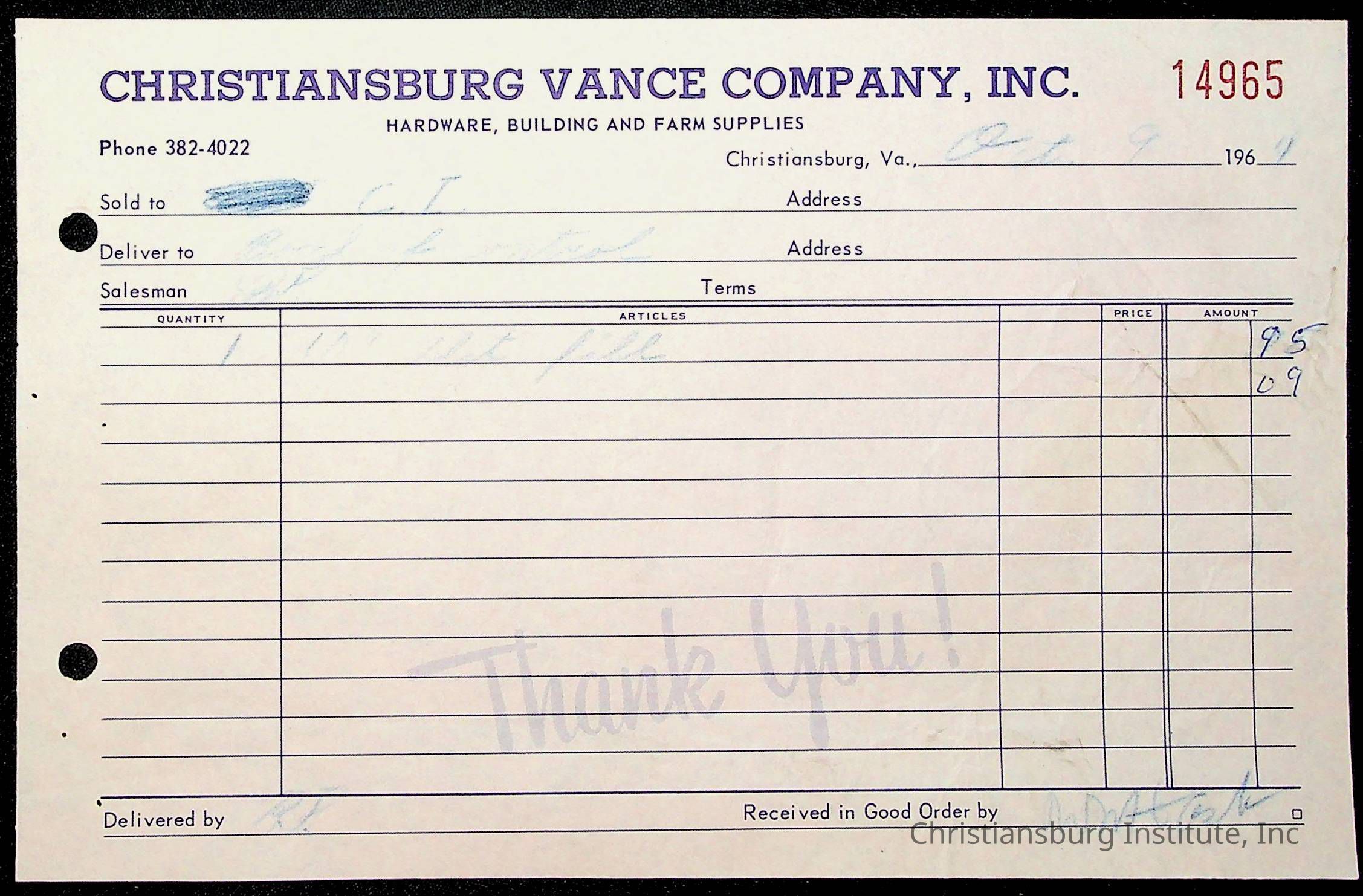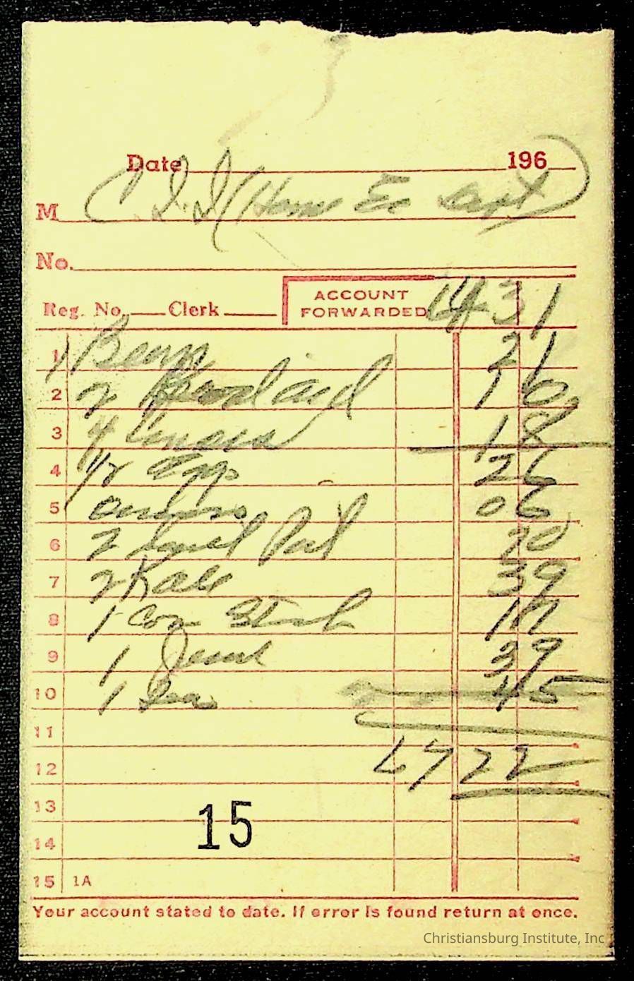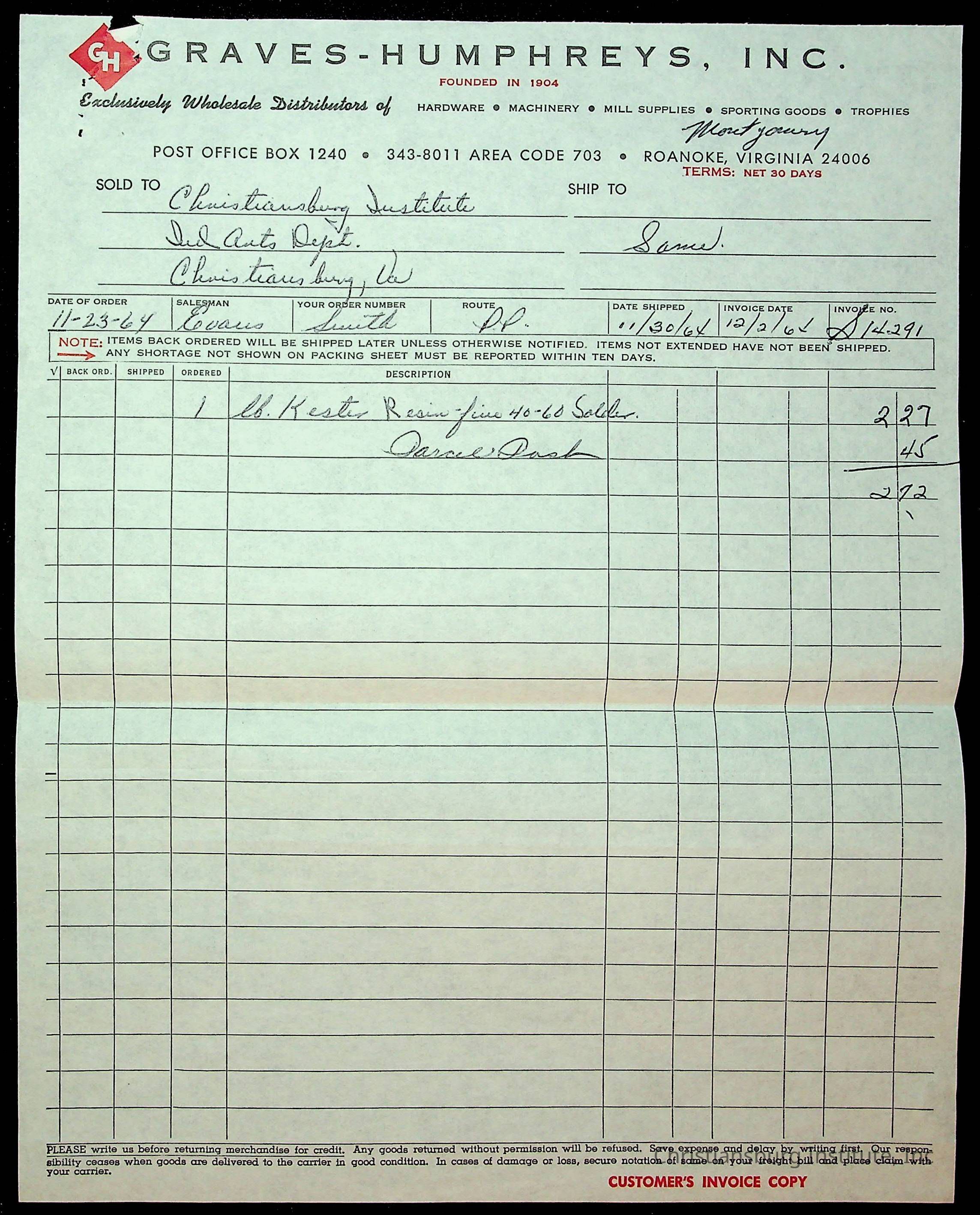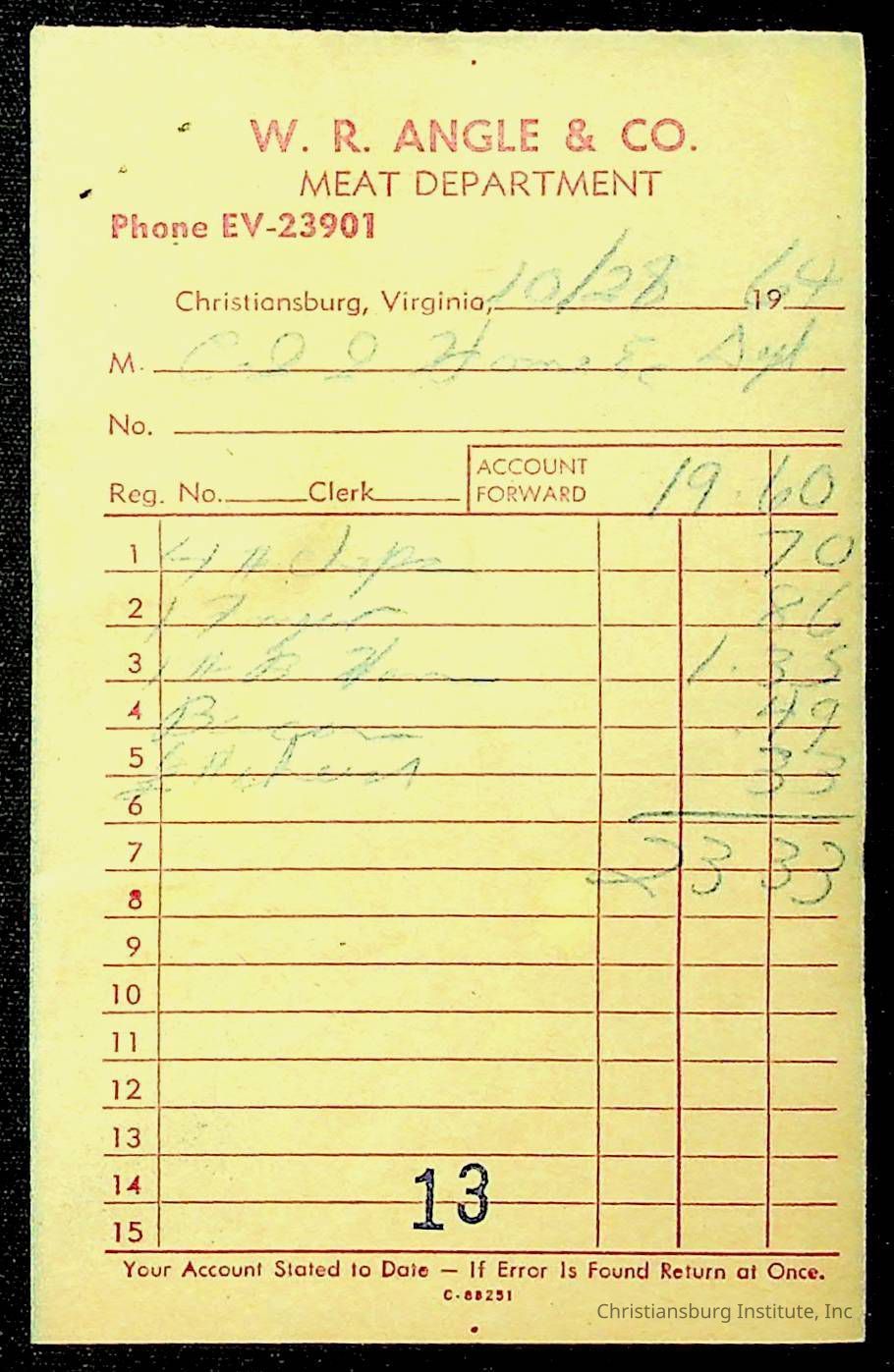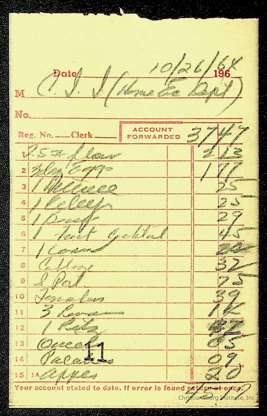 An archive of financial documents relating to the Board of Control for Christiansburg Institute dated 1964-1965. Documents include; bills, statements, and receipts.