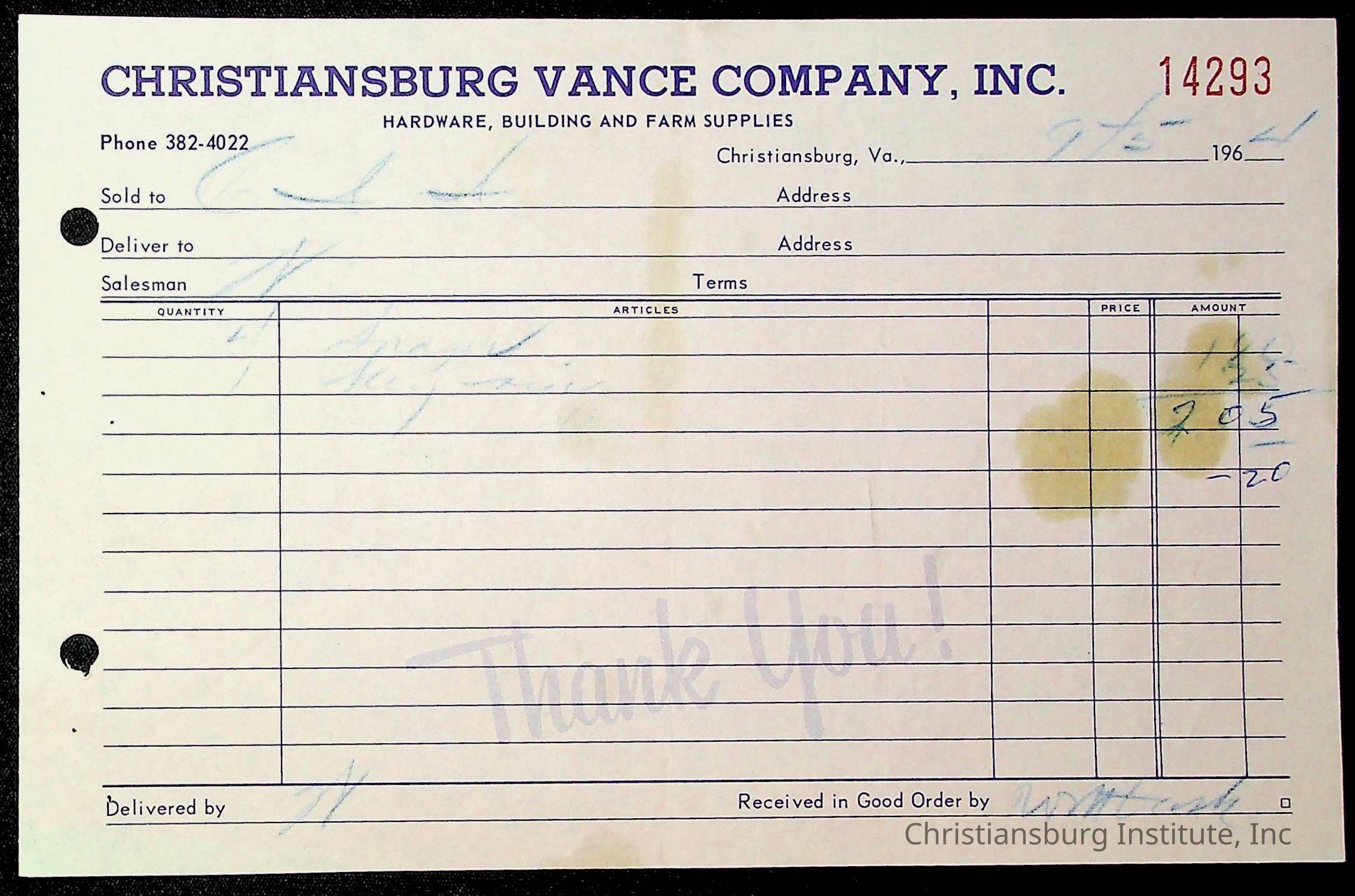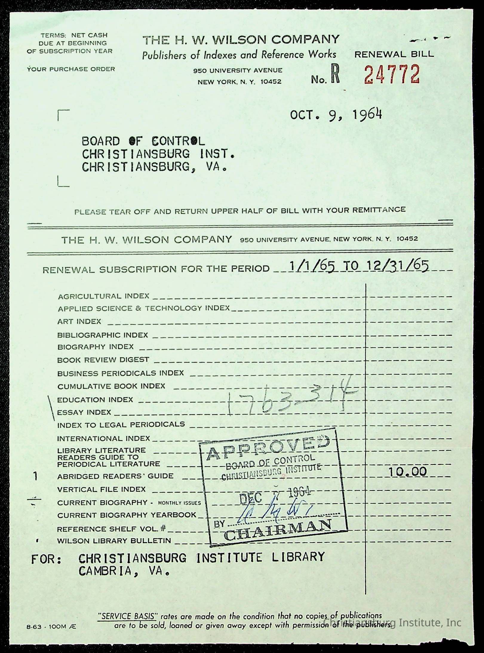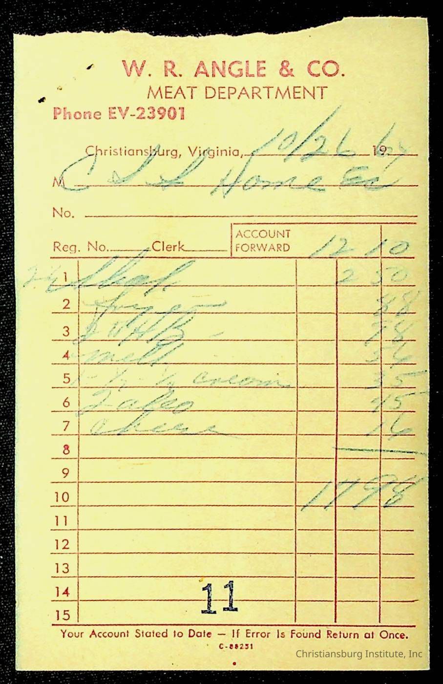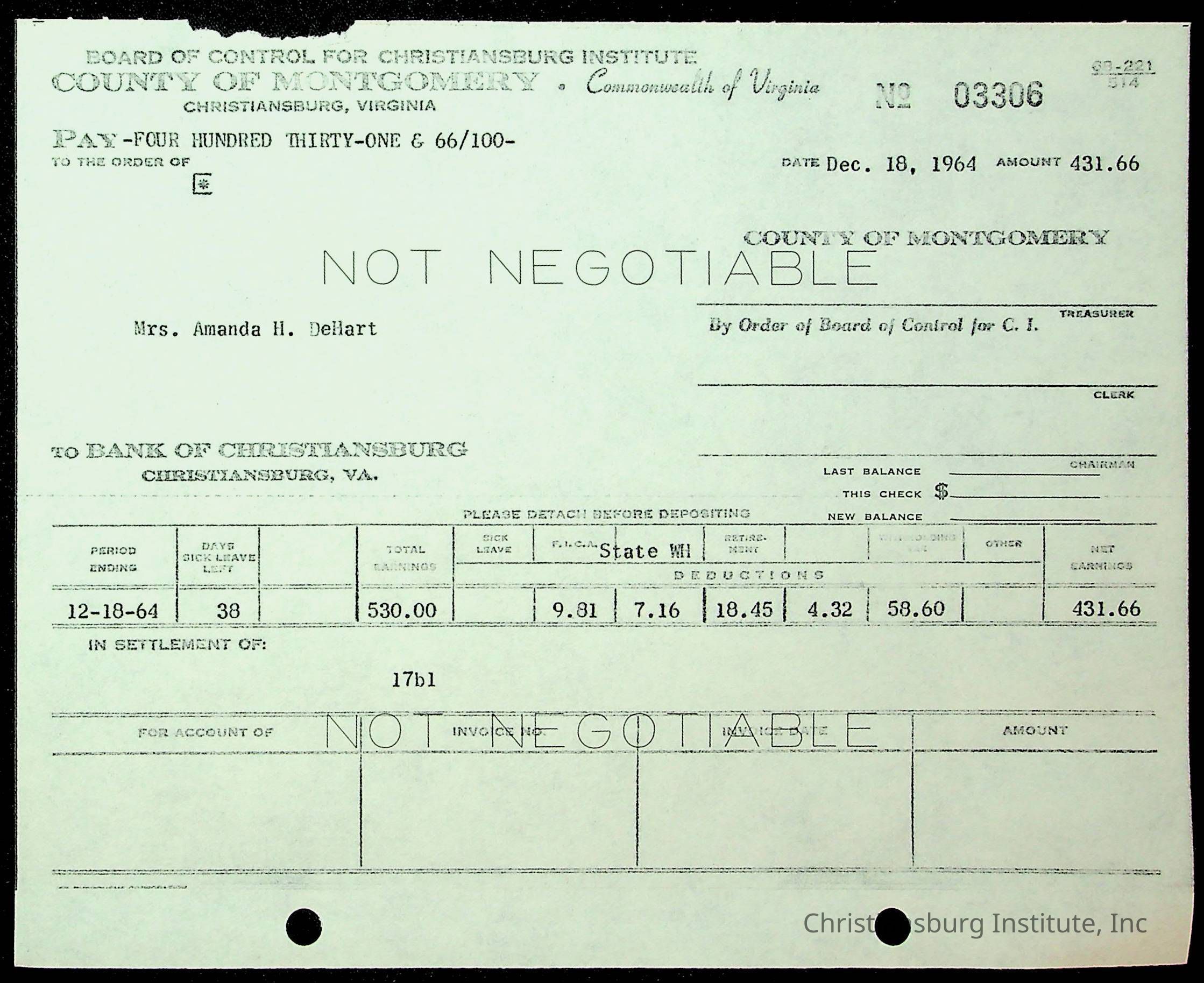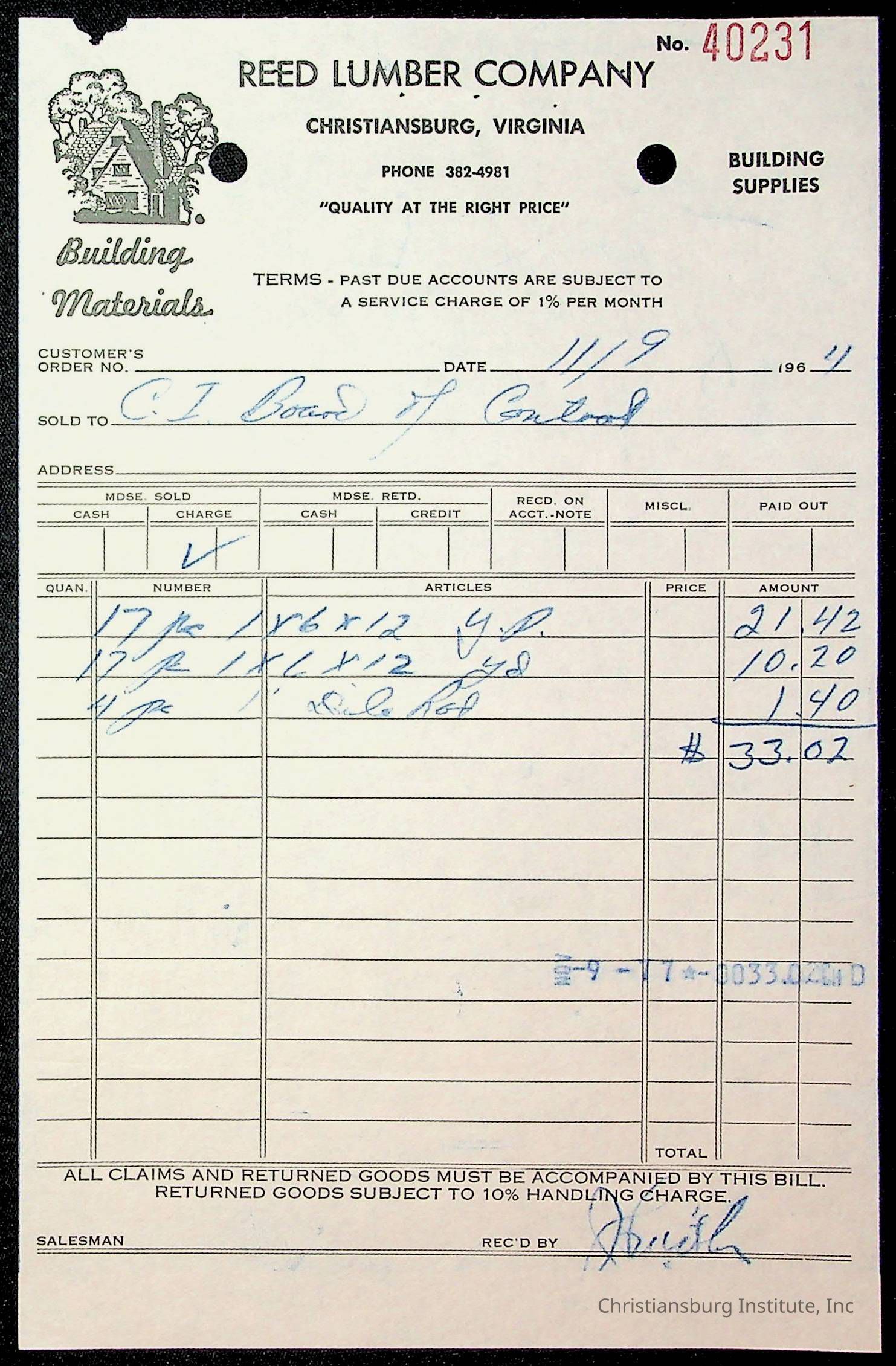 An archive of financial documents relating to the Board of Control for Christiansburg Institute dated 1964-1965. Documents include; bills, statements, and receipts.