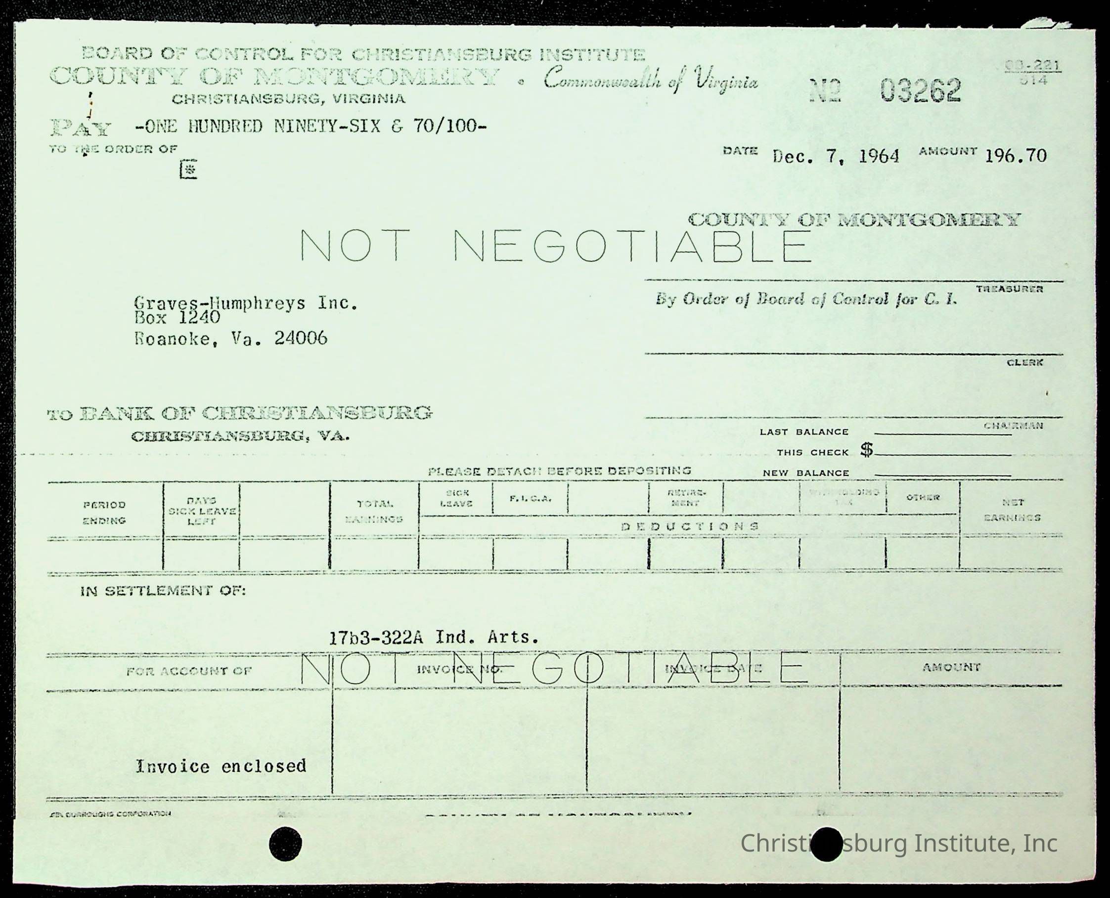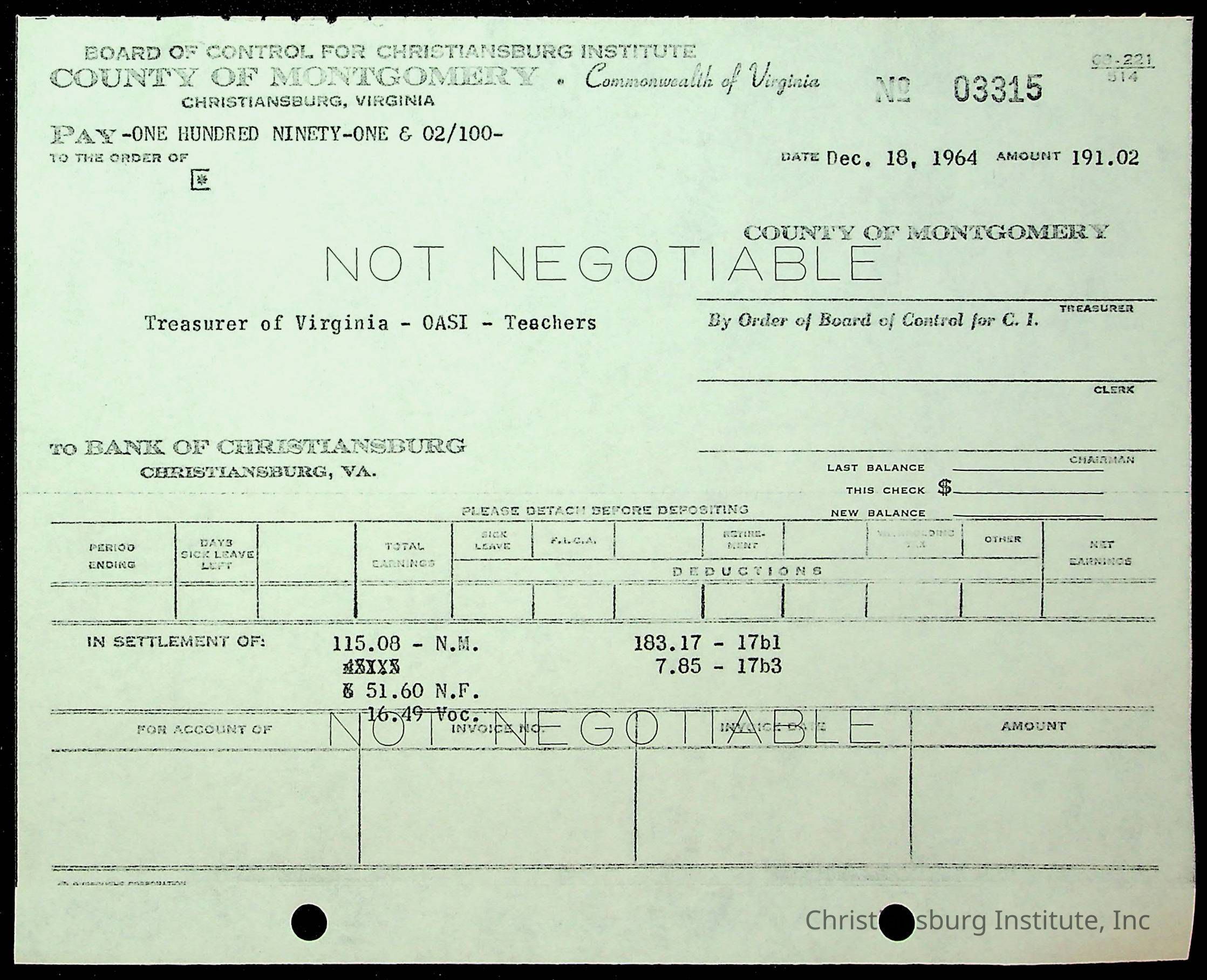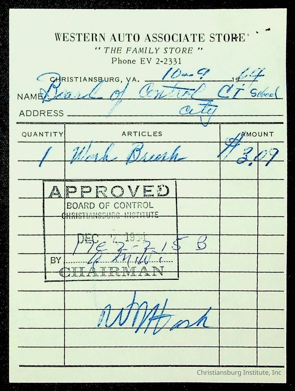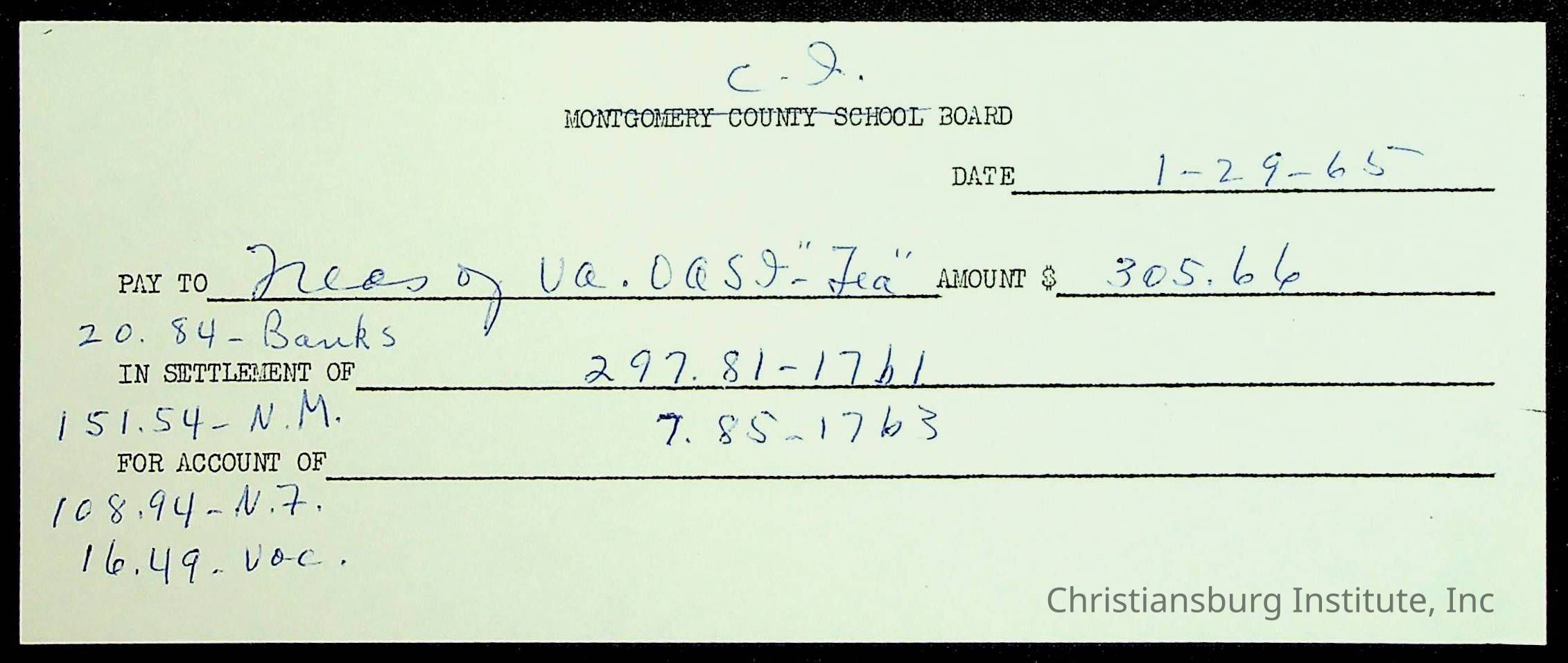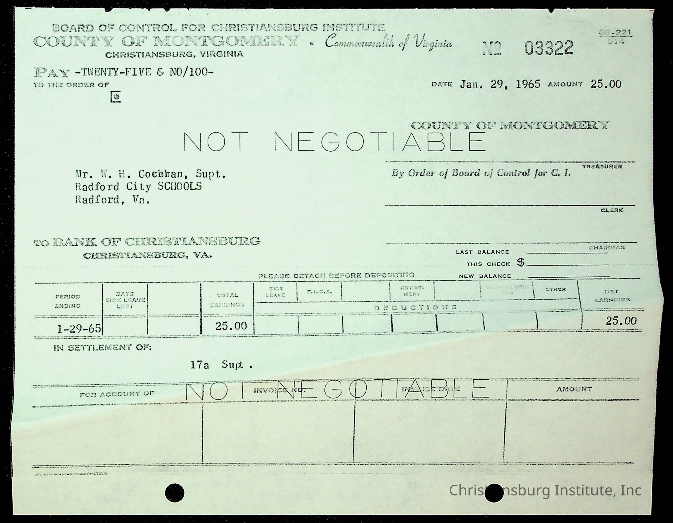 Christiansburg Institute, The Board of Control, Bank of Christiansburg, Montgomery County School Board