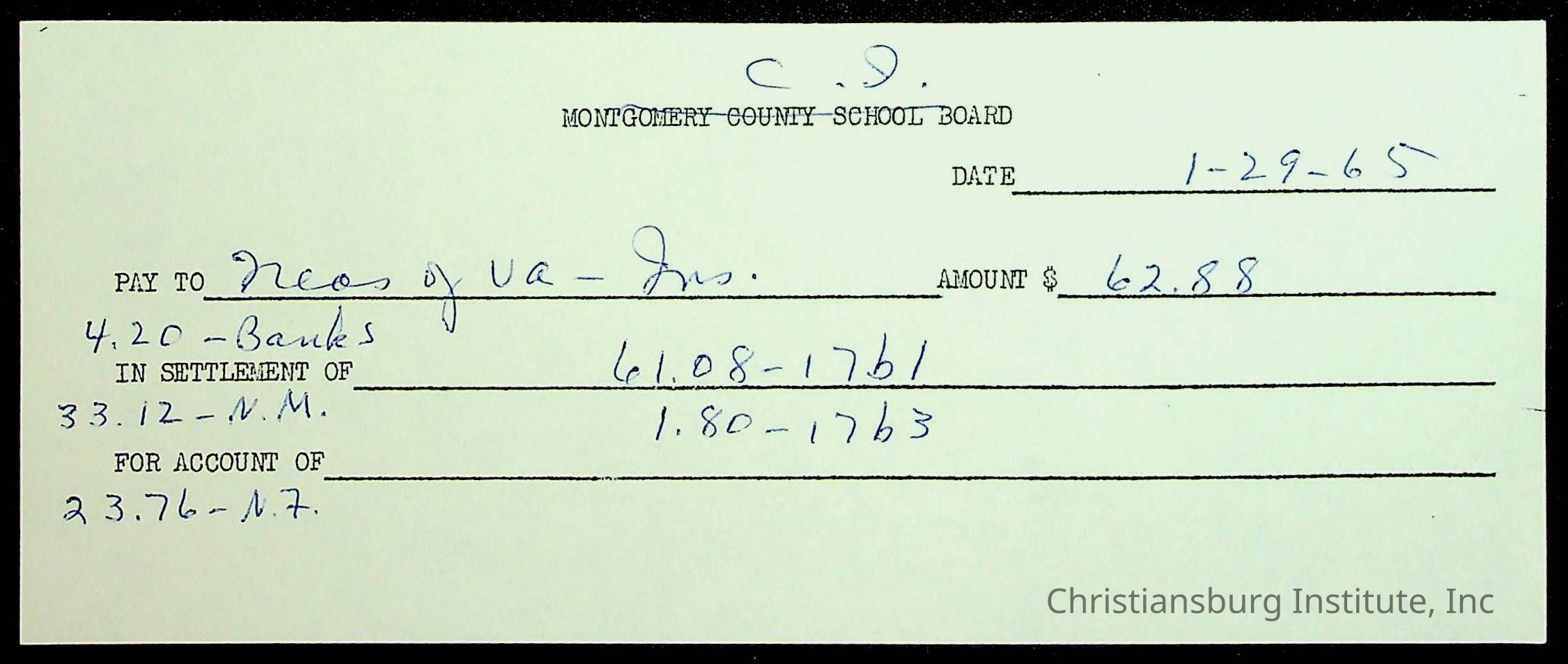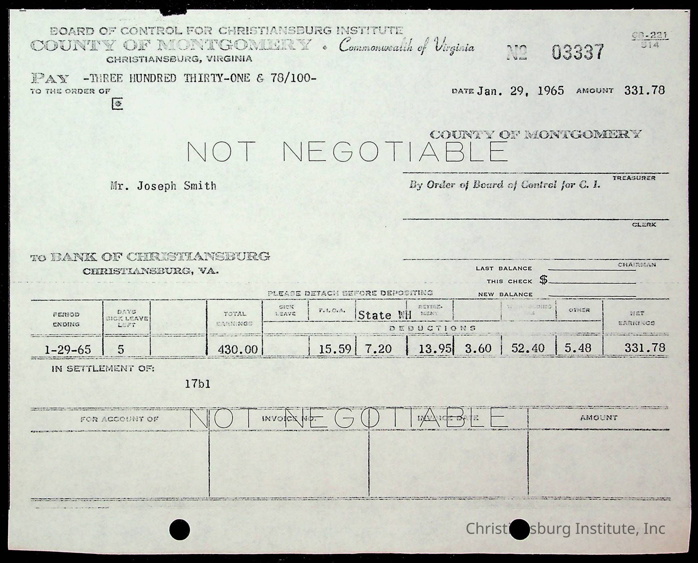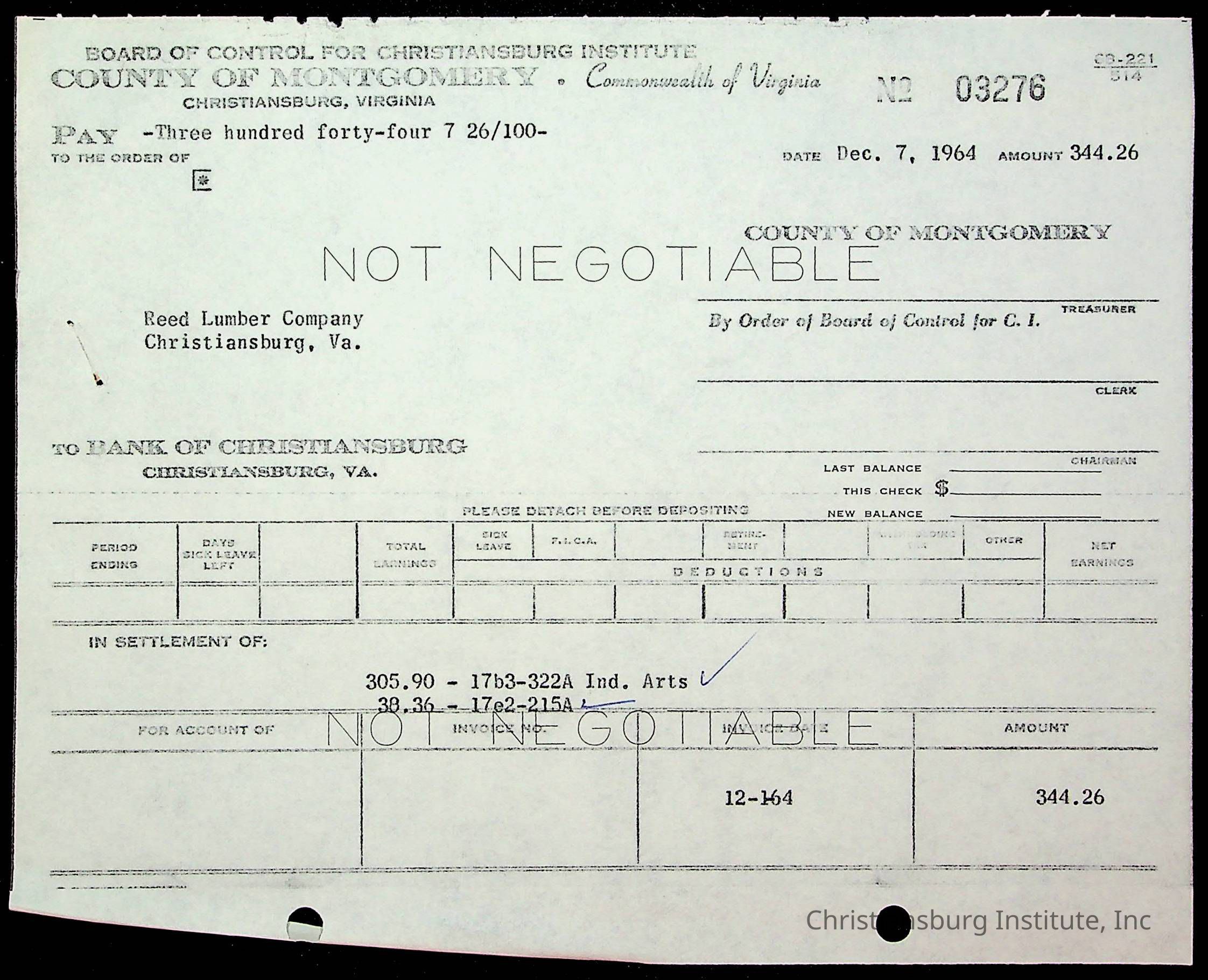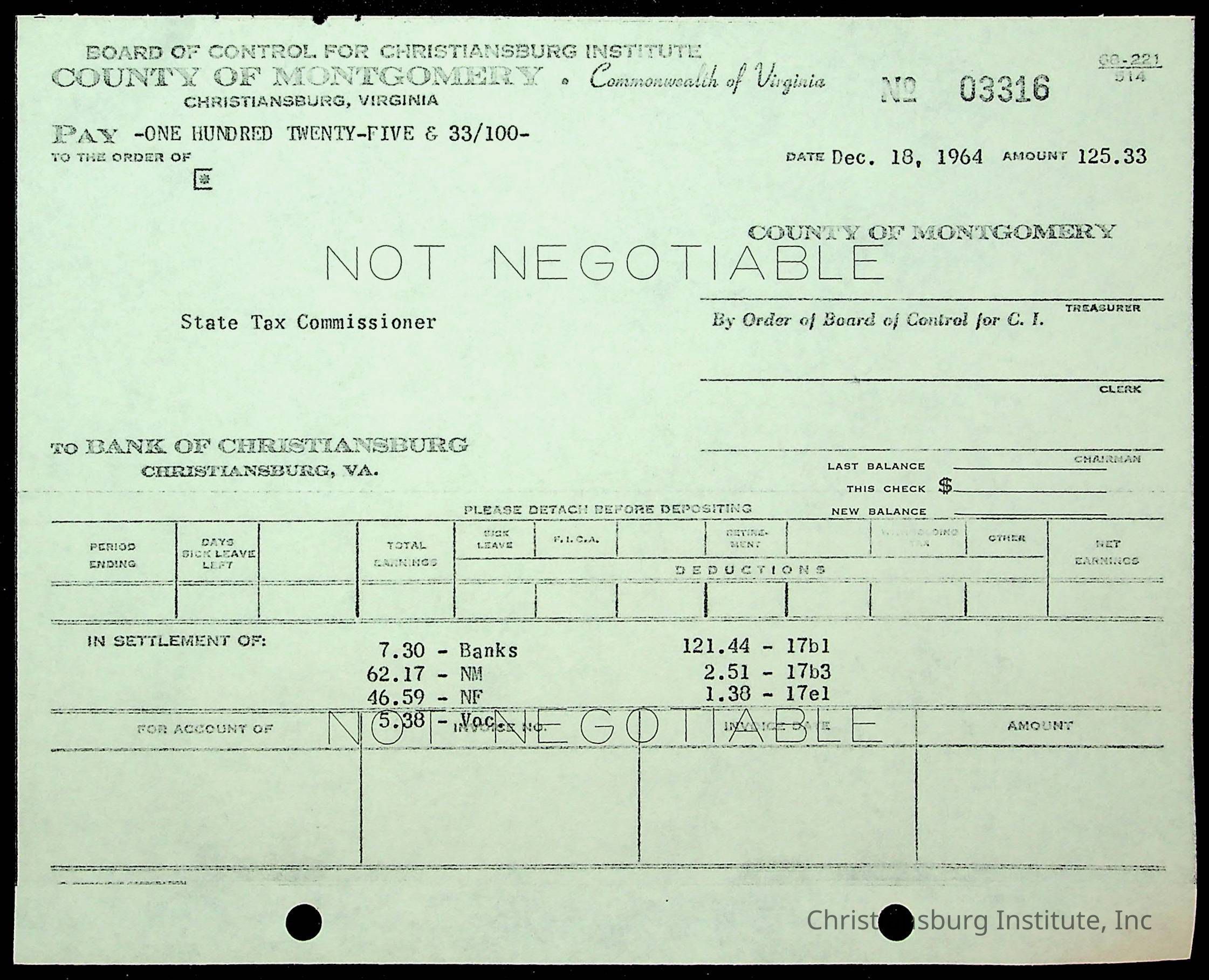 Christiansburg Institute, The Board of Control, Bank of Christiansburg, Montgomery County School Board