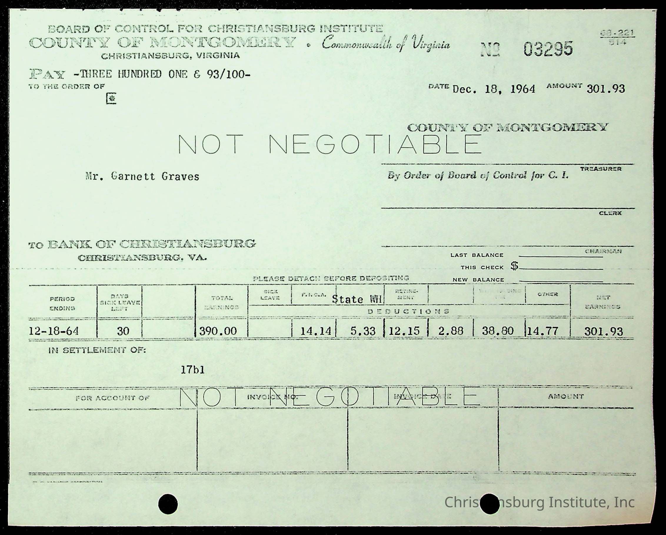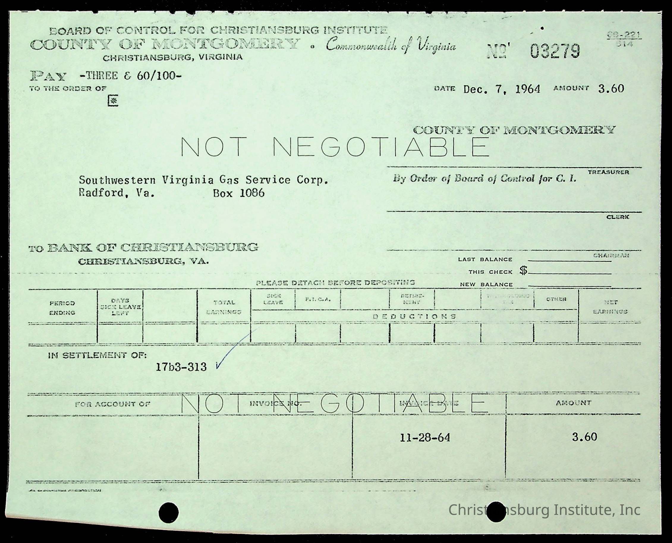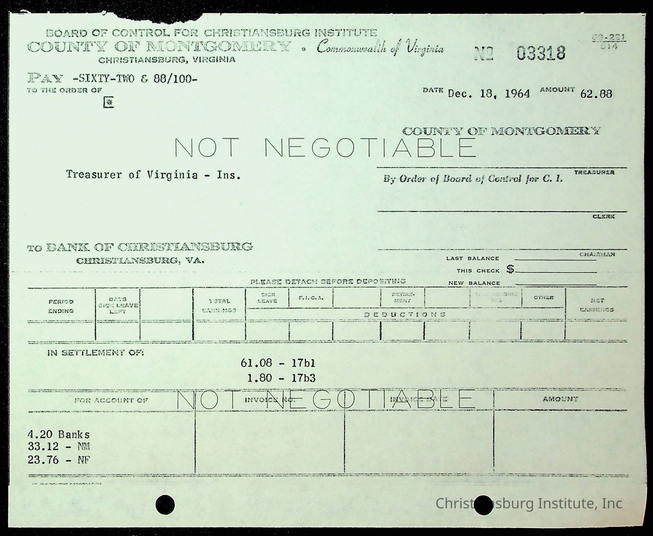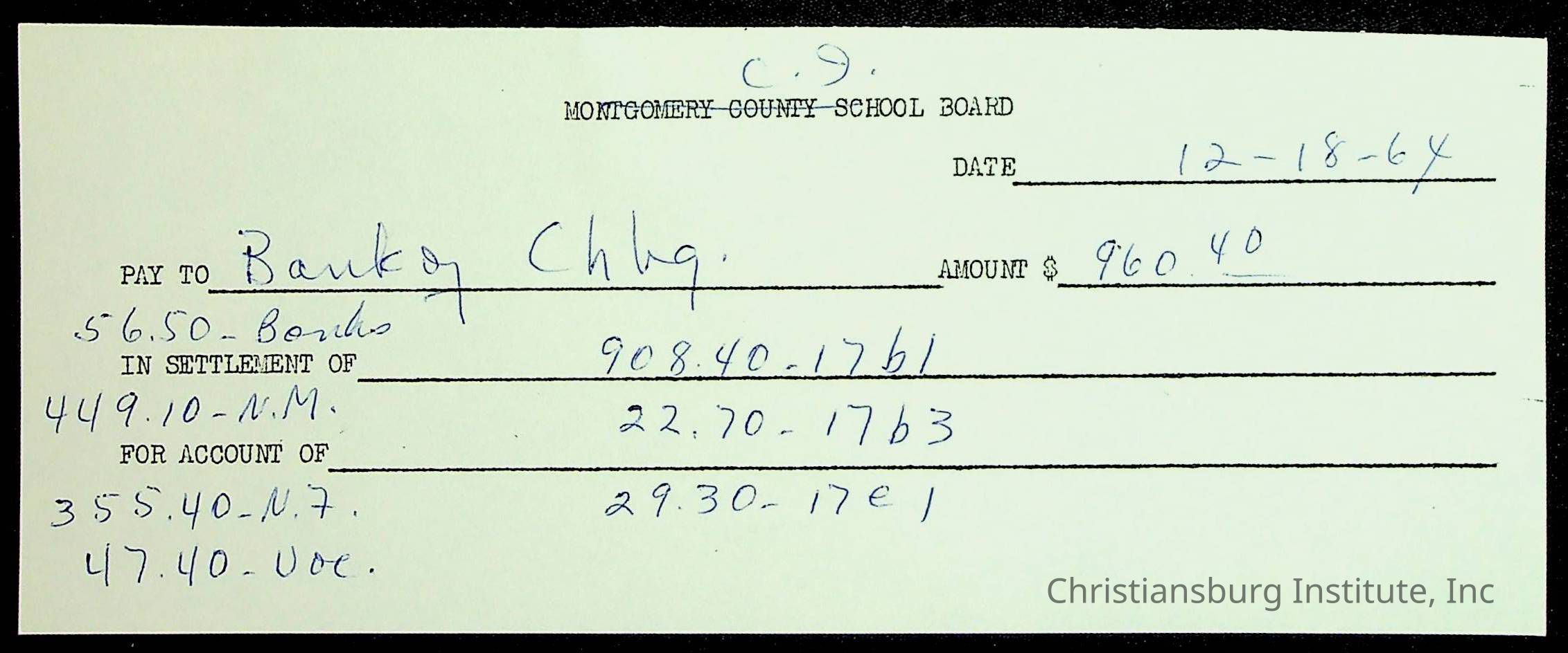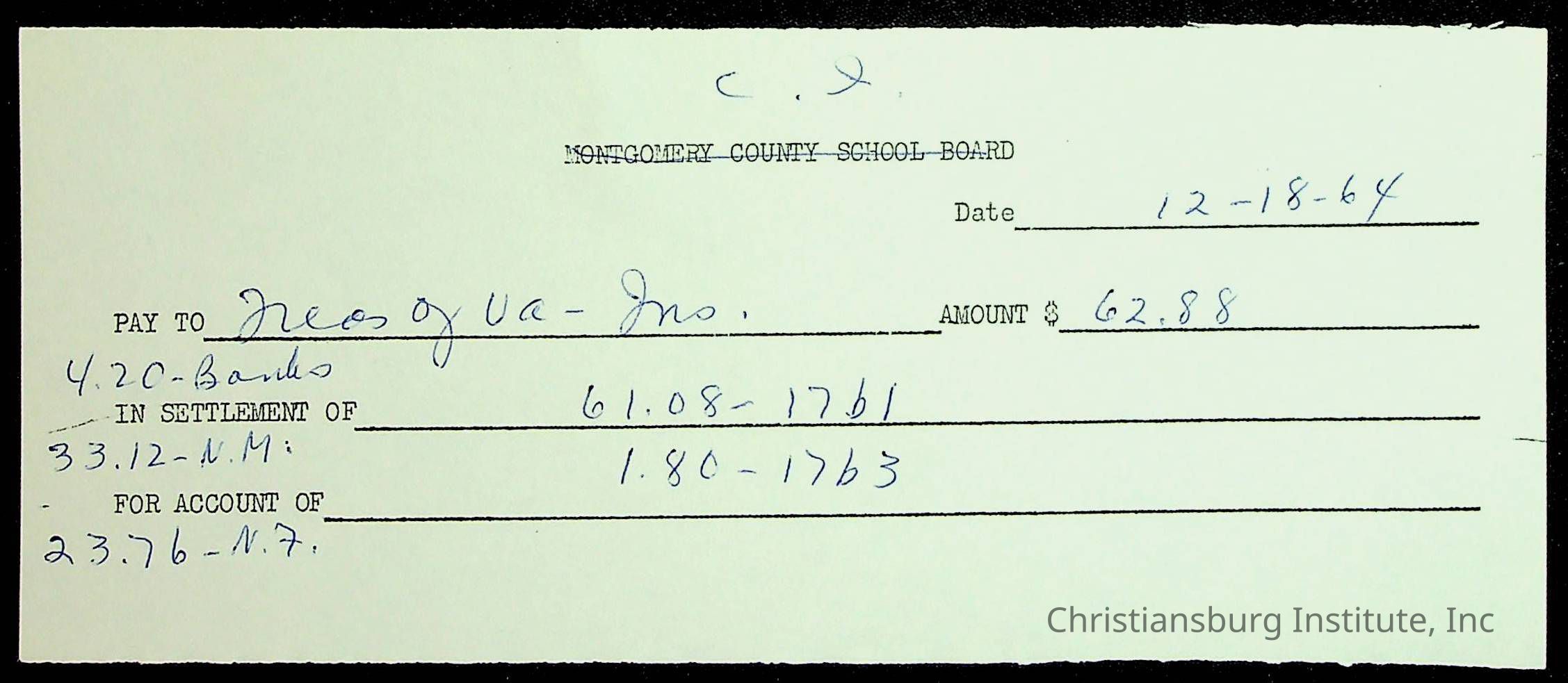Christiansburg Institute, The Board of Control, Bank of Christiansburg, Montgomery County School Board