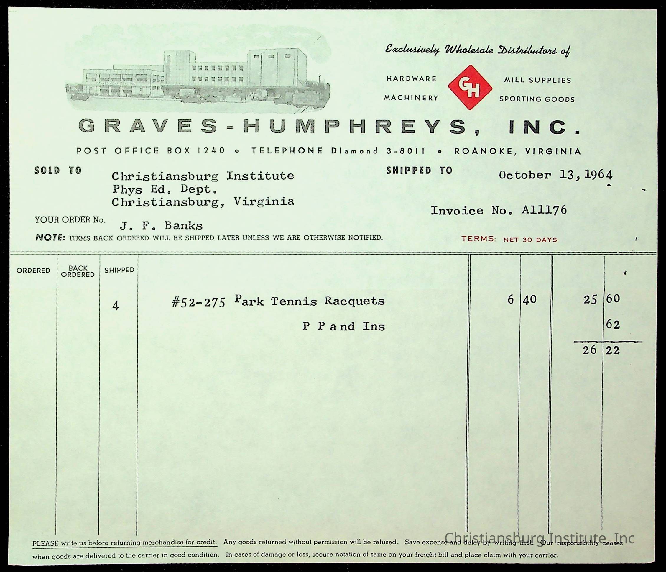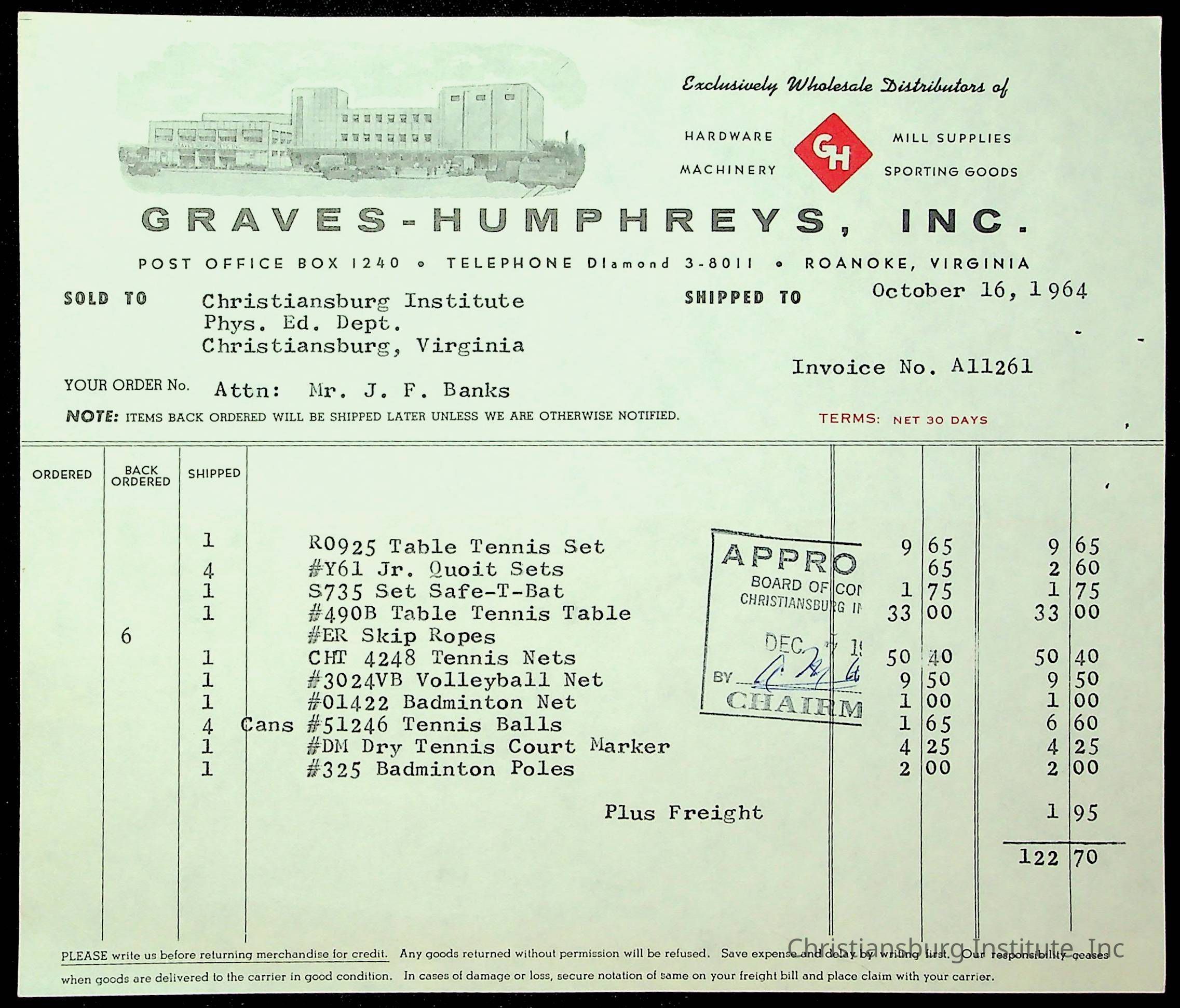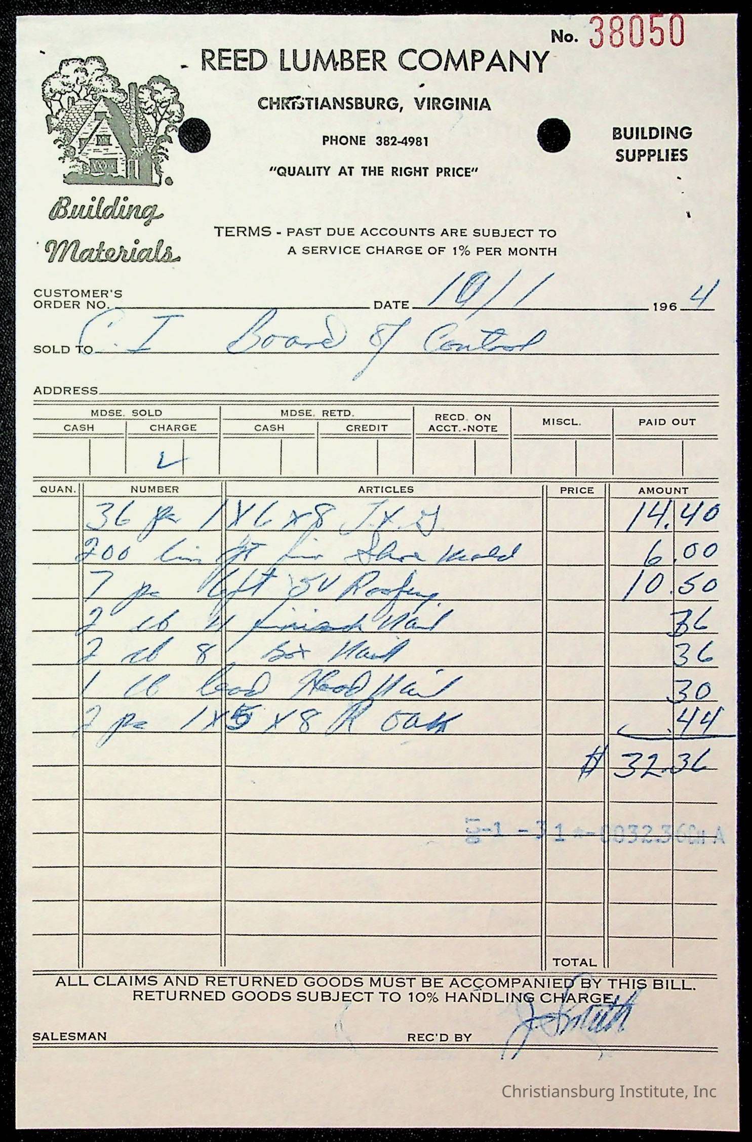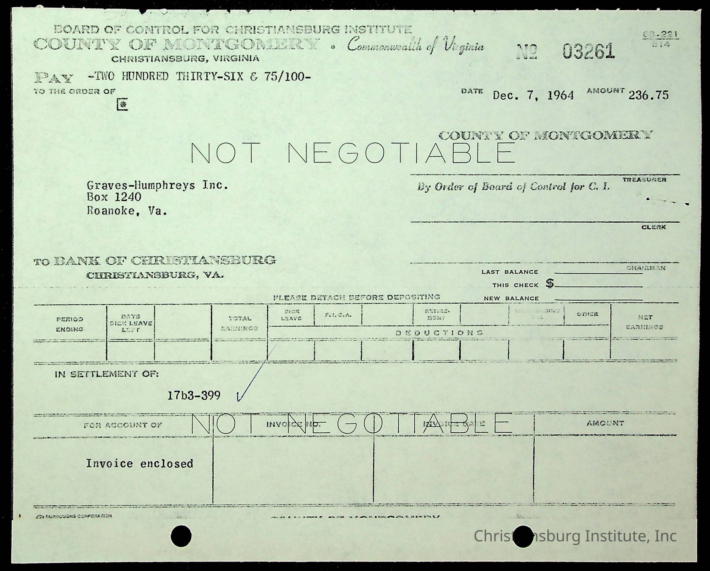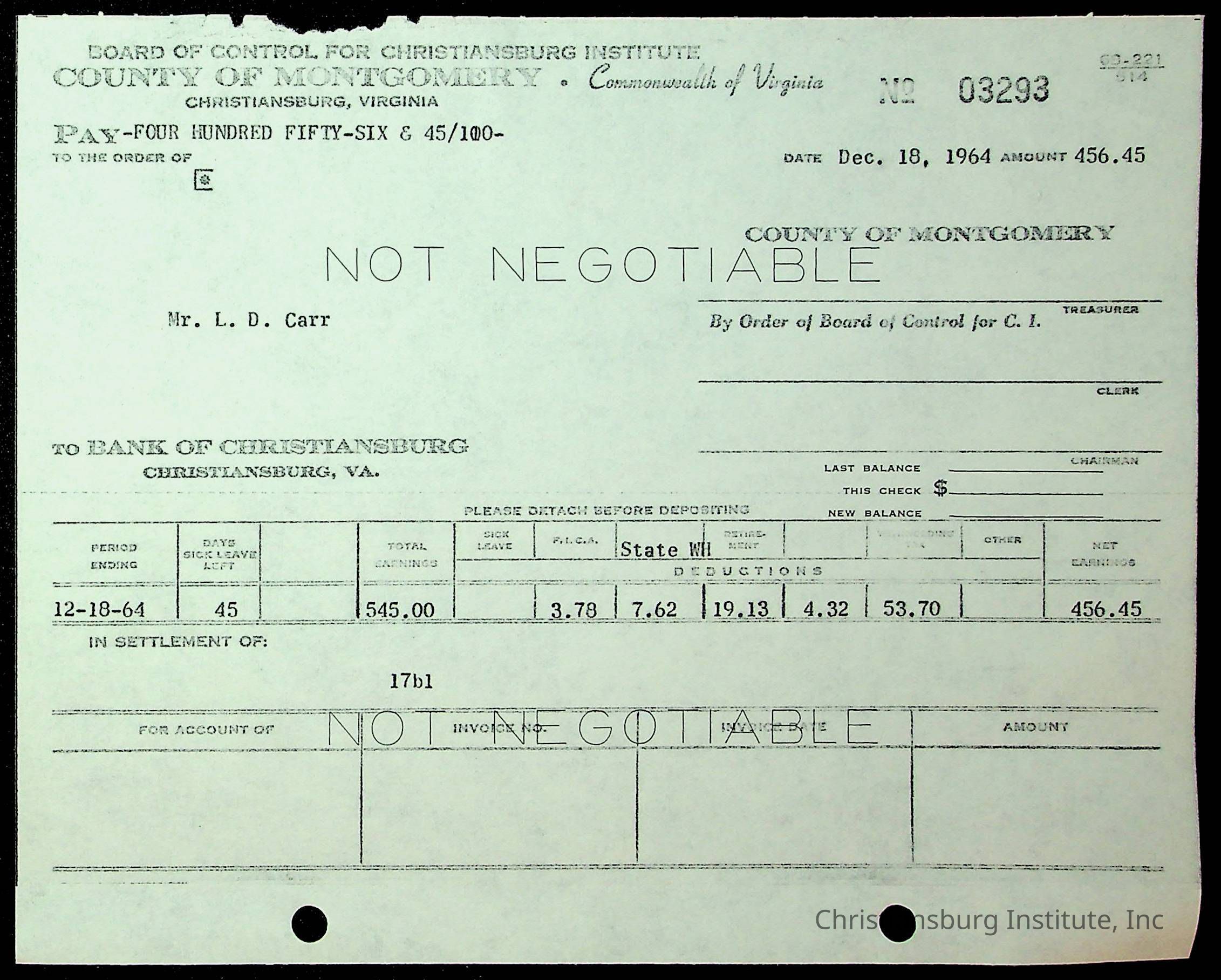 Christiansburg Institute, The Board of Control, Bank of Christiansburg, Montgomery County School Board