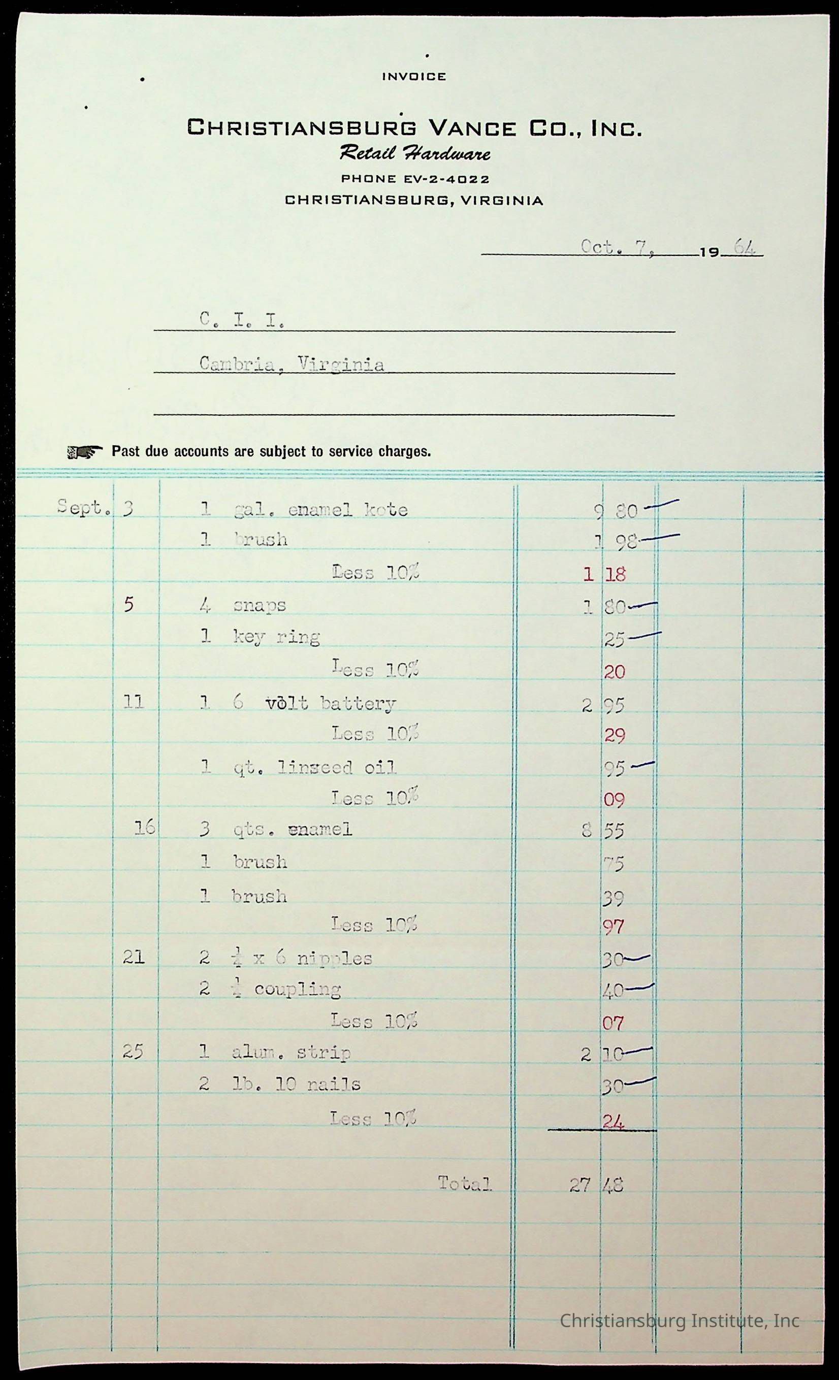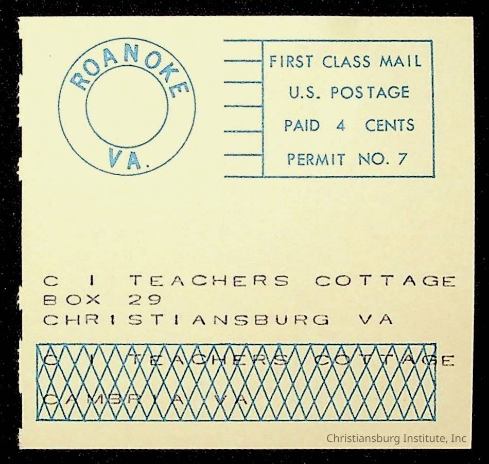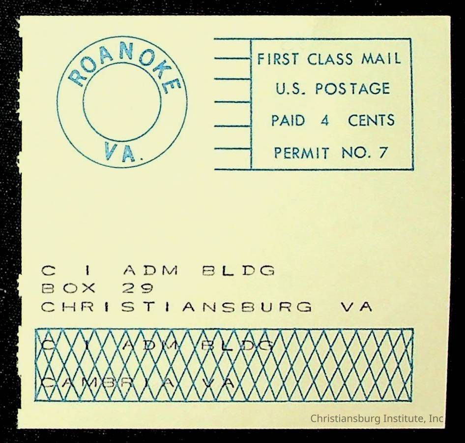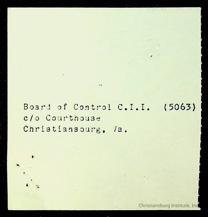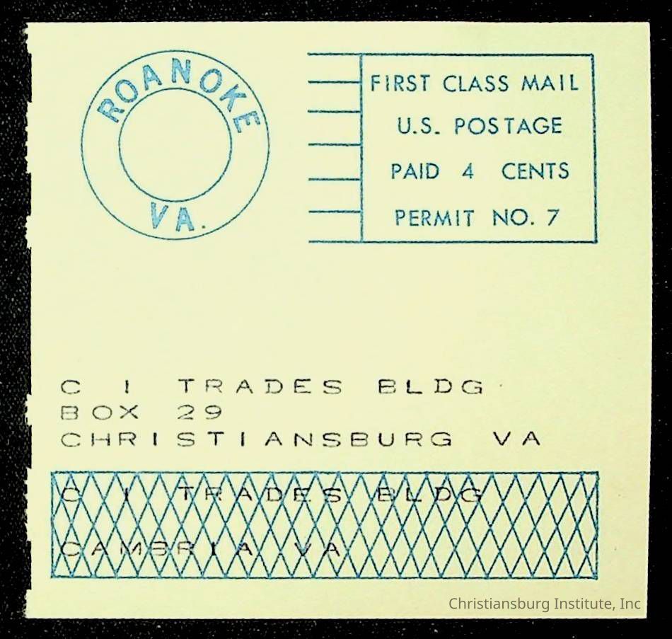 Copyright has been assigned to Christiansburg Institute Museum & Archives by Montgomery County Public Schools. For permission to publish materials created by the donor, contact CIMA@christiansburginstitute.com. Materials not created by Christiansburg Industrial Institute may still be under copyright.