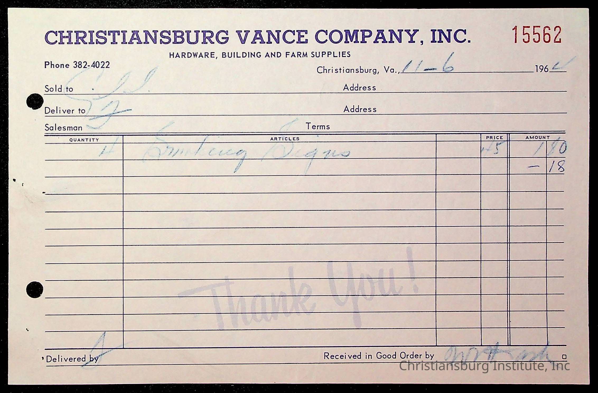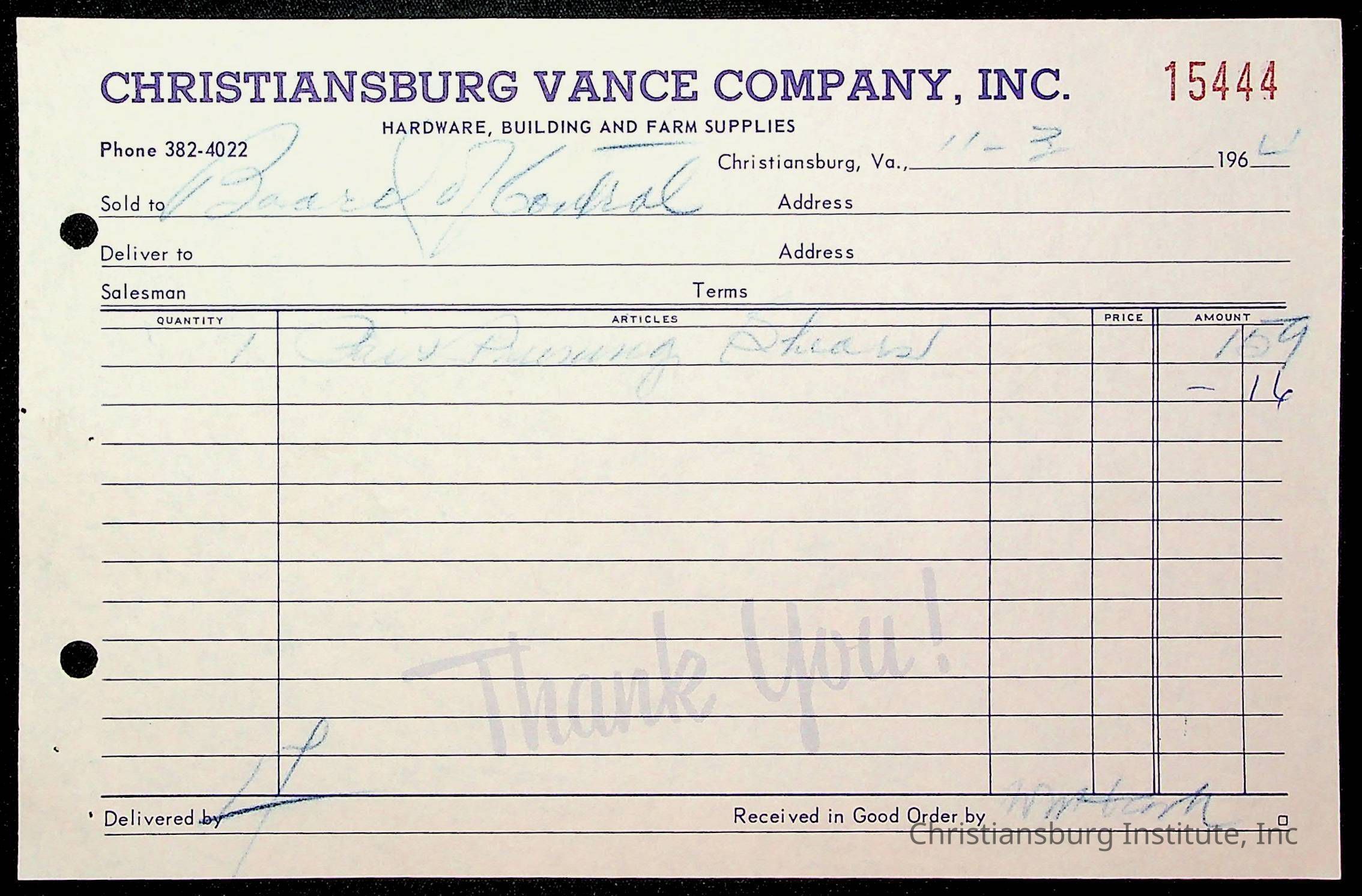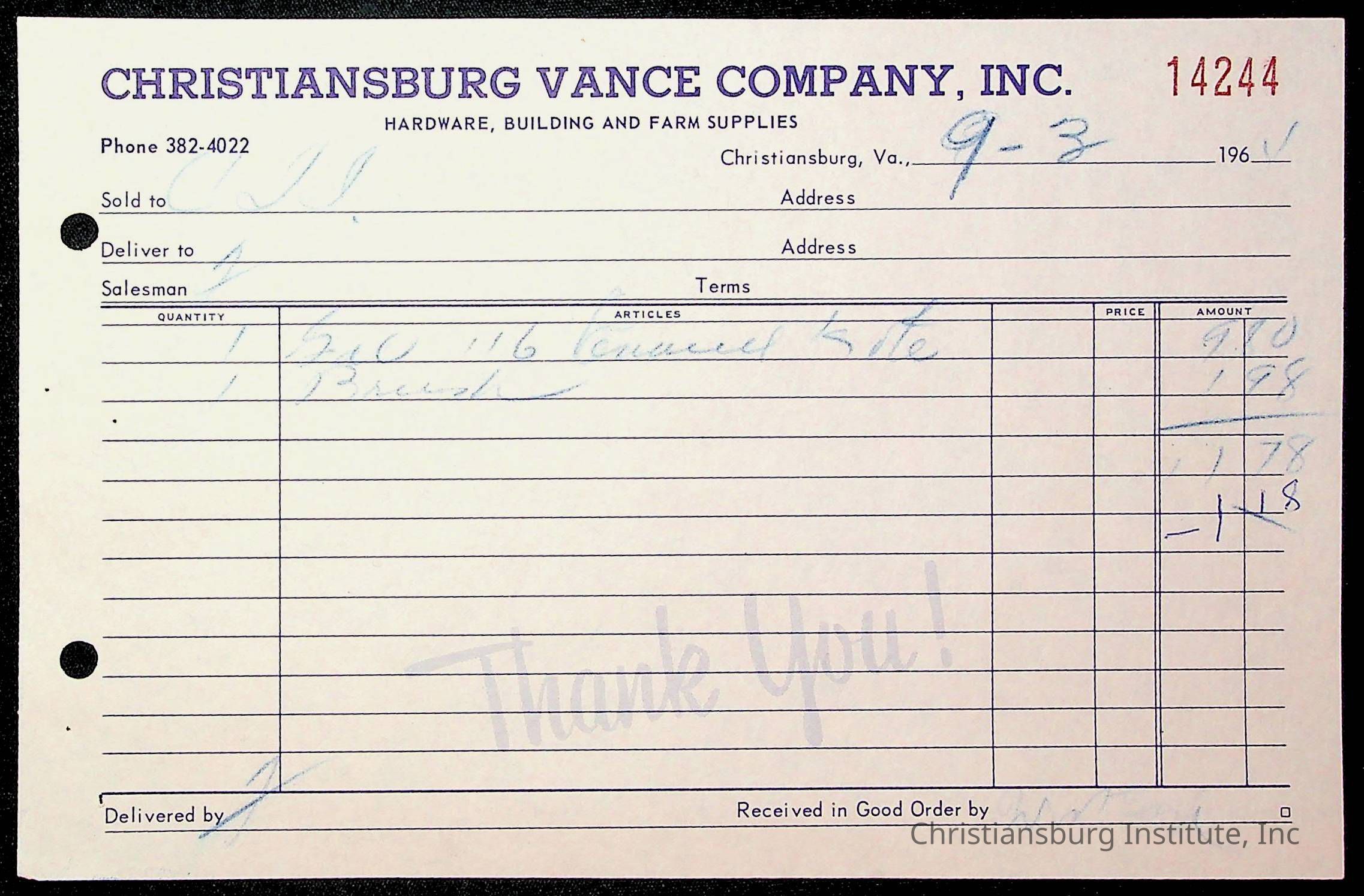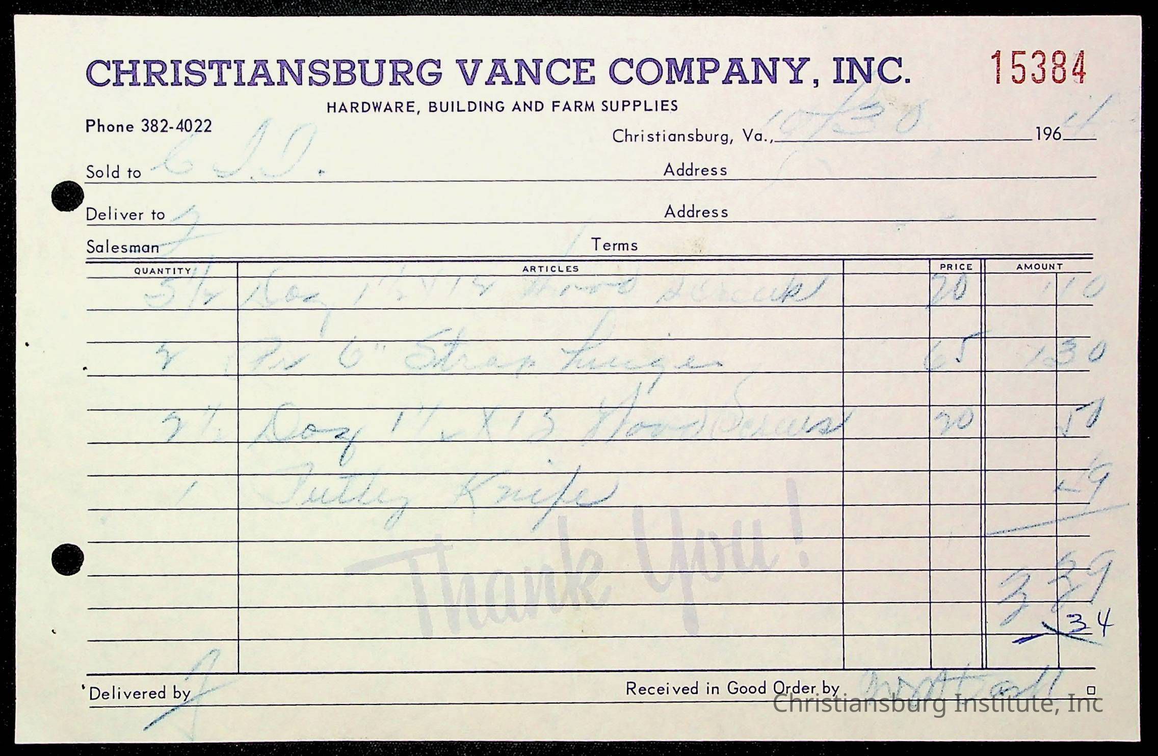 Copyright has been assigned to Christiansburg Institute Museum & Archives by Montgomery County Public Schools. For permission to publish materials created by the donor, contact CIMA@christiansburginstitute.com. Materials not created by Christiansburg Industrial Institute may still be under copyright.