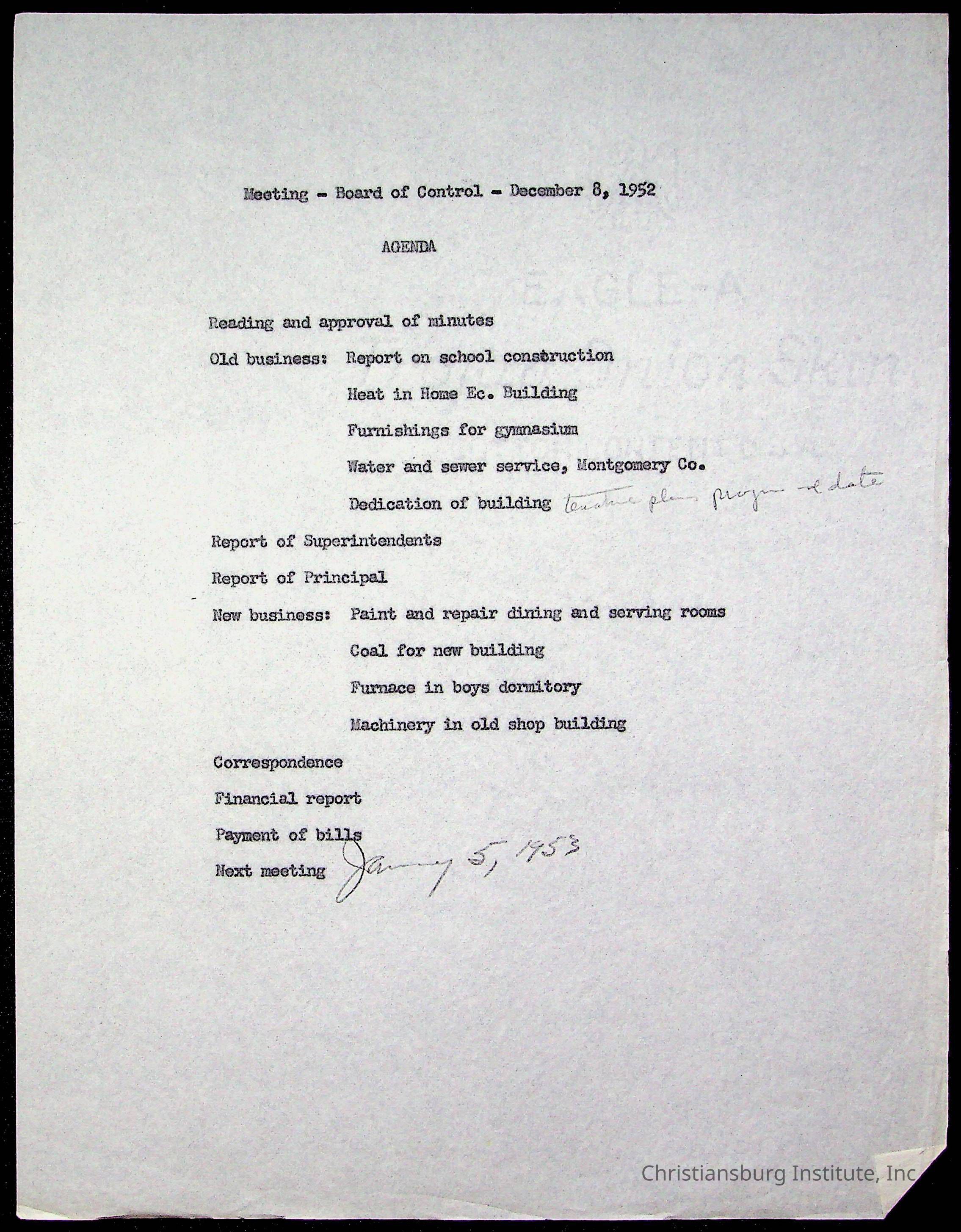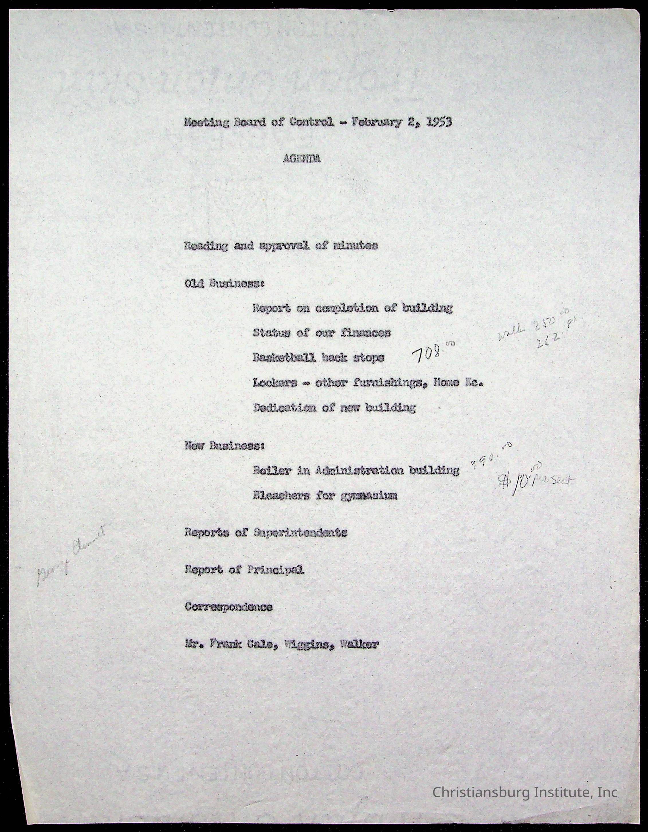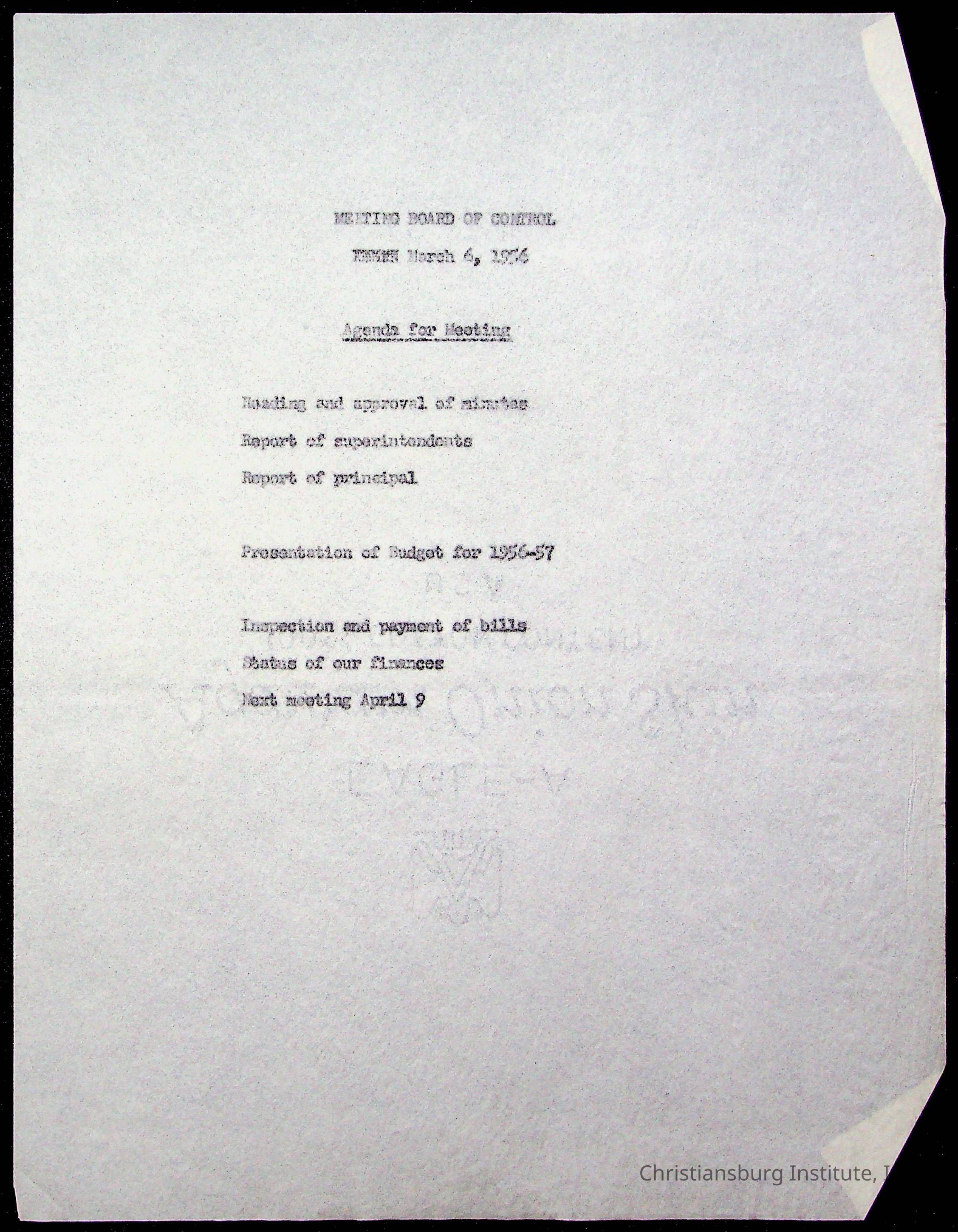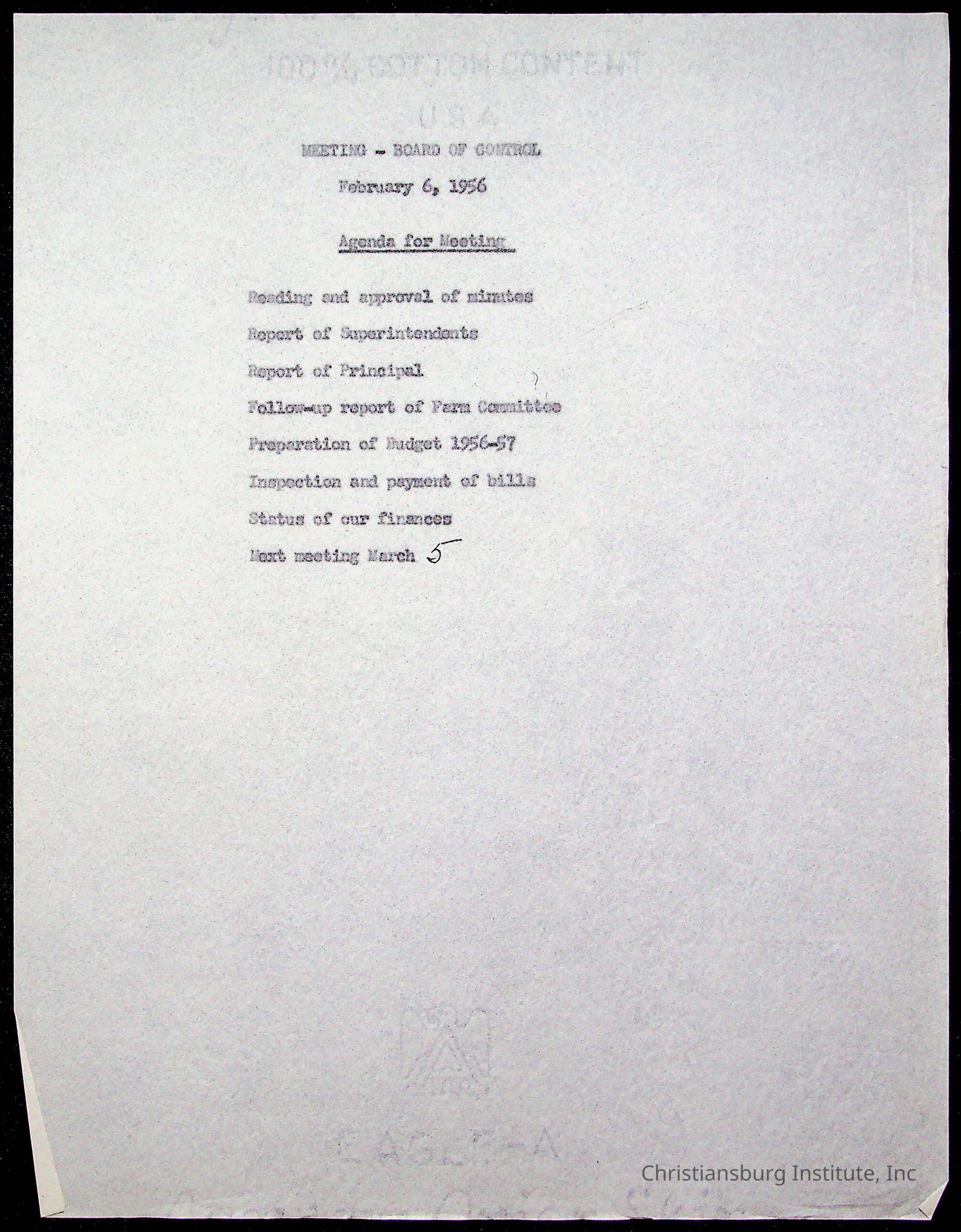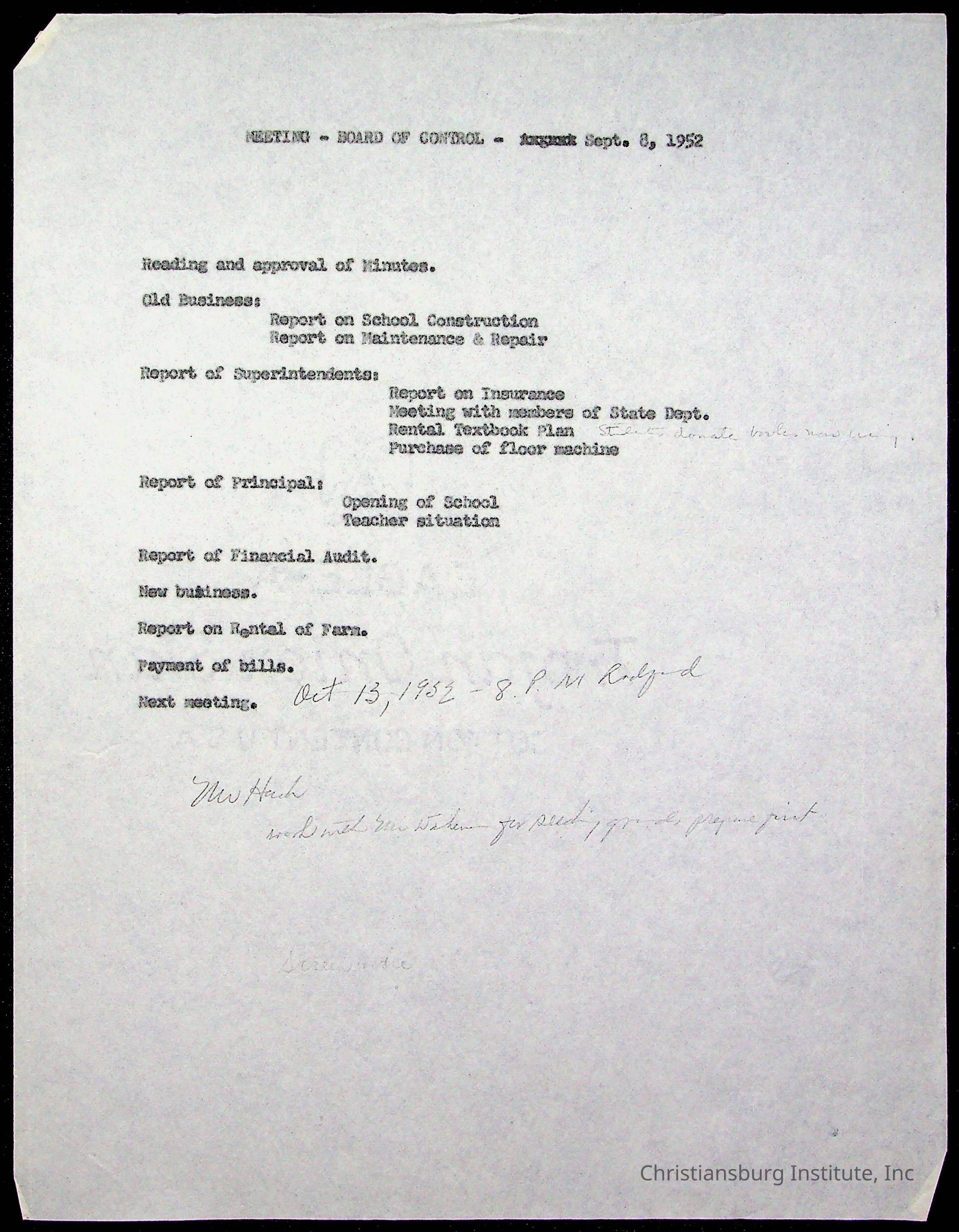 An archive of materials relating to the Board of Control for Christiansburg Institute, dated 1900s.